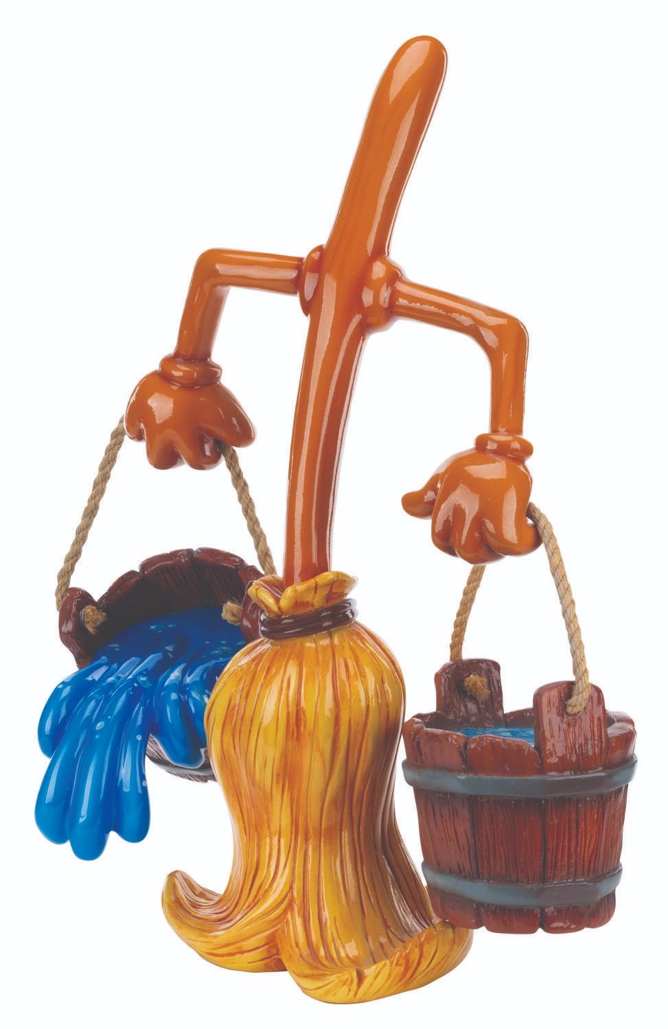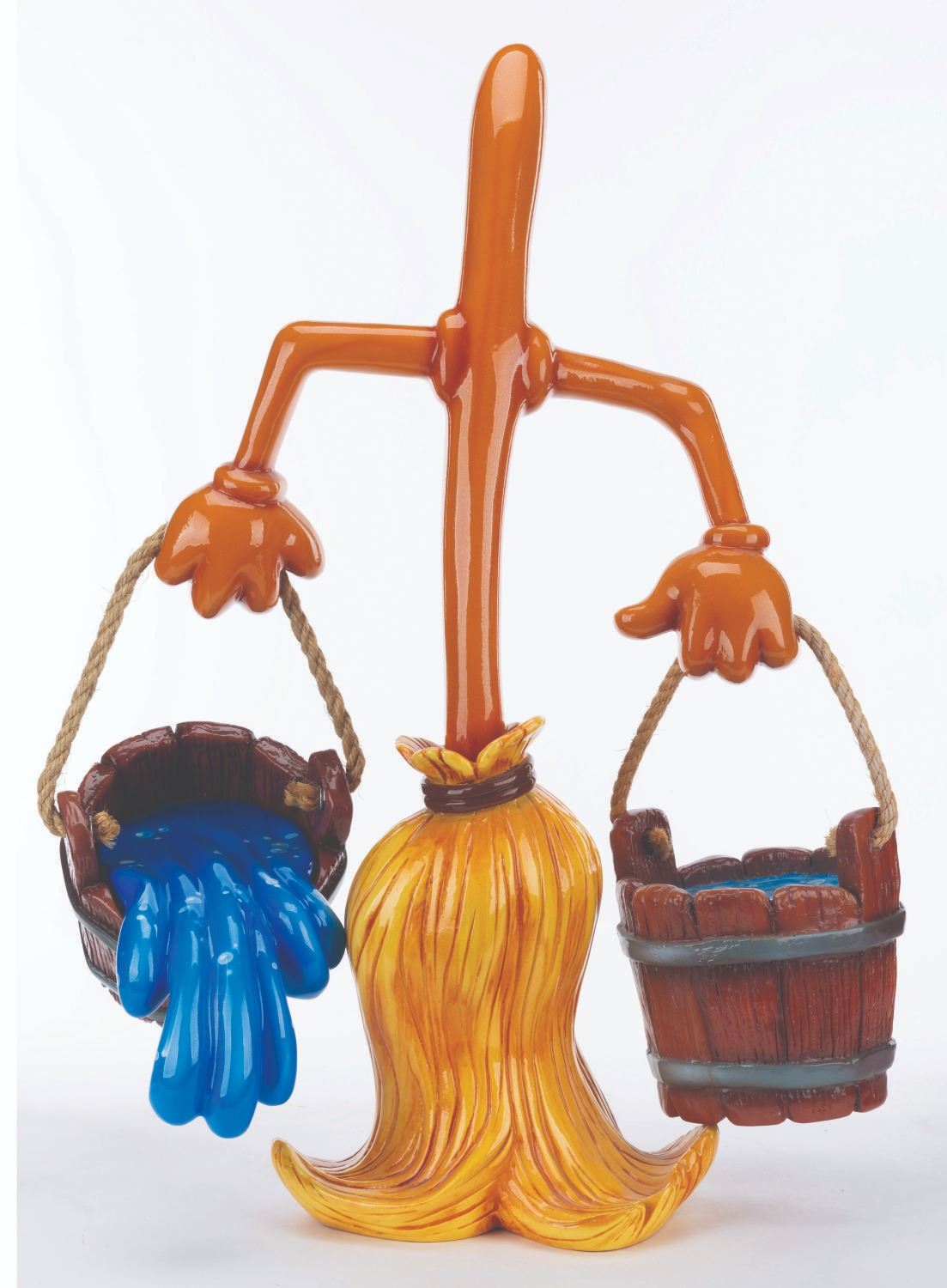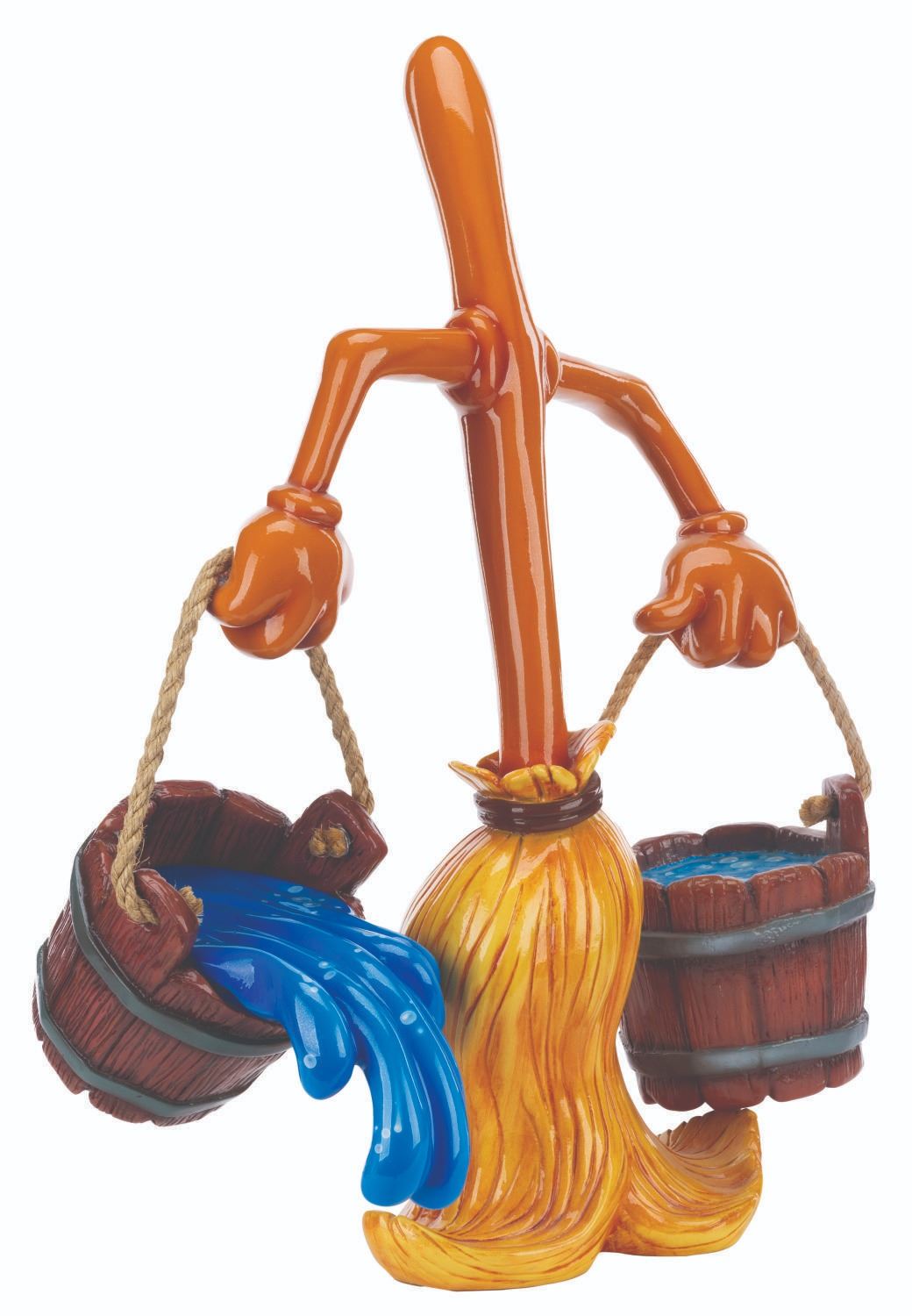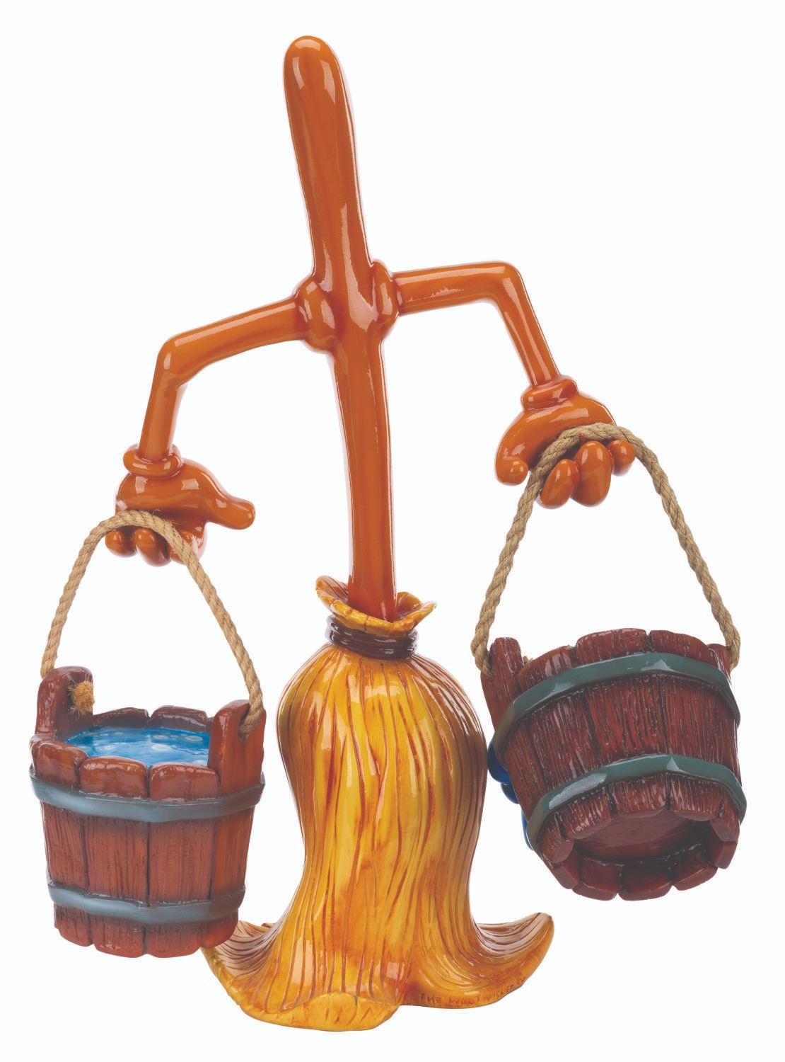 (Disney, 1990s-2000s) A Disney Store display figure of a broomstick with a pair of water buckets, one of which is spilling, from the Sorcerer’s Apprentice segment of "Fantasia." Measuring 9" x 16" x 28" tall with 8" x 8" x 7" tall buckets, the figure is in very good condition with light scuffs and wear.