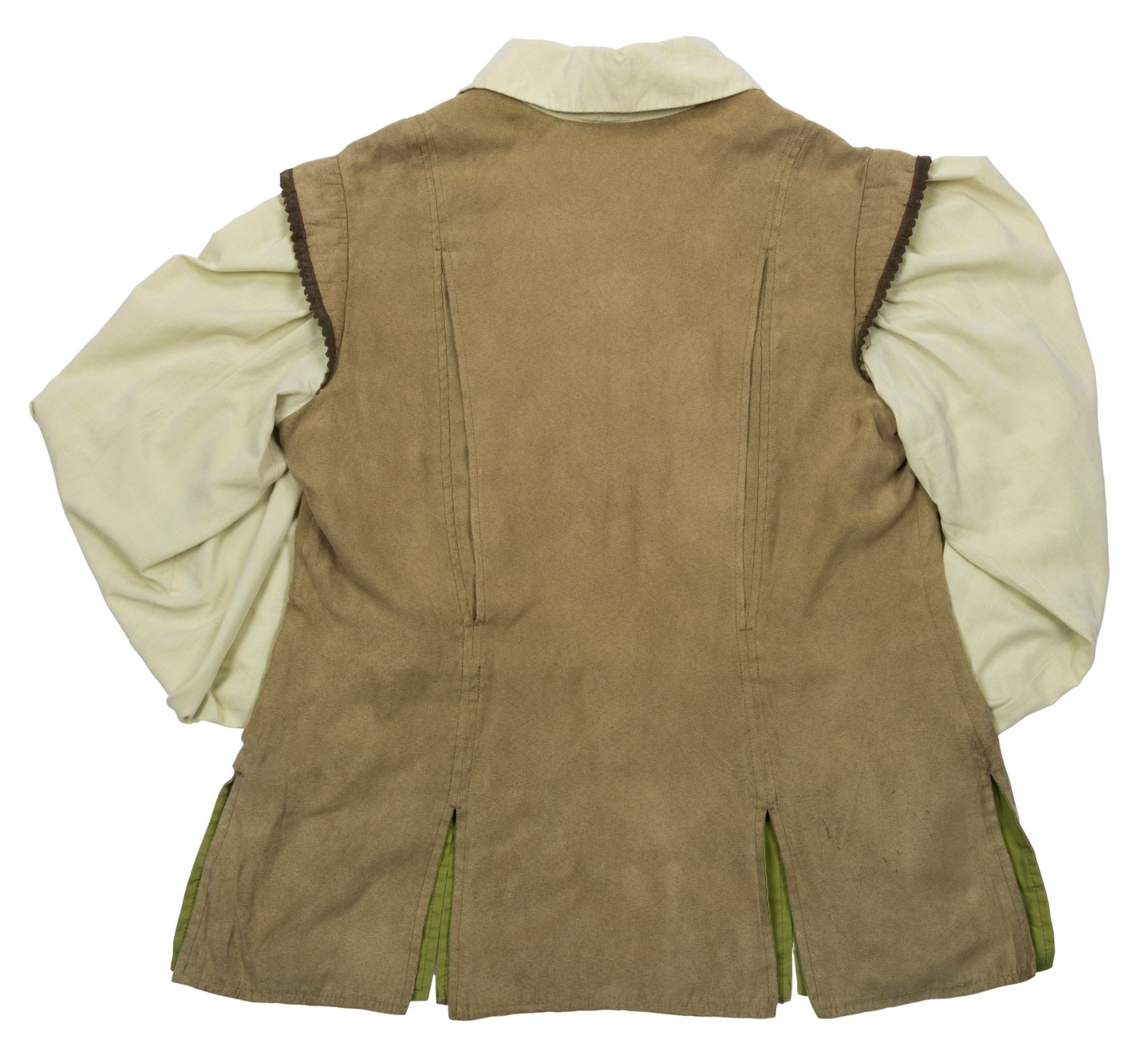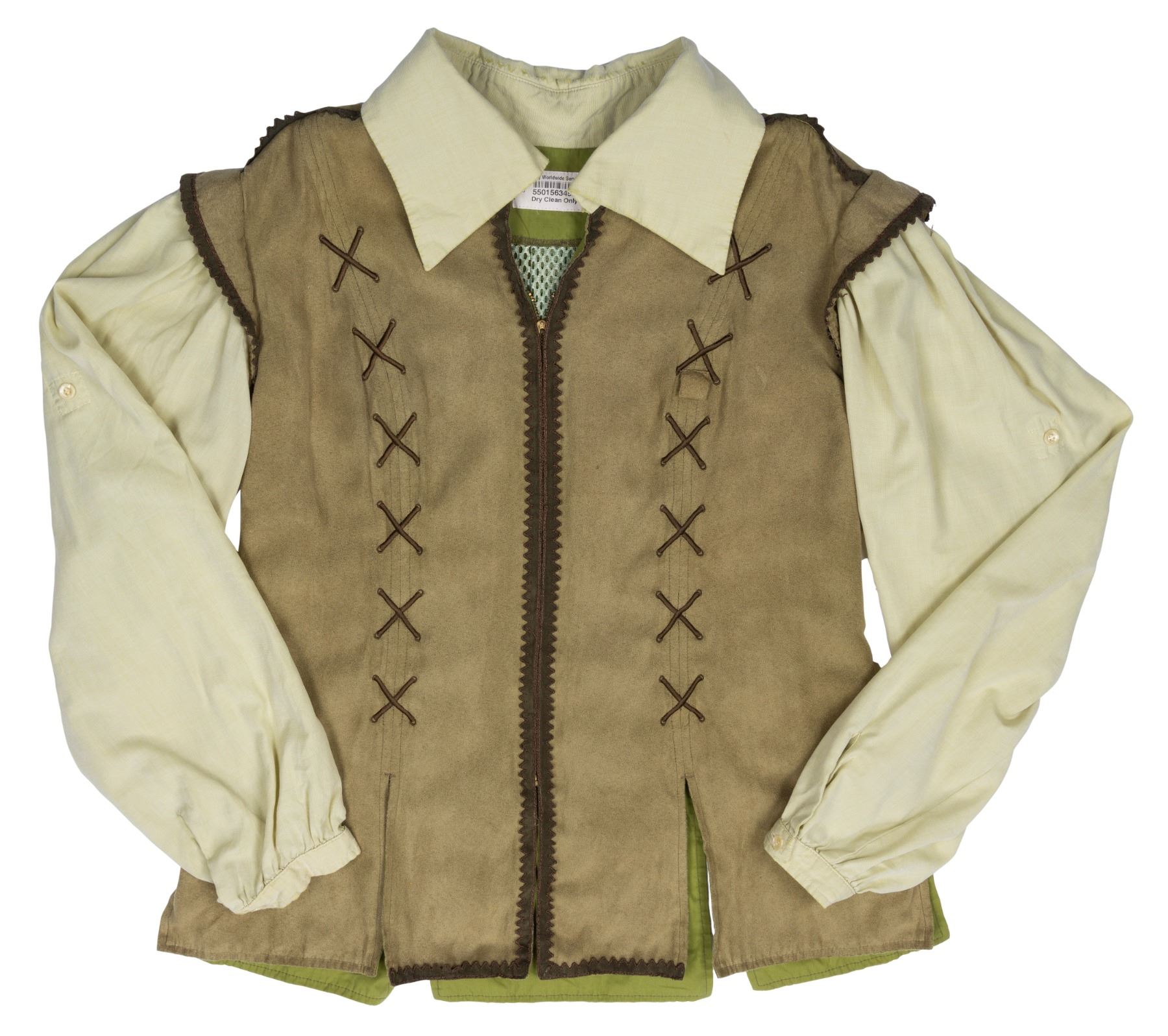 (Walt Disney World, 2010s-2020s) A green zip-up shirt worn by Cast Members after the Magic Kingdom’s New Fantasyland remodel. Labeled a size female XL, the shirt is in good condition with its zipper pull missing, pilling, and wear from Park use.