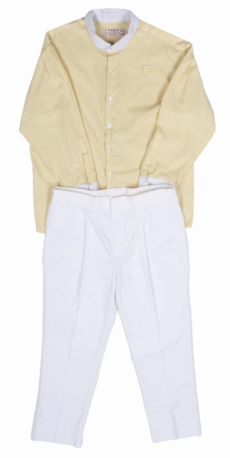 (Walt Disney World, 1990s-2024) A shirt and pair of pants worn by Cast Members working at the Magic Kingdom’s Plaza Restaurant. The male size XL 33 shirt and size 38 pants are in good Park-used condition.