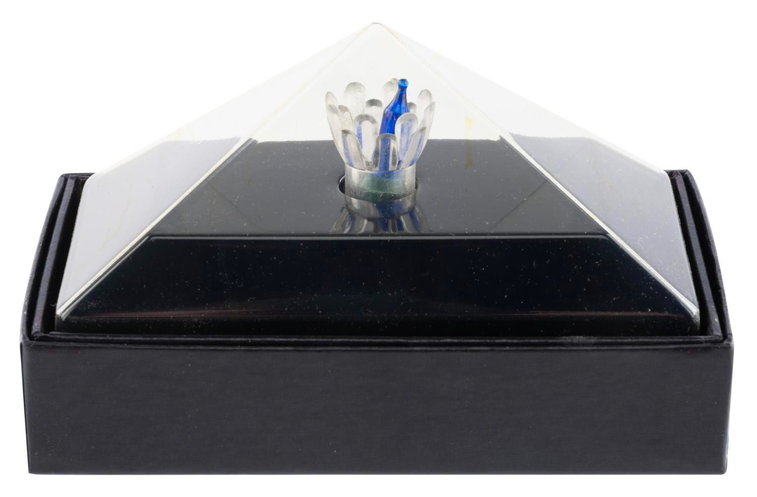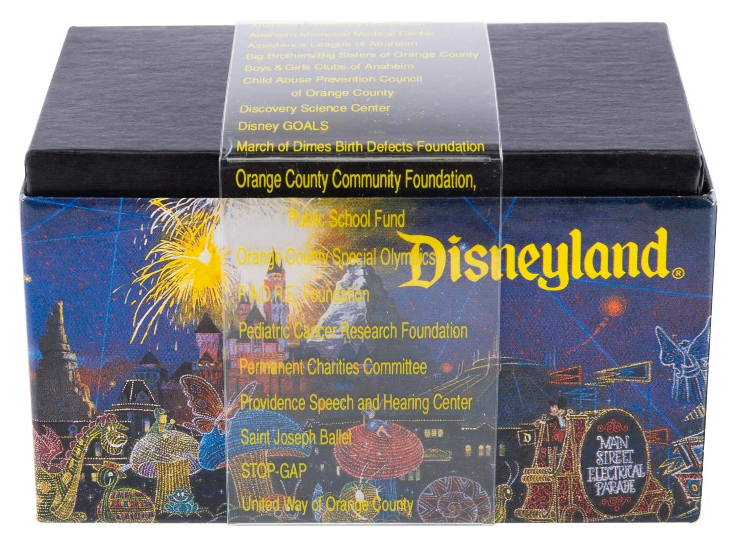 (Disneyland, 1996) A light bulb from a float on the Main Street Electrical Parade at Disneyland. When the fan-favorite Electrical Parade ended its run, the Park offered a limited number of souvenir light bulbs from parade floats to Guests, with the proceeds benefiting charity. The bulb is displayed within a 4.75"x2.75"x2.75" tall shell package with decorative lid that serves as a base for display. The entire piece is in fine condition.