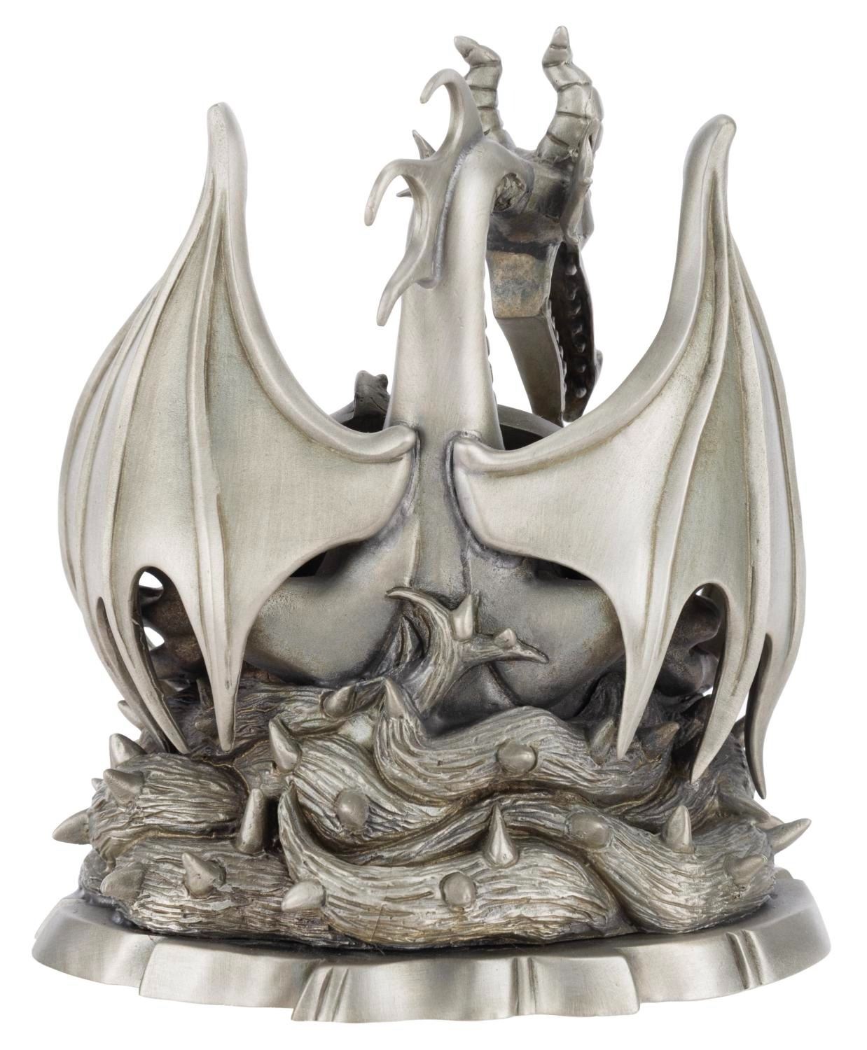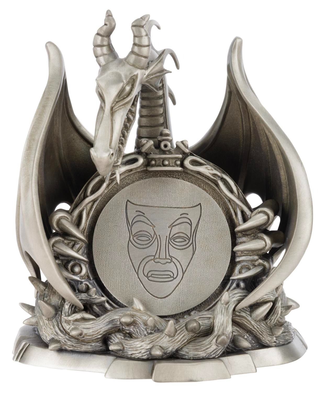 (Walt Disney World, 1997) A metal sculpture of Maleficent as a Dragon from "Sleeping Beauty" and the Magic Mirror from "Snow White and the Seven Dwarfs." This piece was originally released at the 1997 Disneyana Convention in a limited edition of 2200. Measuring 4.5" x 3.5" 4.5" tall, the sculpture is in very good condition with light discoloration from age and wear.