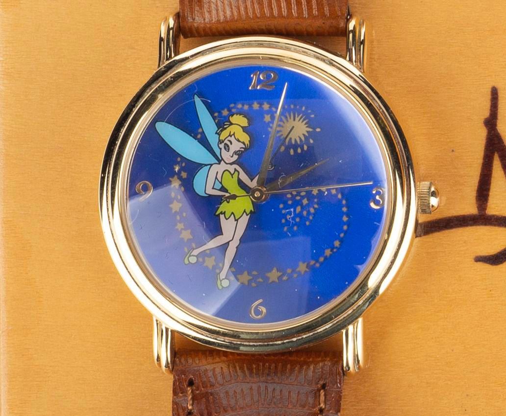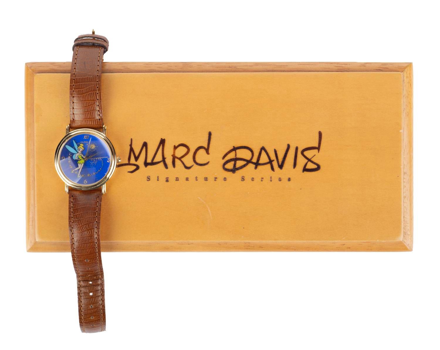 (Disney, 1994) A Marc Davis Signature Series Tinker Bell watch, with original box. Both the box and watch back feature a facsimile of Davis' signature. Marked number 2708 out of an edition of 5000, the watch is in fine unworn condition, while the band is curved from having been displayed closed.