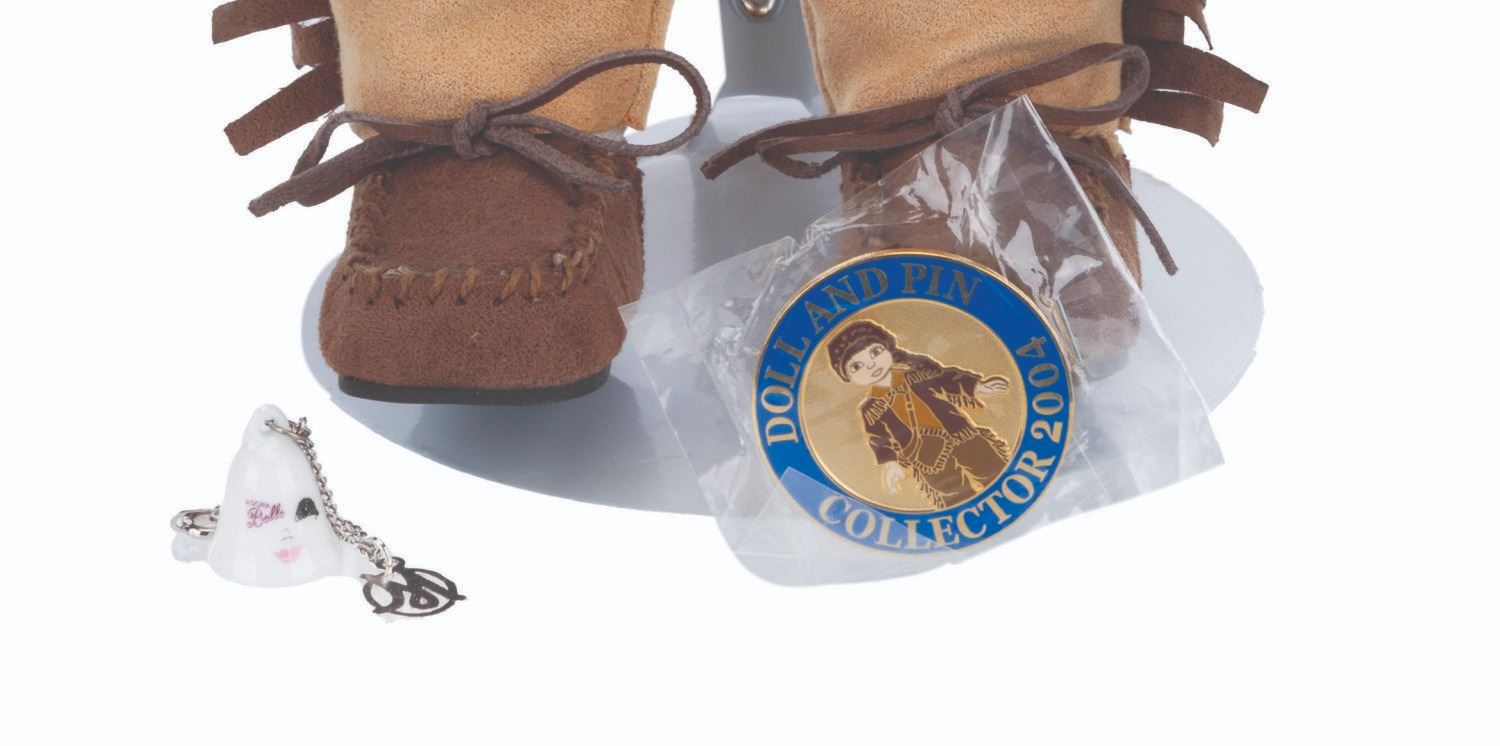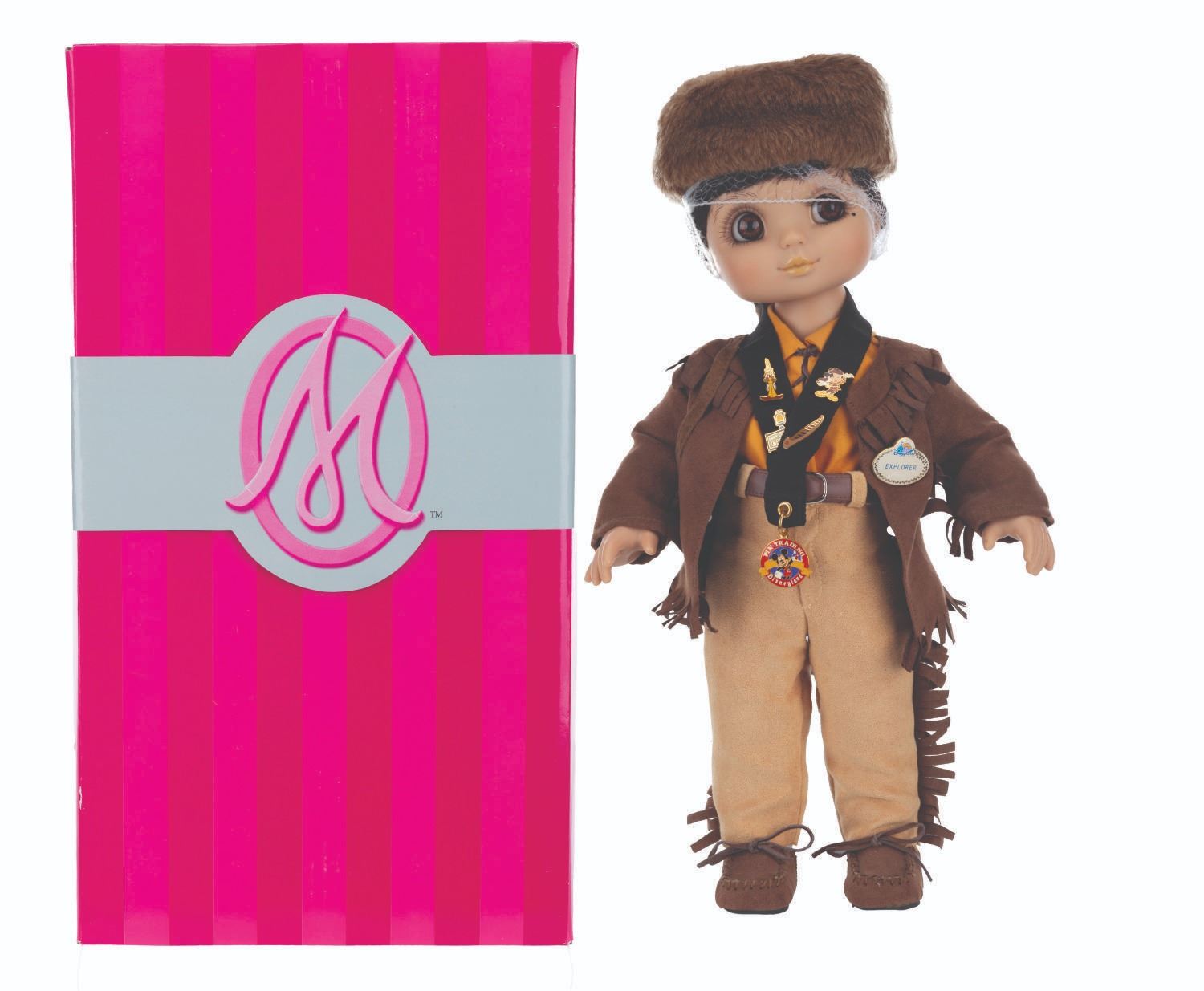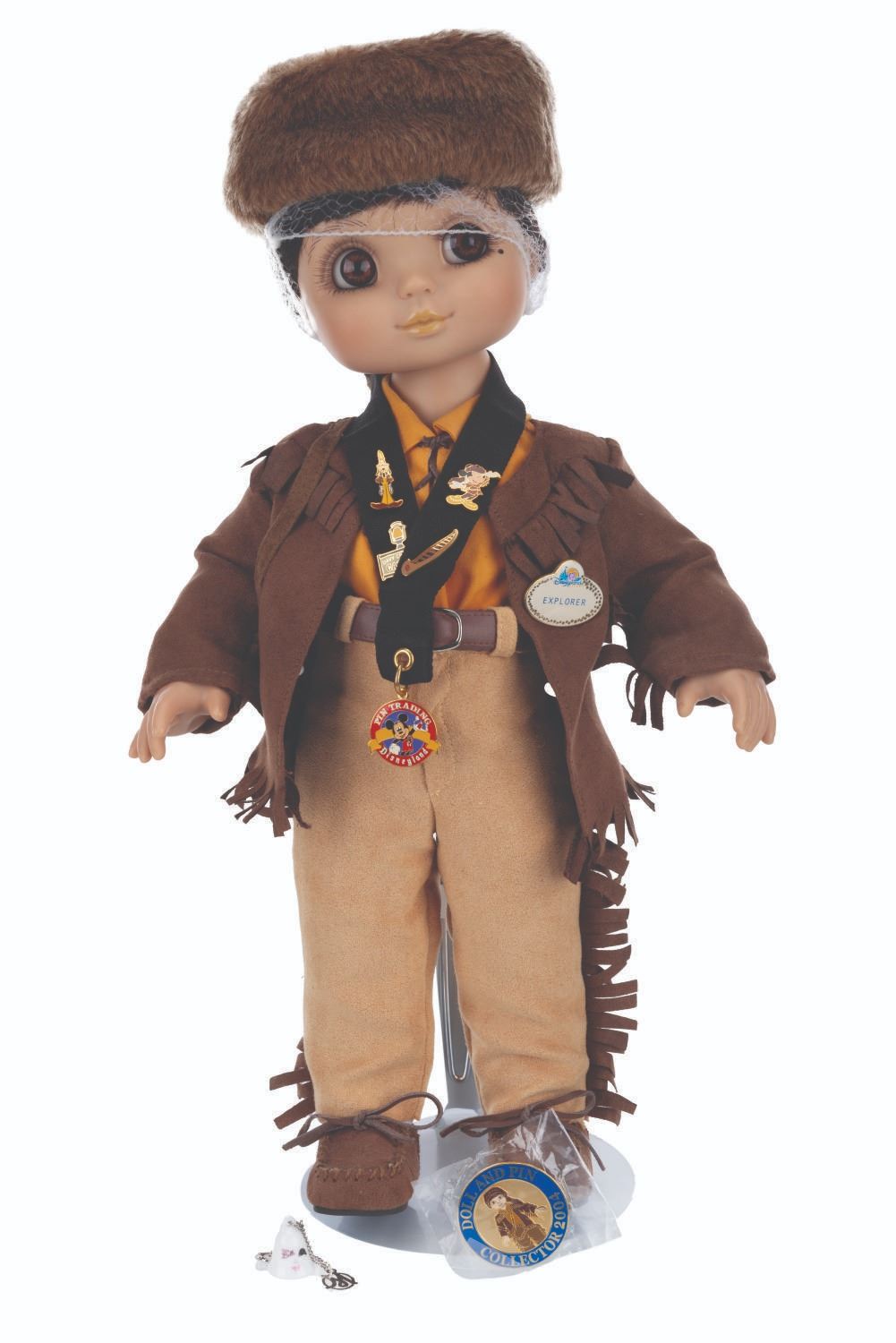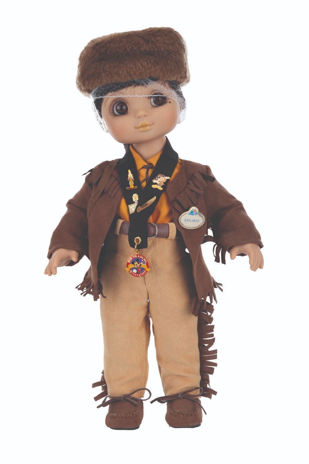 (Walt Disney World, 2004) An Adora Beau Canoe Explorer vinyl doll, signed by Marie Osmond. The doll features a miniature Explorer name badge and a Disney Pin Trading lanyard with four exclusive miniature pins, including Mickey and Goofy in explorer outfits. Included are a doll bracelet, a western-style bag, and a commemorative pin. Released in a limited edition, this doll is hand numbered 237 and signed by Osmond on the back of the neck. Standing 14.5" tall, the doll is in fine condition.