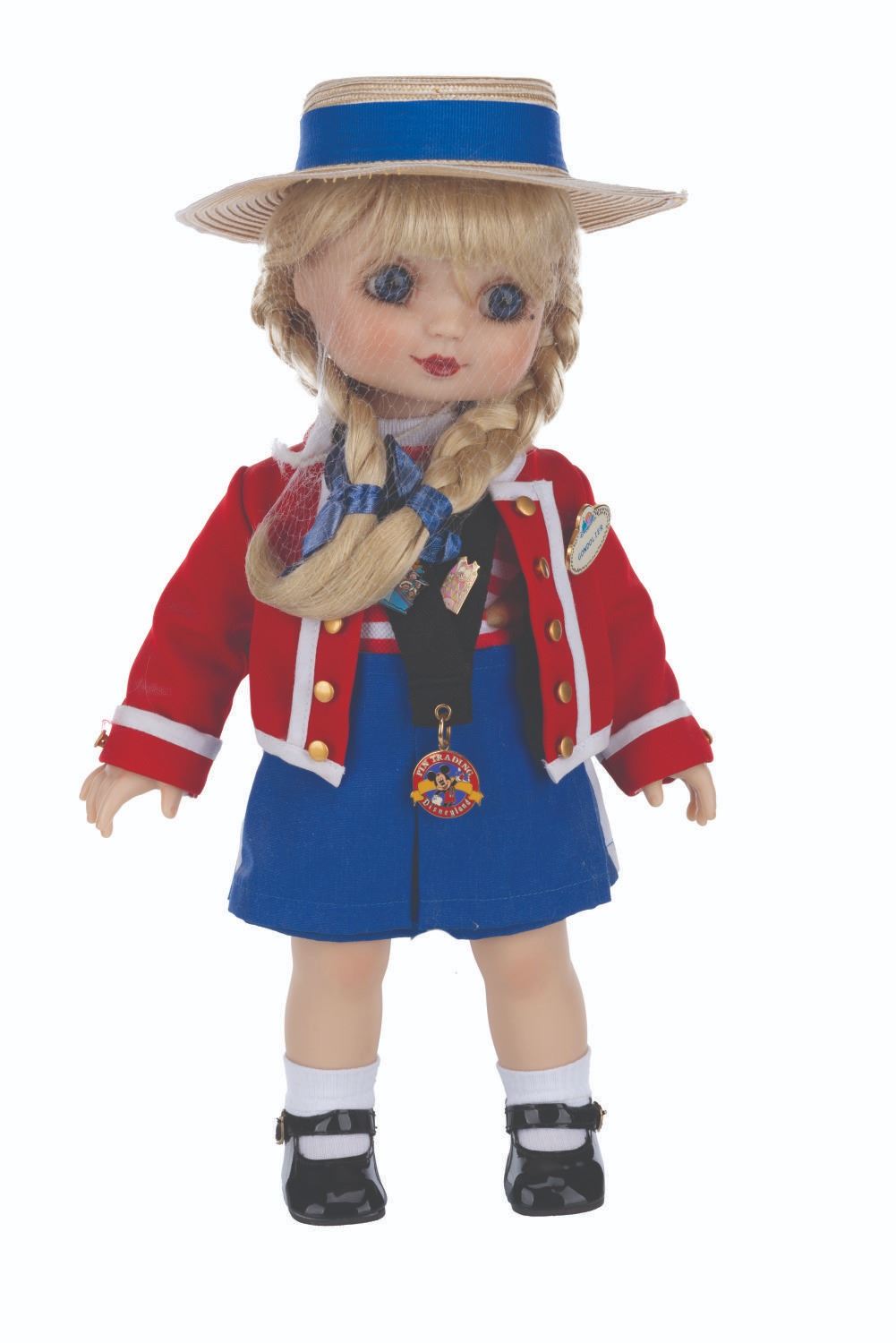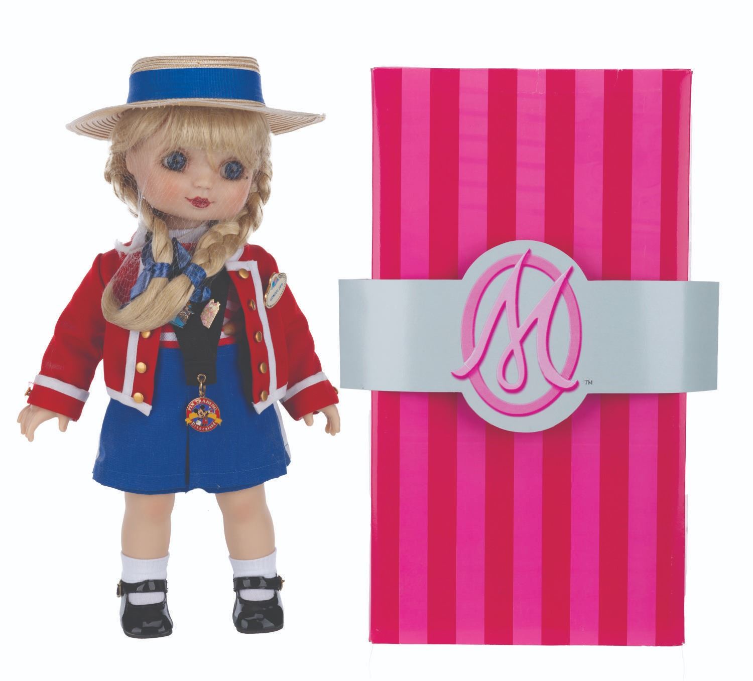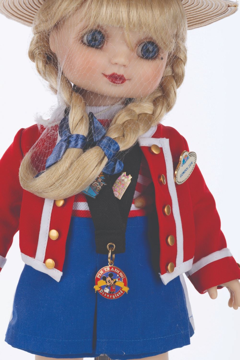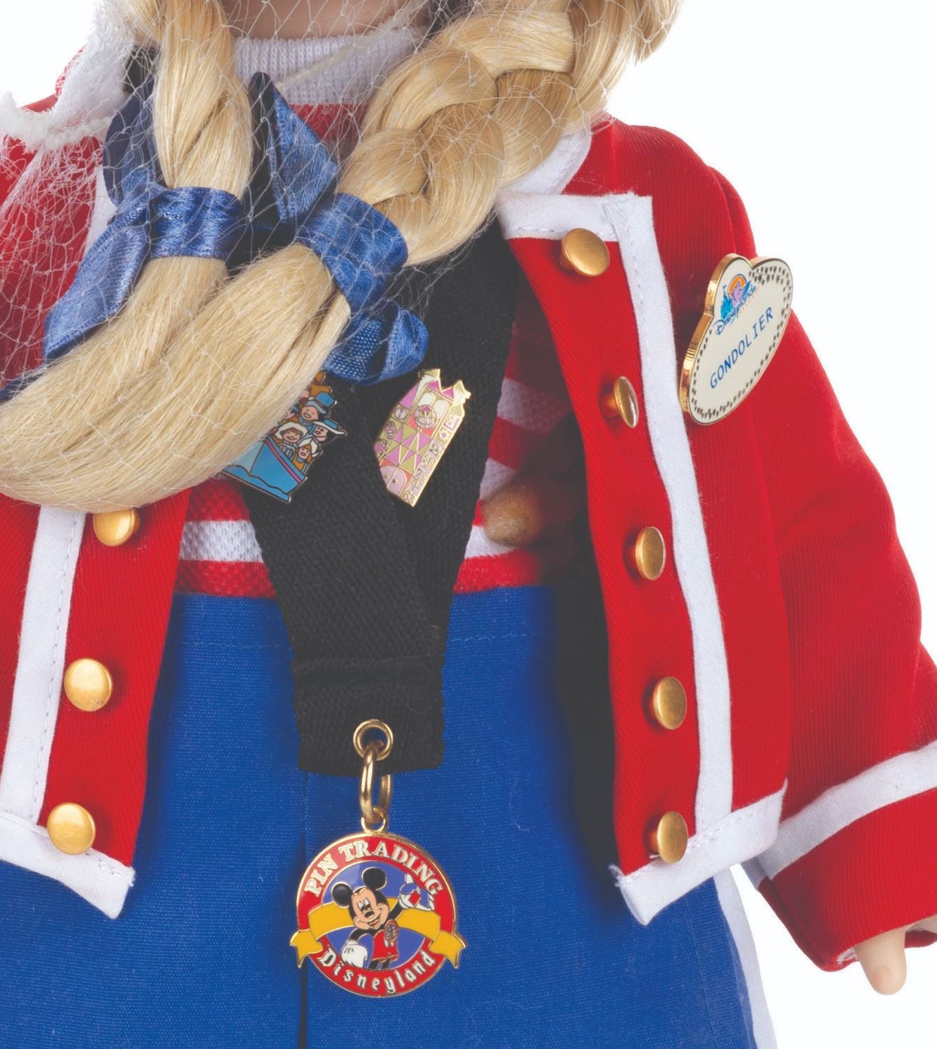 (Disneyland, 2002) A limited edition Adora Belle It's a Small World Gondolier Hostess doll by Marie Osmond. The doll, numbered 390/1000, features a meticulously tailored costume like those worn by Cast Members, a charm bracelet, and a Doll and Pin Collector 2002 pin. Measuring 15.5" tall, the doll is in fine condition and comes with its original box.