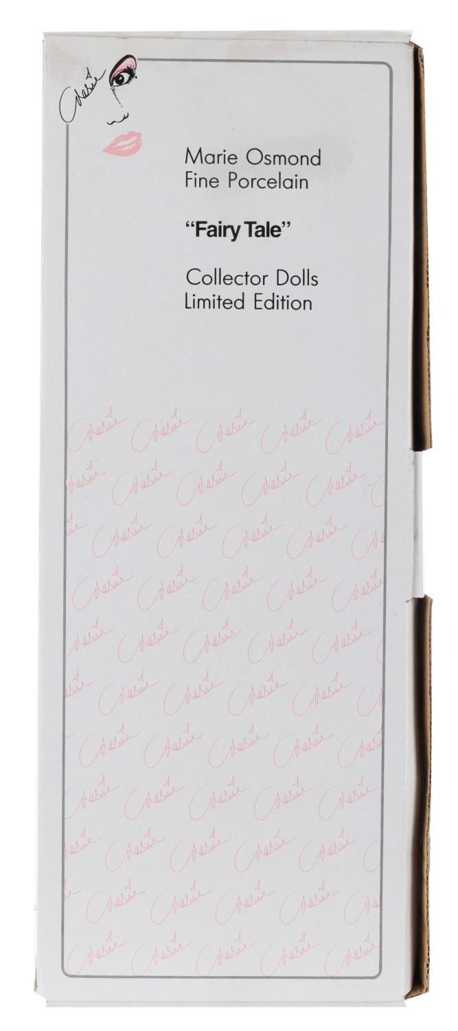 (Osmond/Knickerbocker, 1990s) A Marie Osmond Fine Porcelain Cinderella doll from her "Fairy Tale" series, released in a limited edition of only 250, with the certificate of authenticity signed by Osmond. Measuring 18" tall, the doll is in fine condition in the original box.