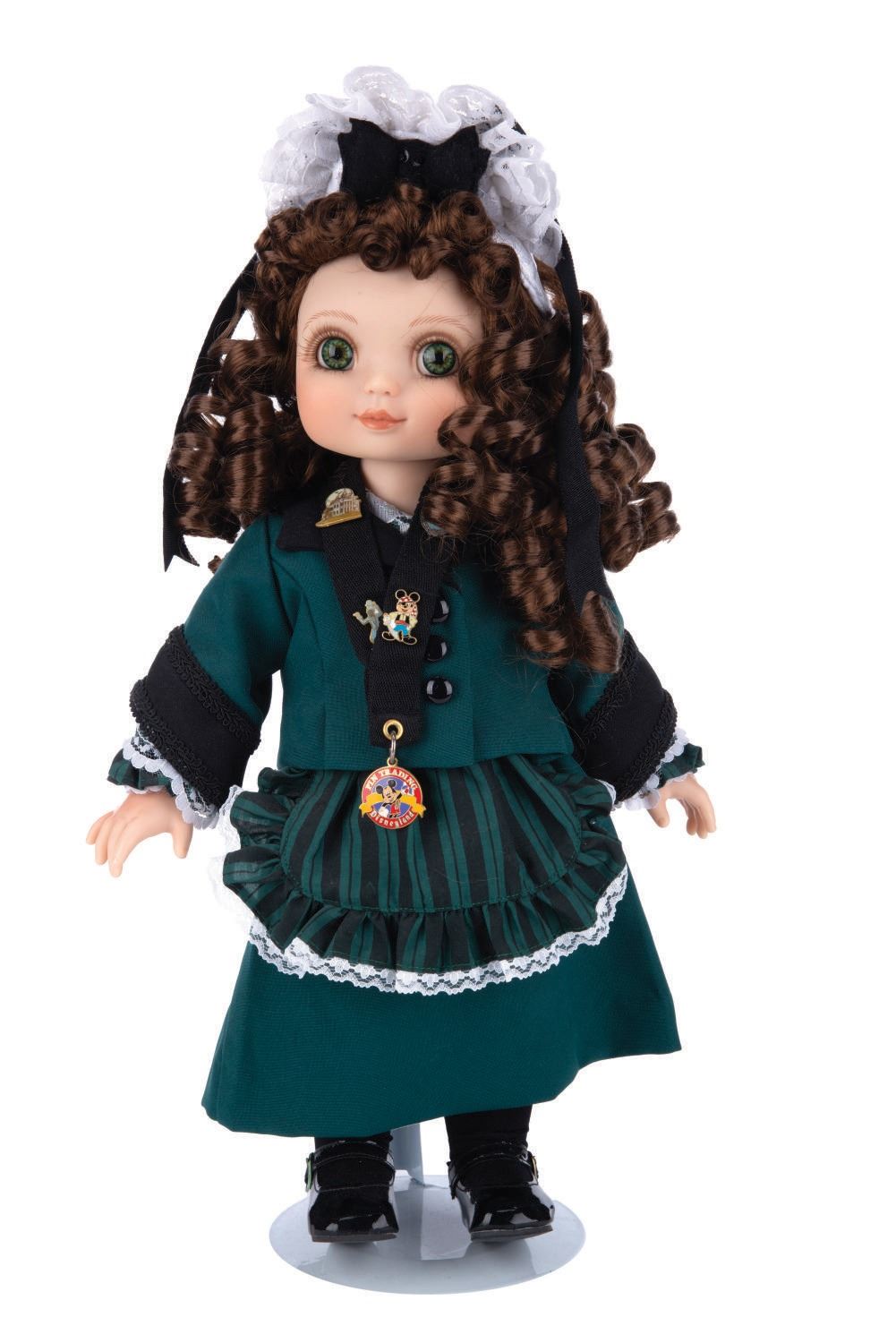 (Disney/Marian 2002) A Marie Osmond Haunted Mansion Hostess "Adora Belle" Fine Vinyl Doll, with miniature pin lanyard with (4) exclusive scale pins, and the full sized "Doll and Pin Collector 2002" pin and Haunted Mansion pin exclusive to this doll. Measuring 16" tall, the doll displays in fine, as-new condition, without box or COA.