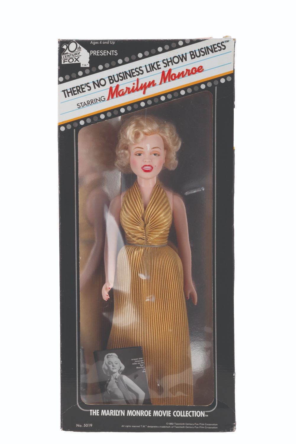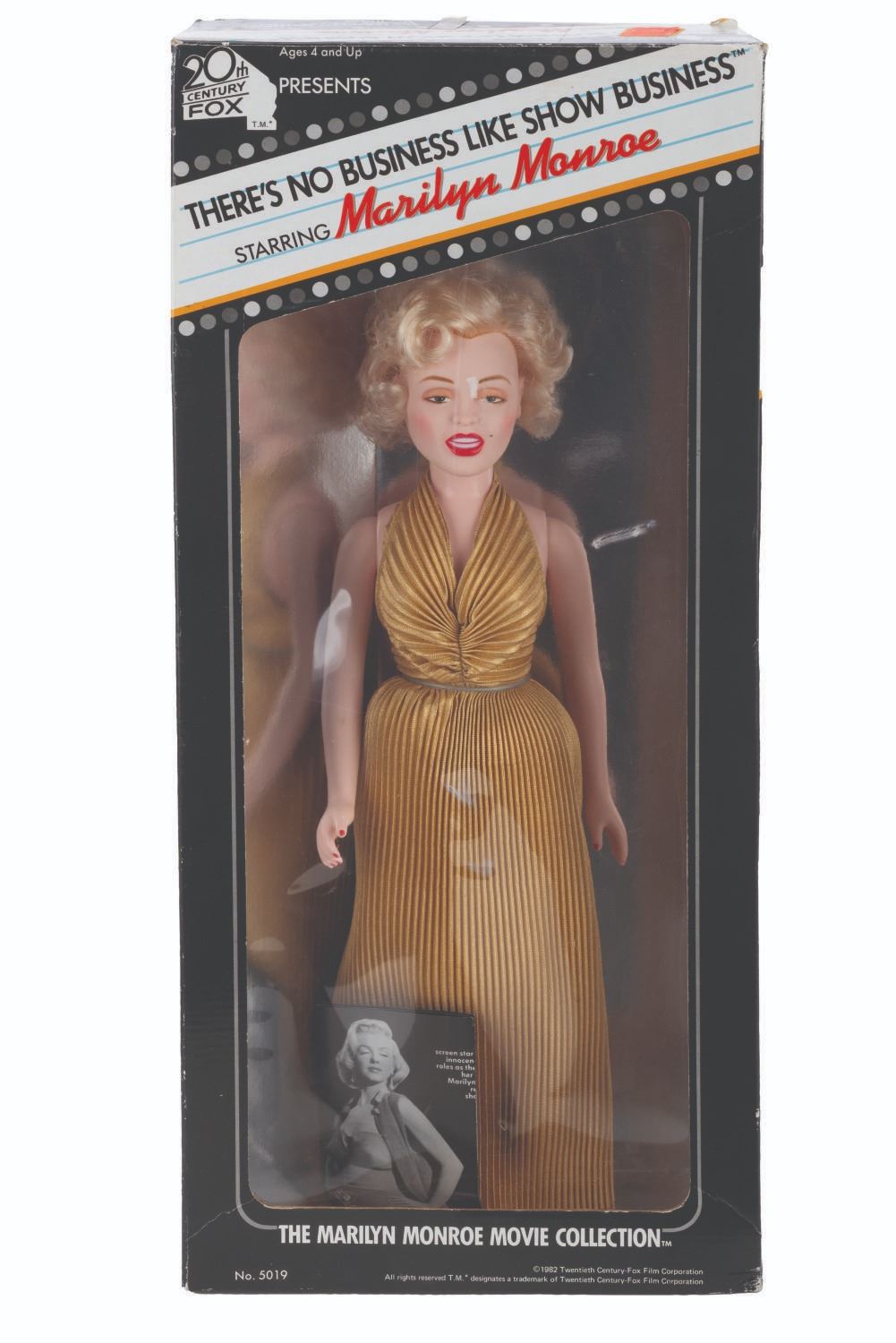 (20th Century Fox, 1982) A doll from The Marilyn Monroe Movie Collection for the film "There's No Business Like Show Business. " Measuring 16.75 " tall in the 21 " x 9.5 " x 4.25 " box, the doll is in fine condition. The box is in good condition with scuffs mainly along edges, and the front plastic is loose with a few creases showing.