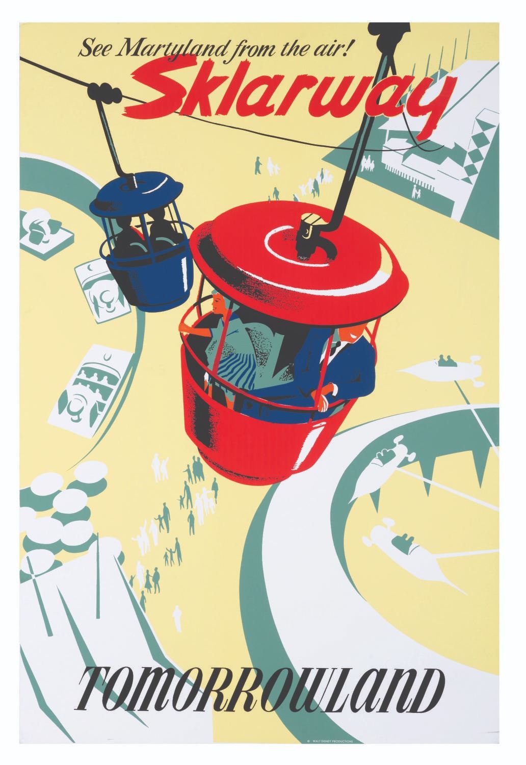 (WDI, 2009) A Skyway parody attraction poster from Disney Legend Marty Sklar’s retirement party on July 16, 2009, at Walt Disney Imagineering. This "Sklarway" poster commands you to "See Martyland From the Air!" Measuring 30" x 45", the poster mounted to gatorboard is in very good condition with light wear from display. Due to size, this item requires special shipping arrangements, please inquire before bidding.