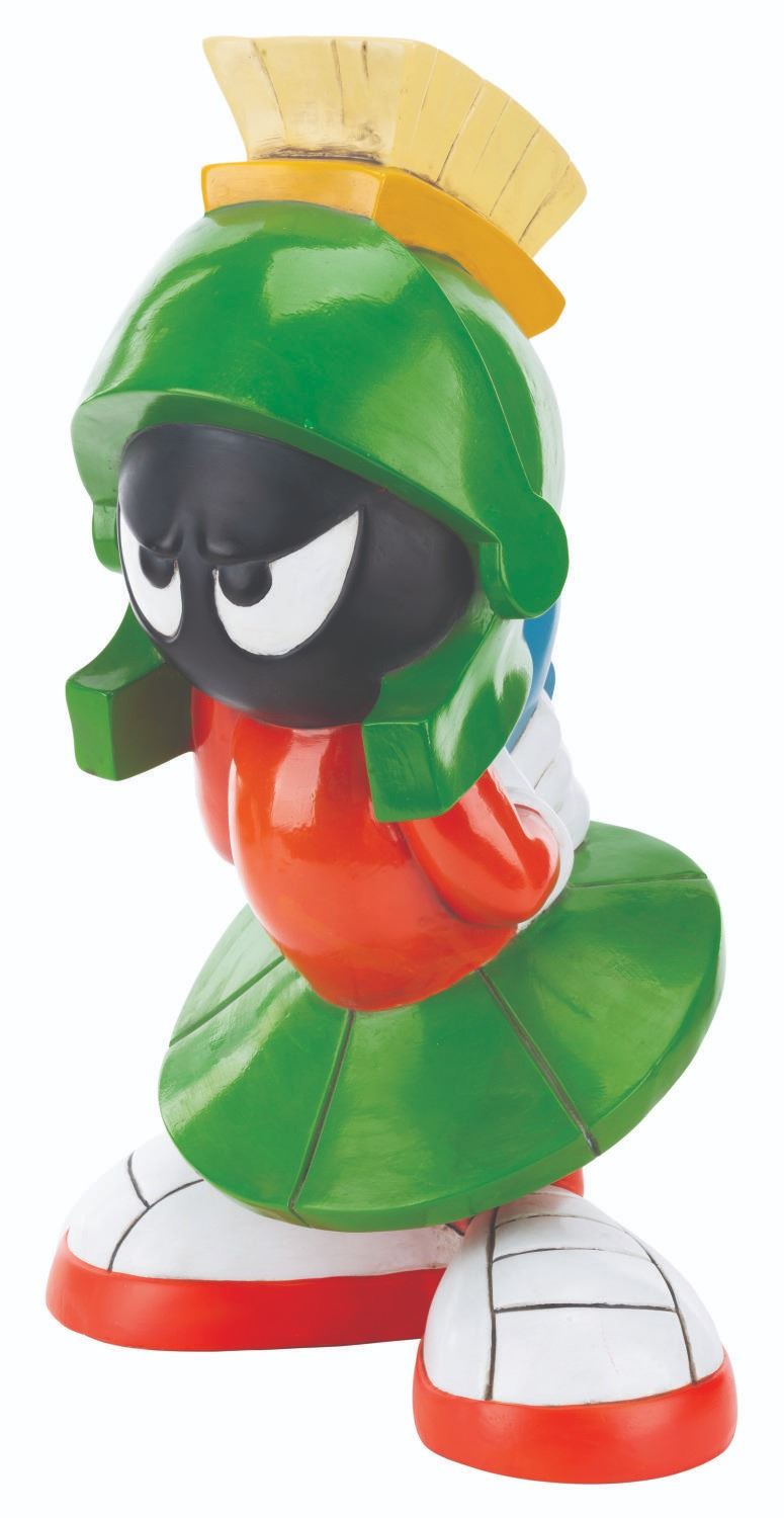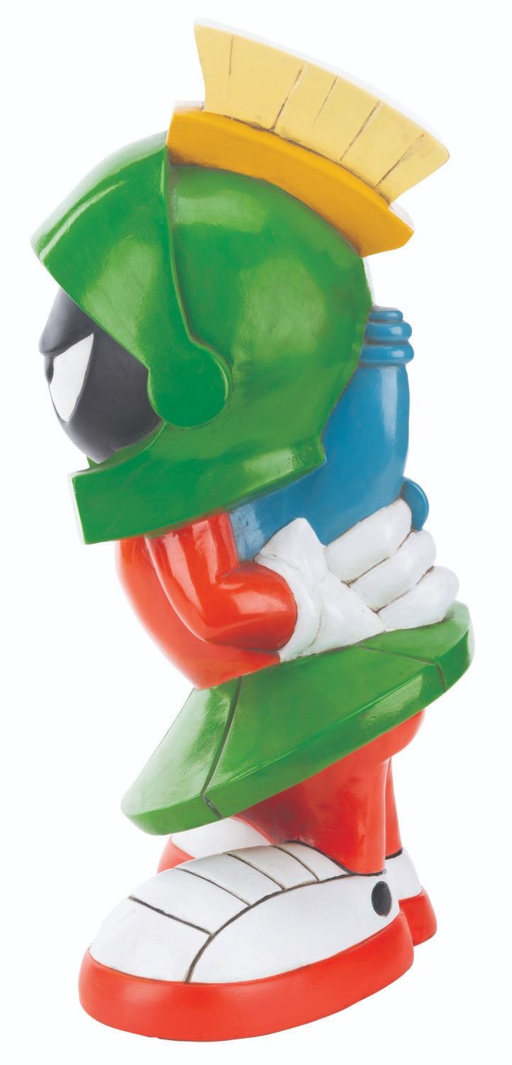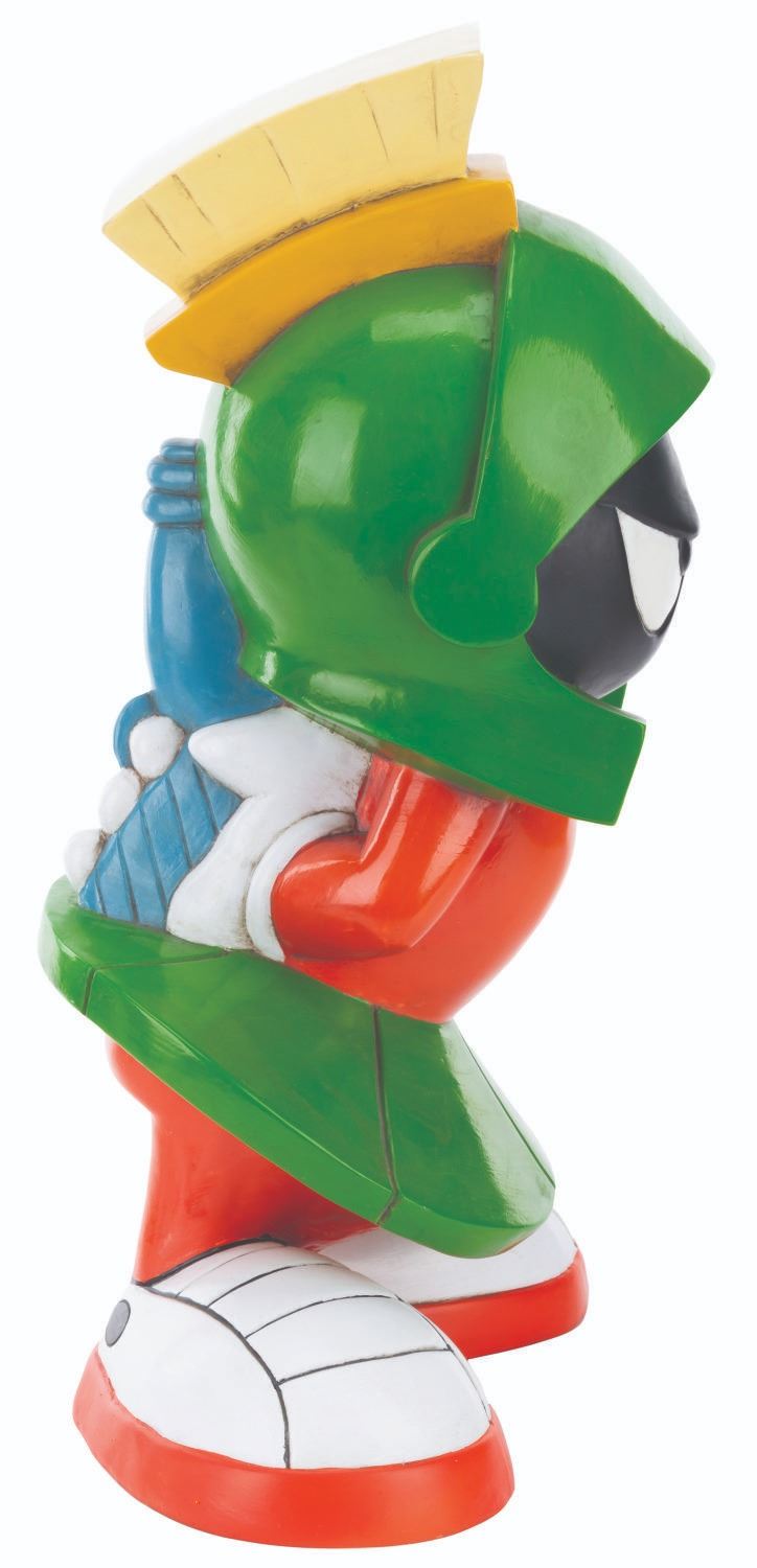 (WB Studio Store, 1995) A Marvin the Martian statue sold exclusively at the Warner Bros. Studio Store. Measuring 12" x 7.5" x 19" tall, the painted resin statue displays in very good condition with scratches, scuffs, discoloration, and wear.