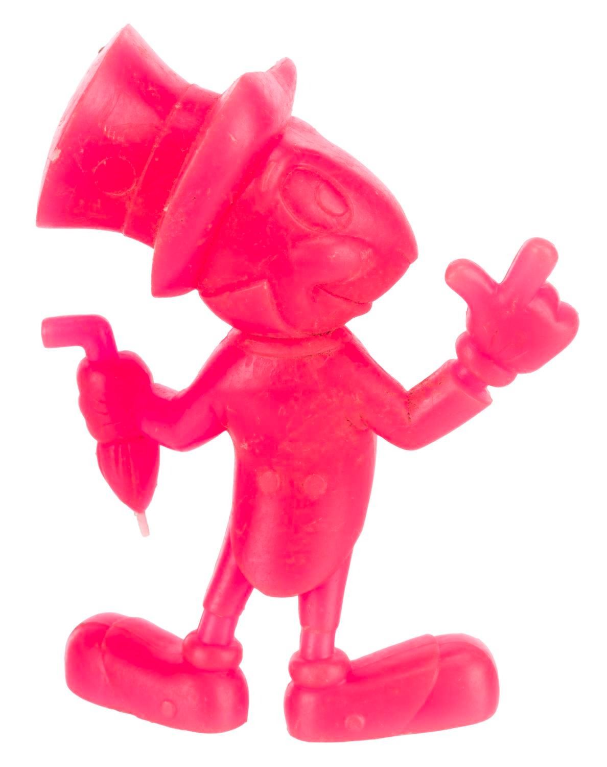 (Marx, 1971) A pink plastic Giant Disney Favorites figure of Jiminy Cricket. Standing 4.5" tall, the figure is in very good condition with typical light handling wear.