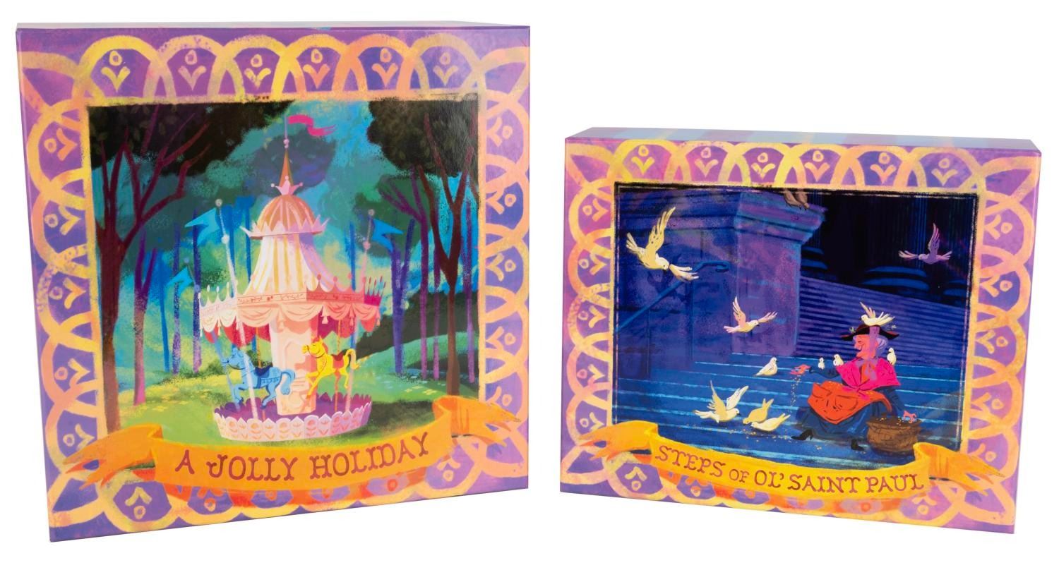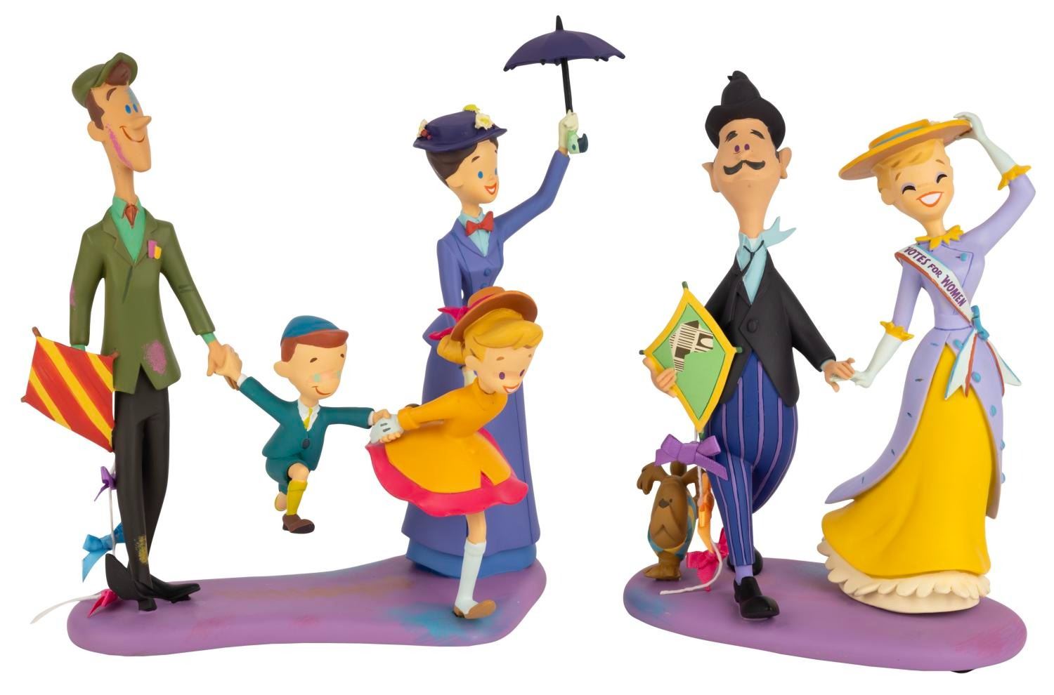 (Disneyland Paris, 2019) A figurine set created by Kevin Kidney and Jody Daily commemorating the 55th anniversary of "Mary Poppins." Crafted in resin, these pieces feature Mary Poppins, Bert, and the Banks family, and are part of an edition of 1000 pieces. Measuring from 6" x 3.5" x 8" to 7.5" x 4" x 9", the figurines are in very good condition with light wear.