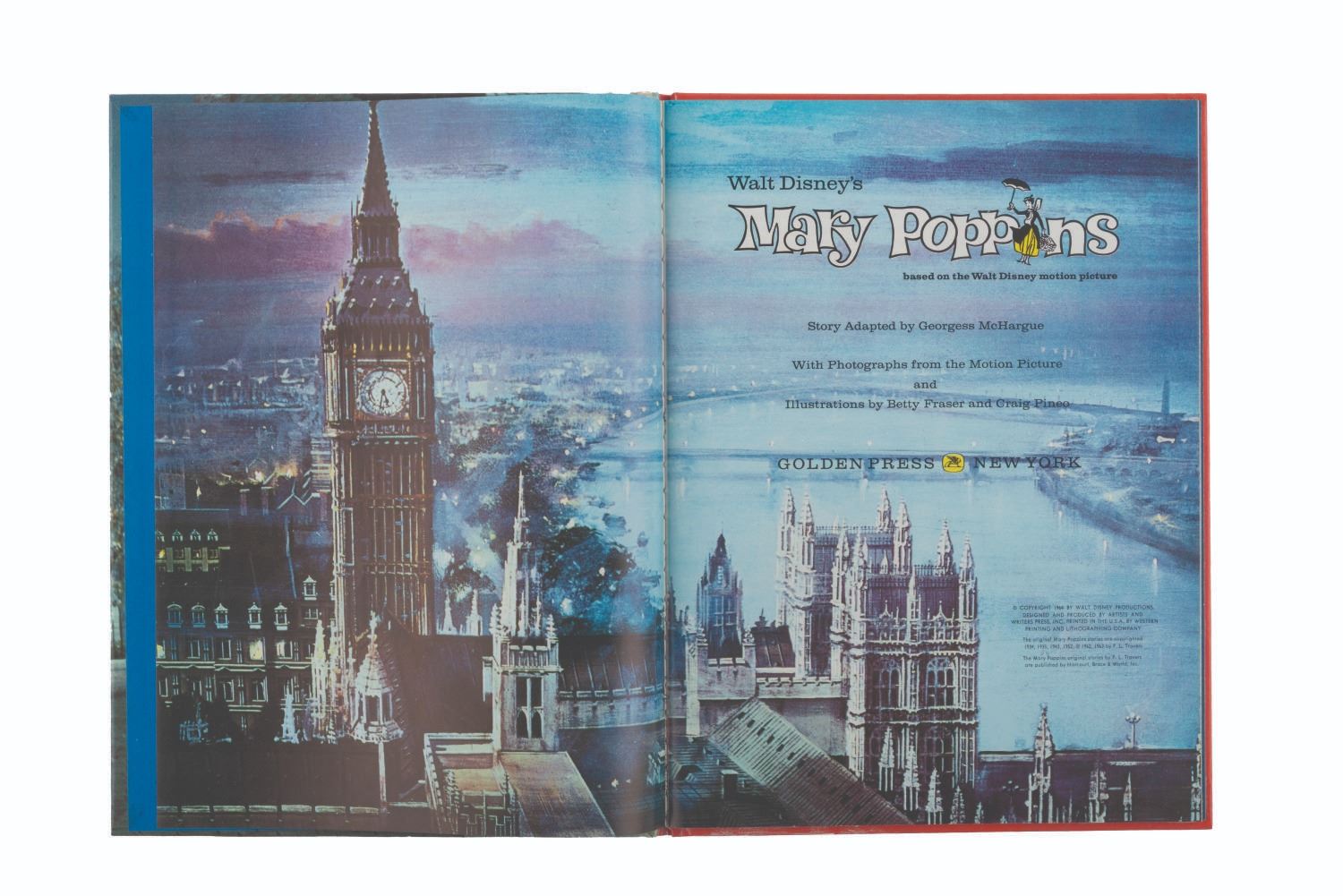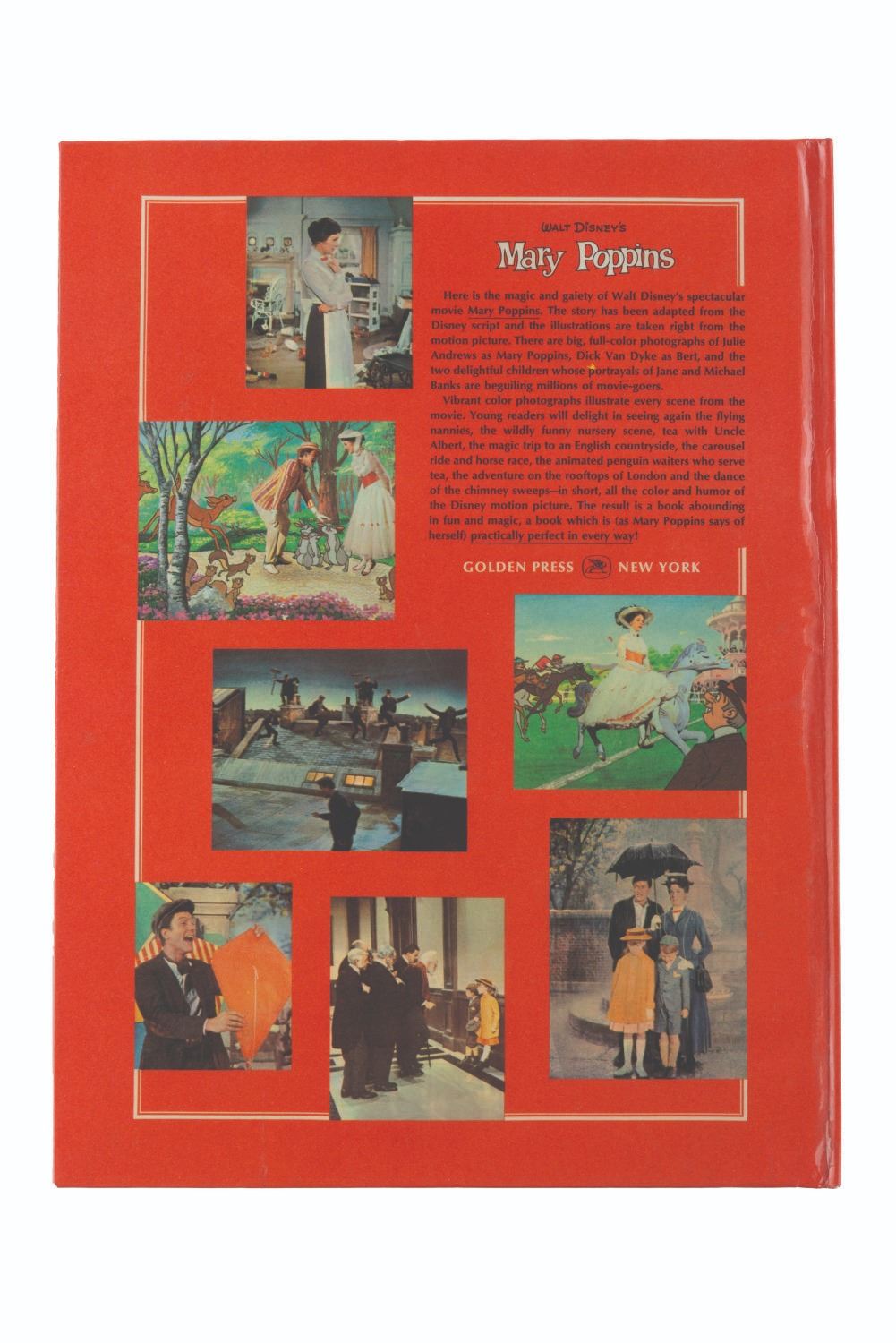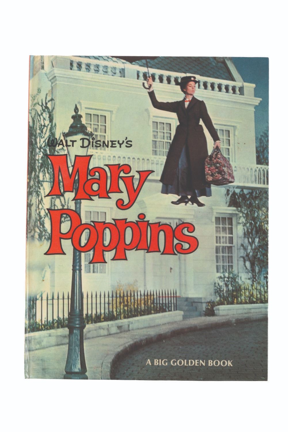 (Golden Press, 1964) A"Mary Poppins" hardcover Big Golden book, telling the story with photographs from the Walt Disney motion picture. Measuring 9.5" x 12.5", the book is in fine condition, with a very fitting child’s bookplate inside the front cover.