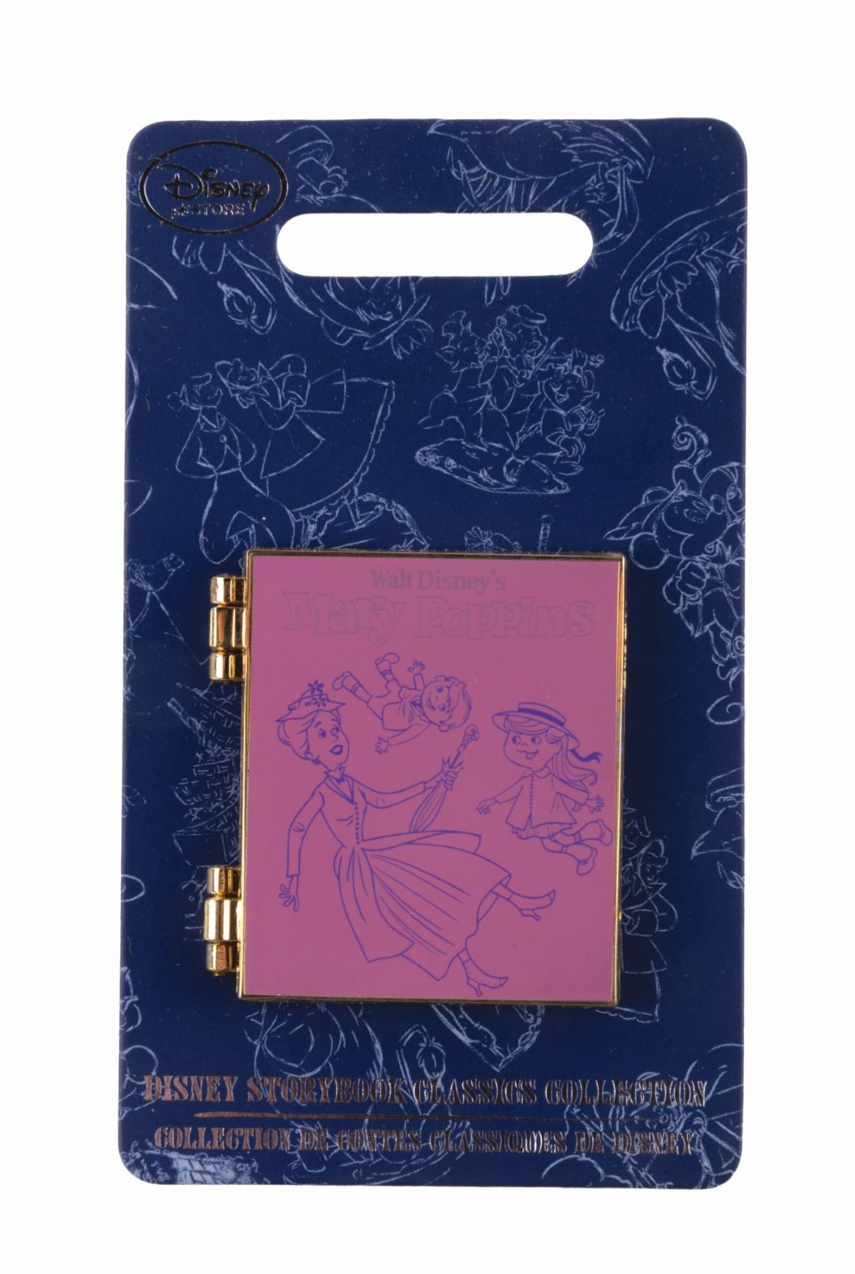 (Disney, 2017) A "Mary Poppins" hinged book pin, released in the Disney Storybook Pin Collection in January 2017. Measuring 1.5" x 1.75" the LE 1100 pin is in fine condition on the original card.