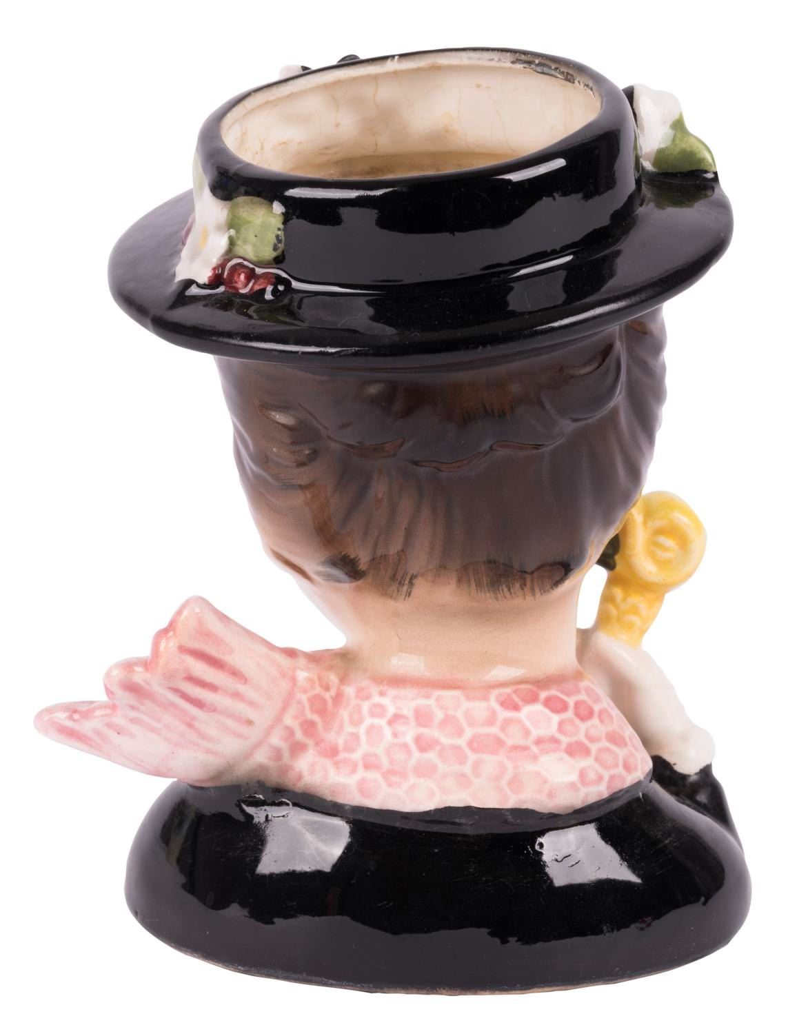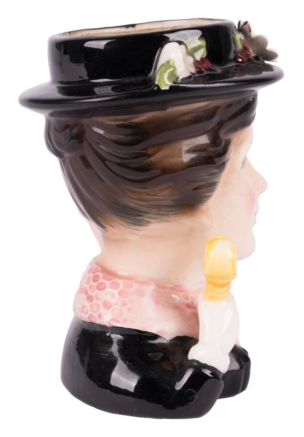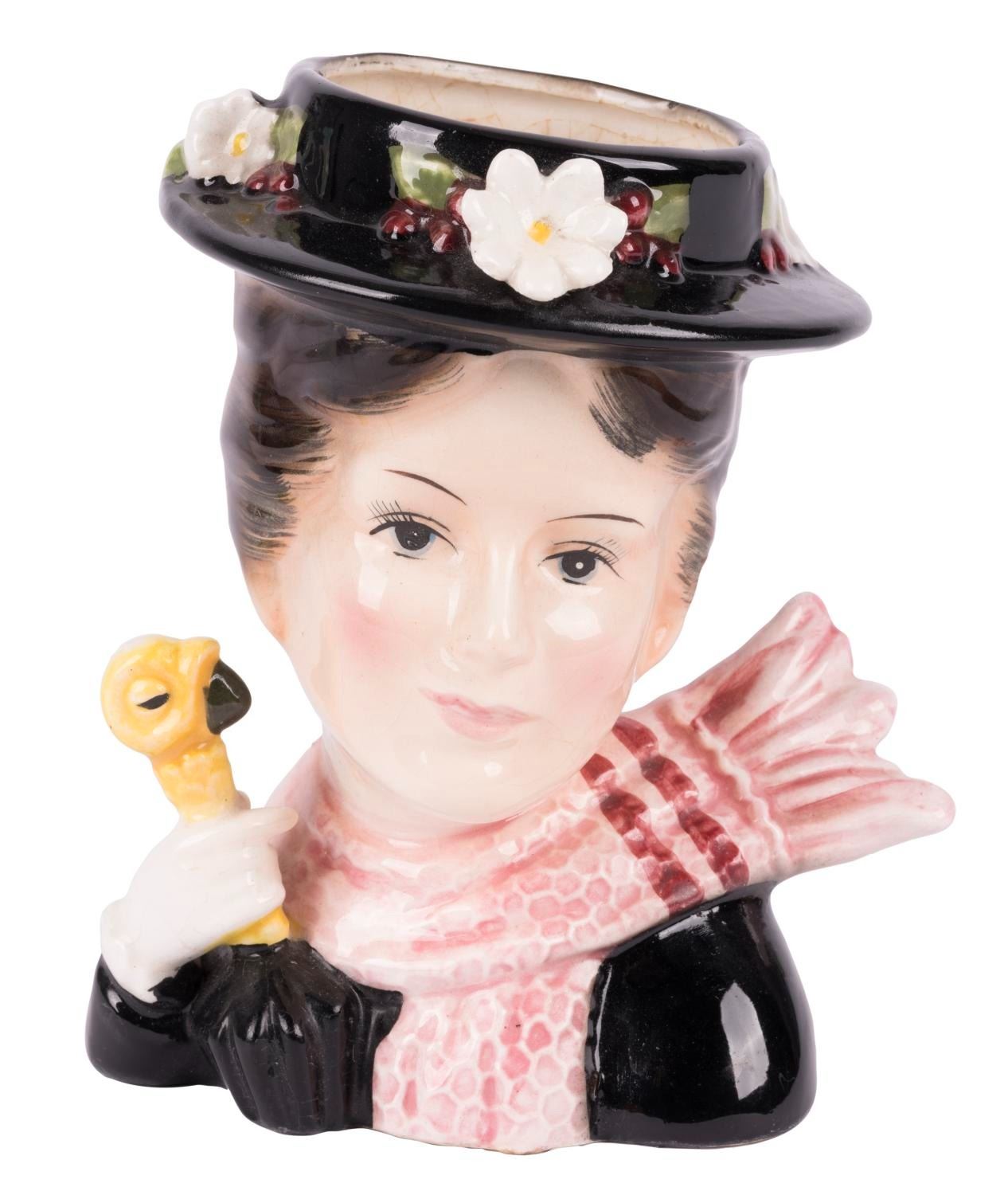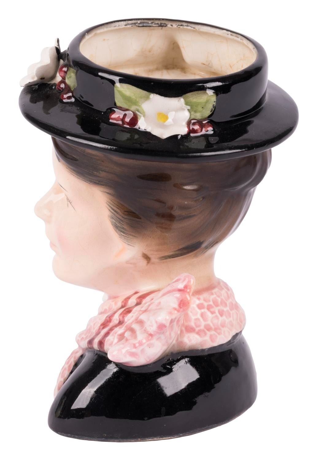 (Enesco, 1964) A beautiful souvenir ceramic "Mary Poppins" flower vase. Measuring 4" x 5.25" x 5.5" tall, the vase displays in very good condition, with heavy crazing to the interior.