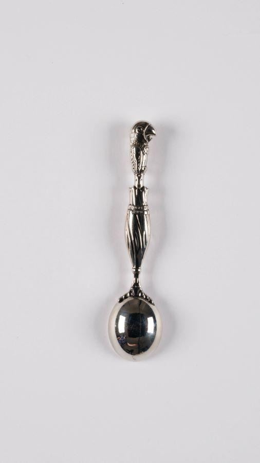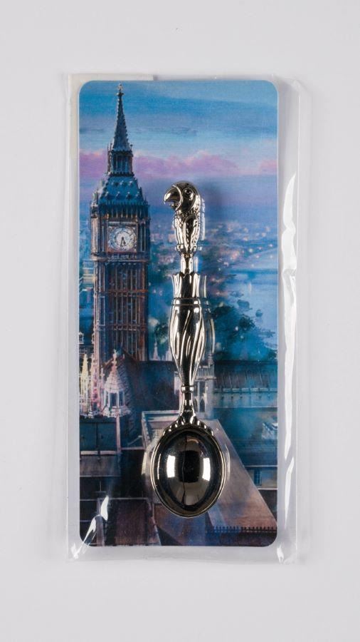 (Disney Parks, 2010s) A "Mary Poppins" spoon with a relief of Mary's iconic Parrot Head Umbrella as the spoon's "stem," likely manufactured after "Mary Poppins Returns" in 2018. Measuring 3.75” long, the spoon is in fine condition on the original 2.5” x 5.25” card.