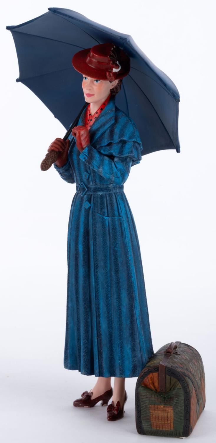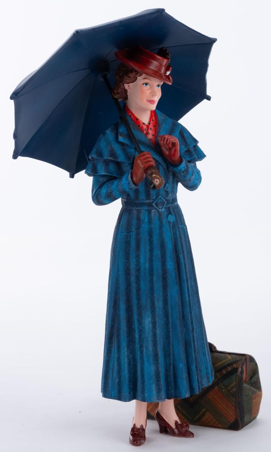 (Enesco, 2018) A “Mary Poppins Returns” Cinematic Moment figurine of Mary as portrayed by Emily Blunt, released in 2018 alongside the Disney live-action film. Measuring 6" x 3" and 9.5" tall, the stone resin figurine is in fine condition and includes the original box.