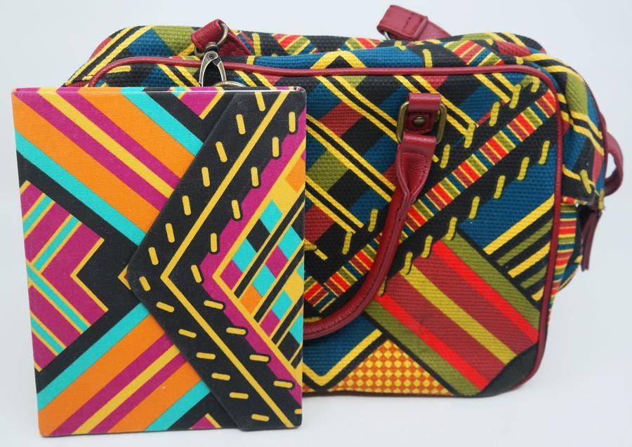 (Disney, 2018) A "Mary Poppins Returns" purse and journal set. The purse is designed after Mary's iconic carpet bag from the film, and the journal features a similar design and reads "Practically Perfect in Every Way" on the first page and "Magic Fills the Air" on the final page. The purse maintains its original tag and measures 11" x 5" x 8.5" tall, and the journal 6" x 7.75" x 0.5" thick, both in fine condition.