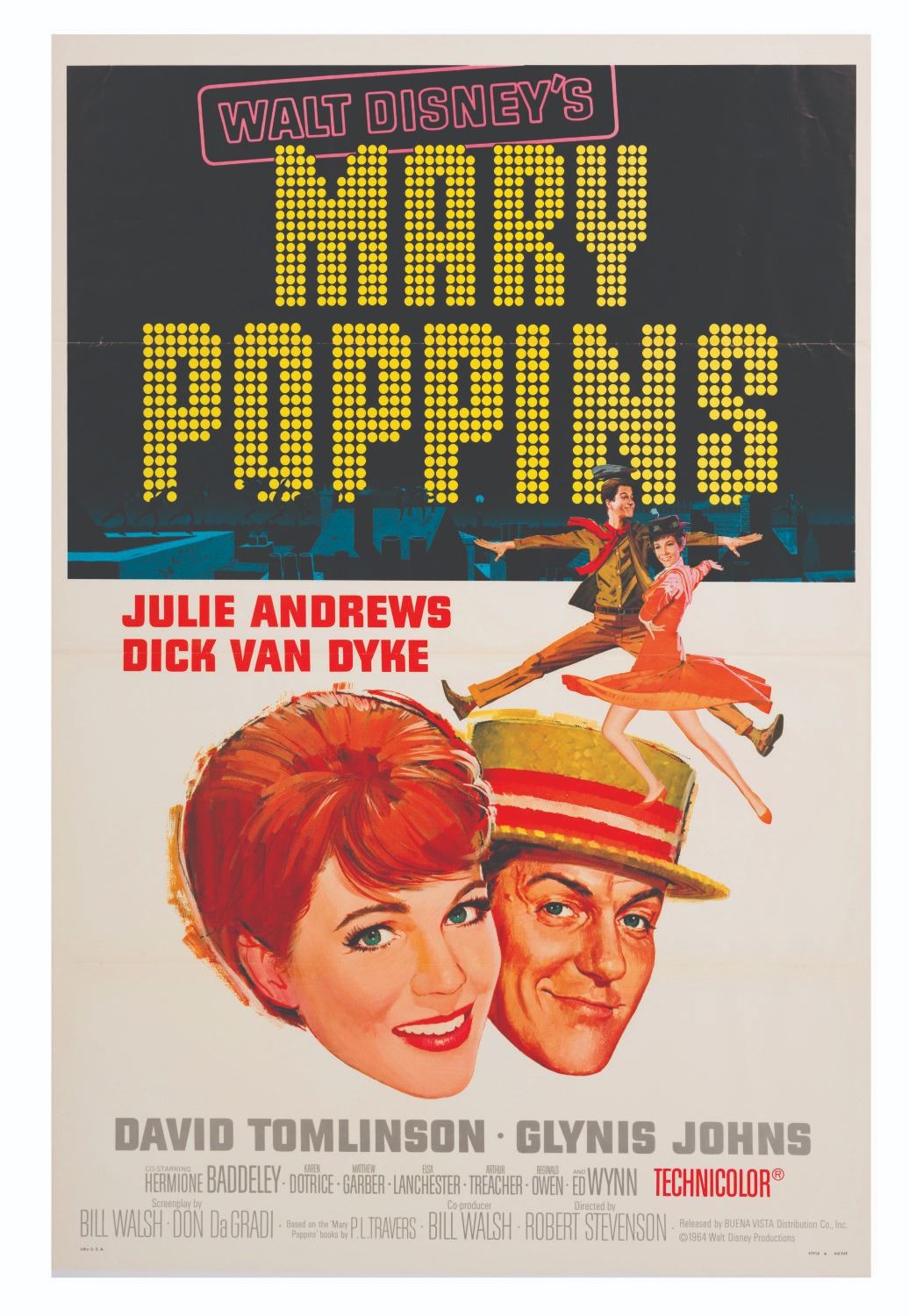 (Disney, 1964) An original release "Mary Poppins" style A one-sheet poster. Measuring 27"x41", the poster is in very good condition with typical wear to original folds and edges, including some small creases.