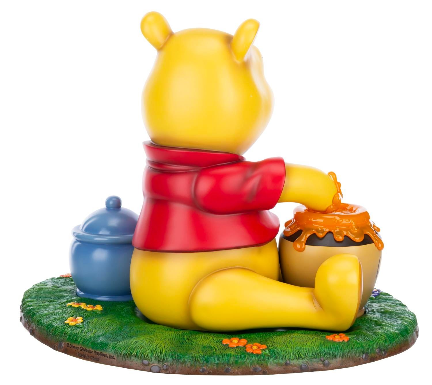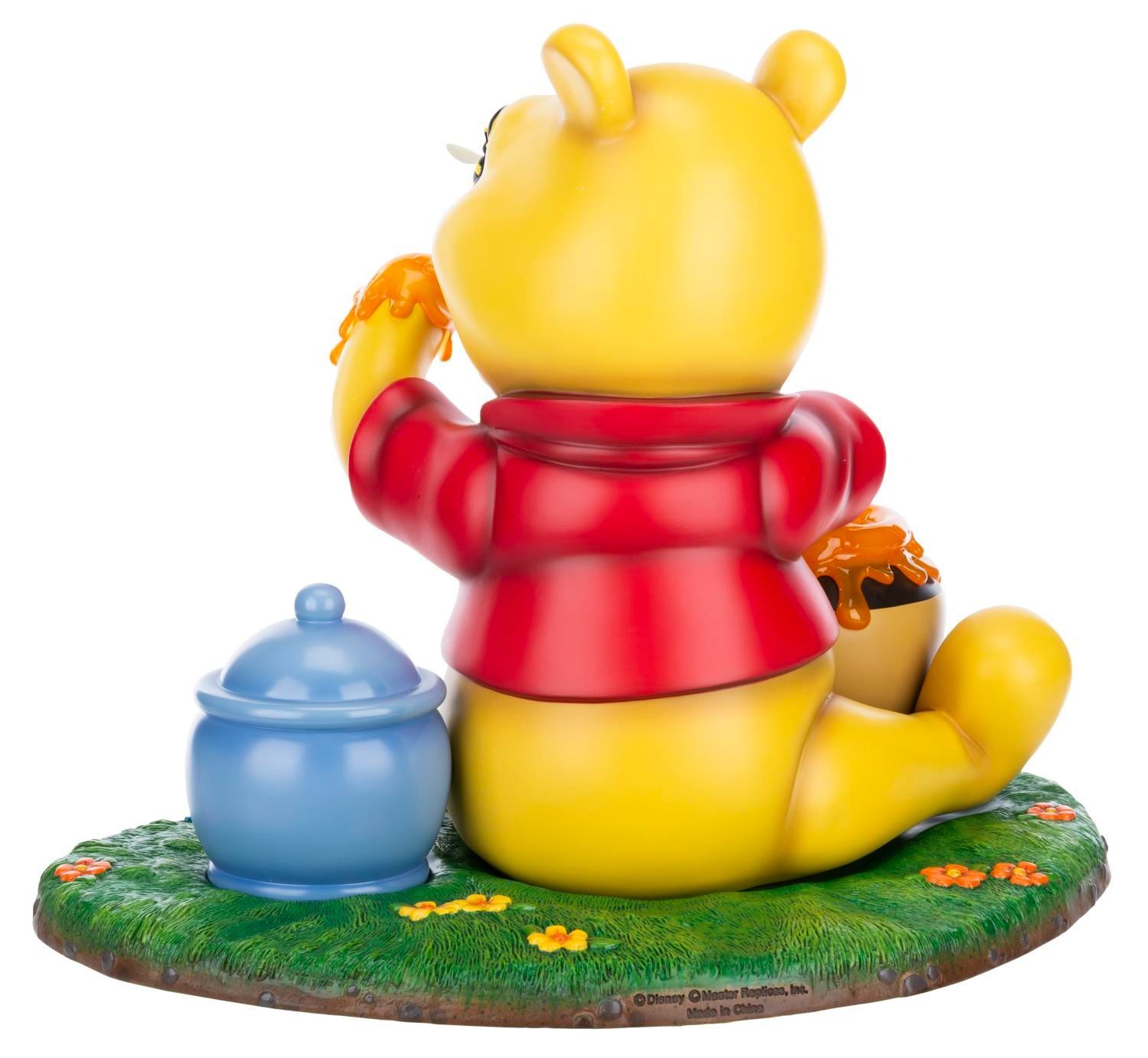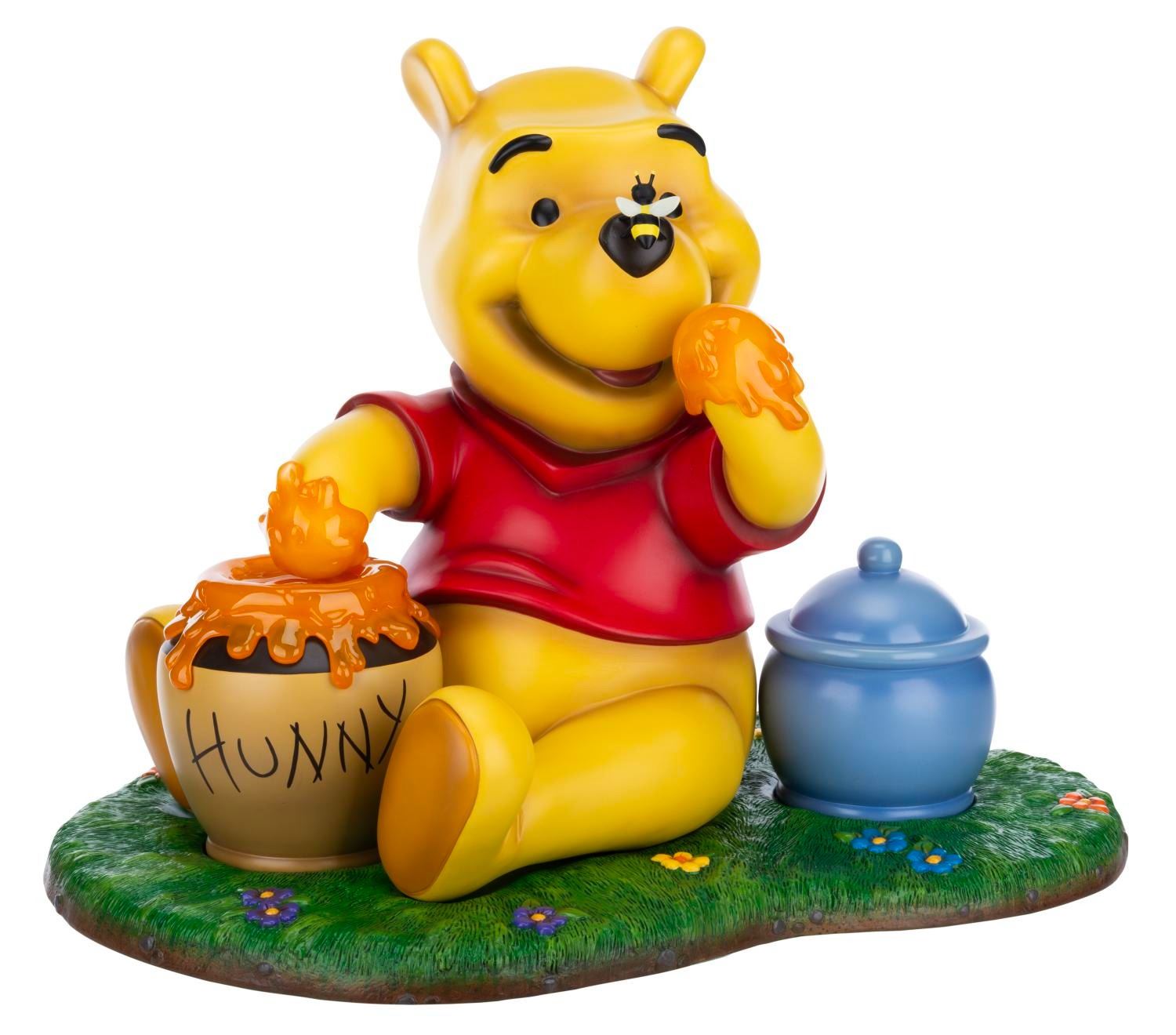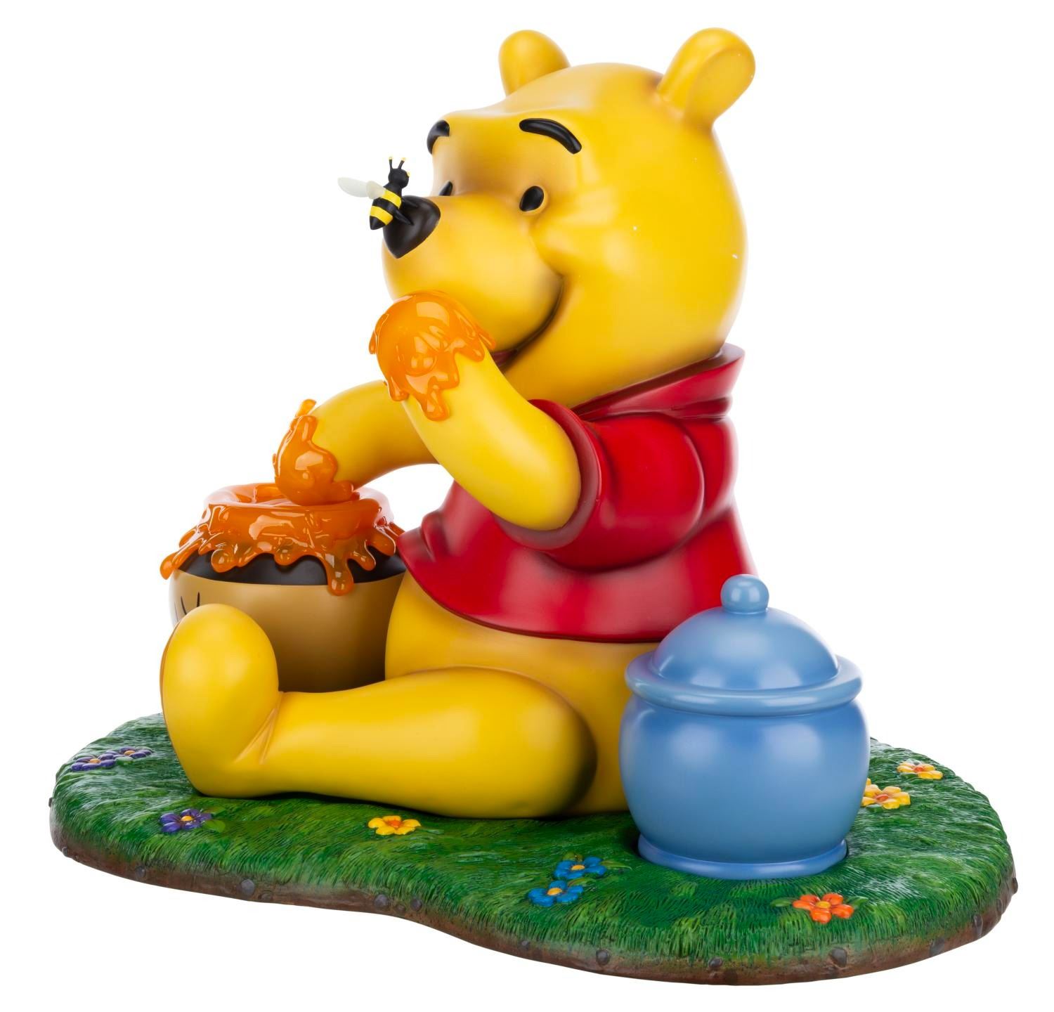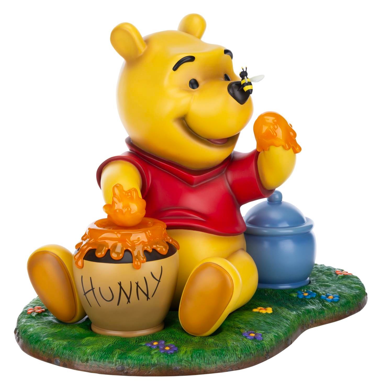 (Disney, 2000s) A Walt Disney Showcase Collection Master Replicas Winnie the Pooh Big Fig. The impressive figure, consisting of four parts, captures Pooh with a bee on his nose and his hand covered in honey. Measuring 15.5" x 20.75" x 16" tall, the Big Fig is in fine condition.