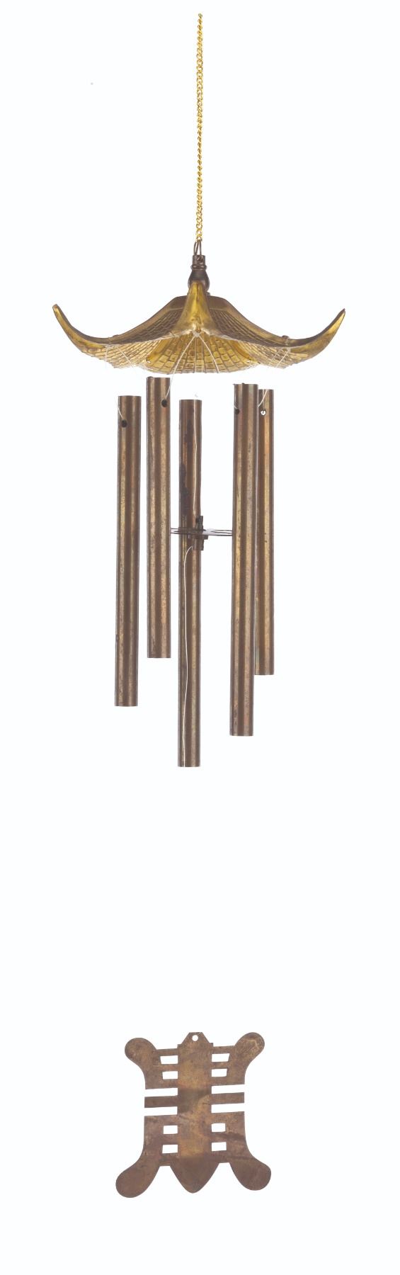 (Disney, 1970s) A hanging metal chime belonging to Disney sound designer Glenn Barker. This ornate chime was used by Barker to create the memorable sound effects in the Matterhorn’s glimmering crystal cavern scene. Along with the Matterhorn, Barker also created memorable sound effects for major attractions including Pirates of the Caribbean, Big Thunder Mountain Railroad, Space Mountain, and Star Tours. Measuring 15” tall, the hanging chime is in very good condition with light wear and oxidation from age.