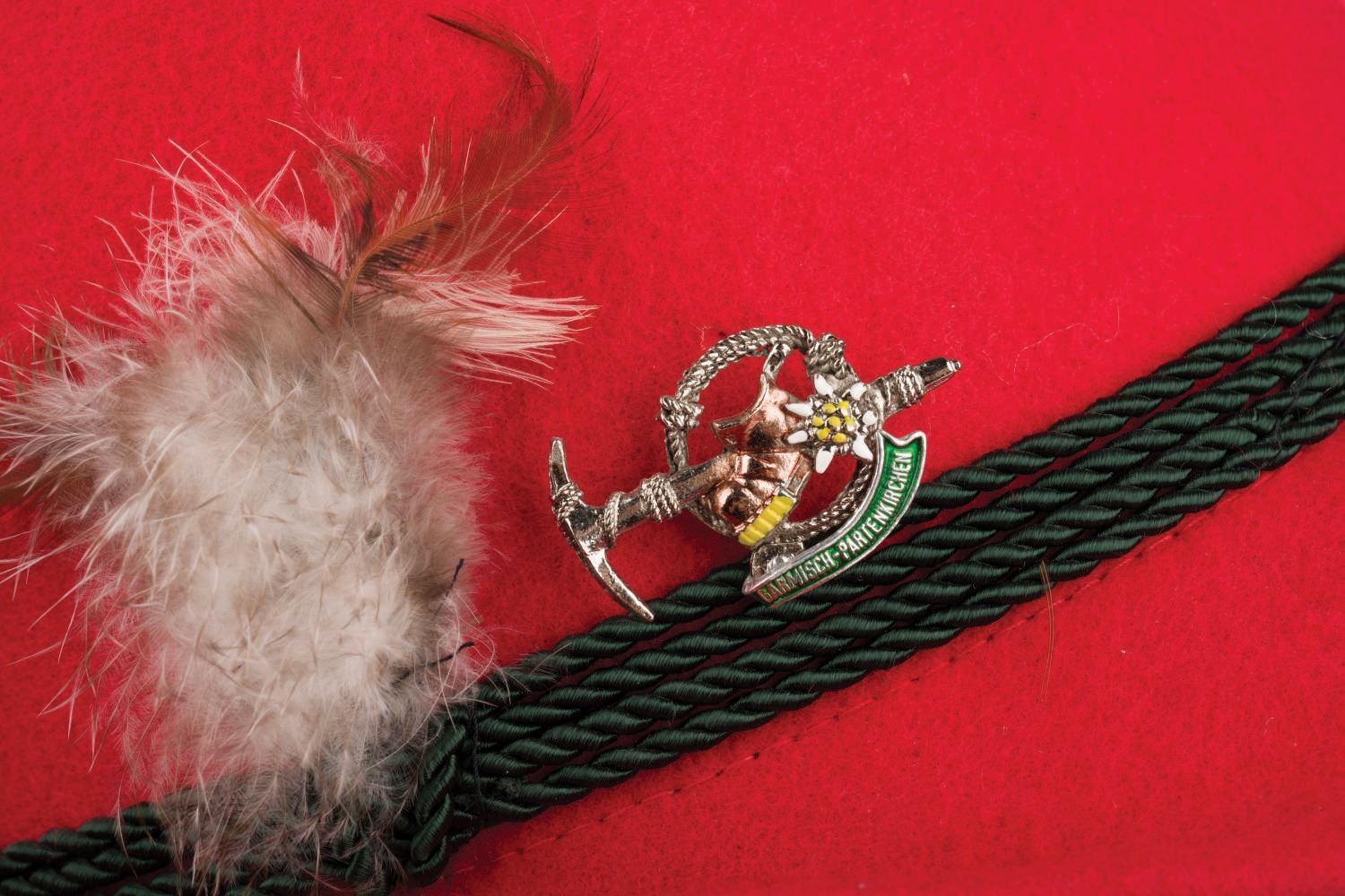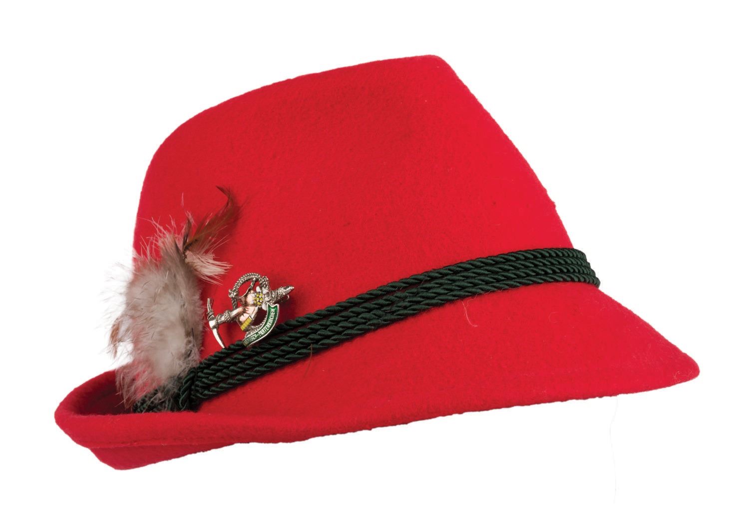 (Disneyland, 1960s) A souvenir hat from the Matterhorn in Fantasyland at Disneyland. The bright red hat retains a Disneyland label and size label reading "56," and is in good condition with only minor pilling and wear from handling and age.