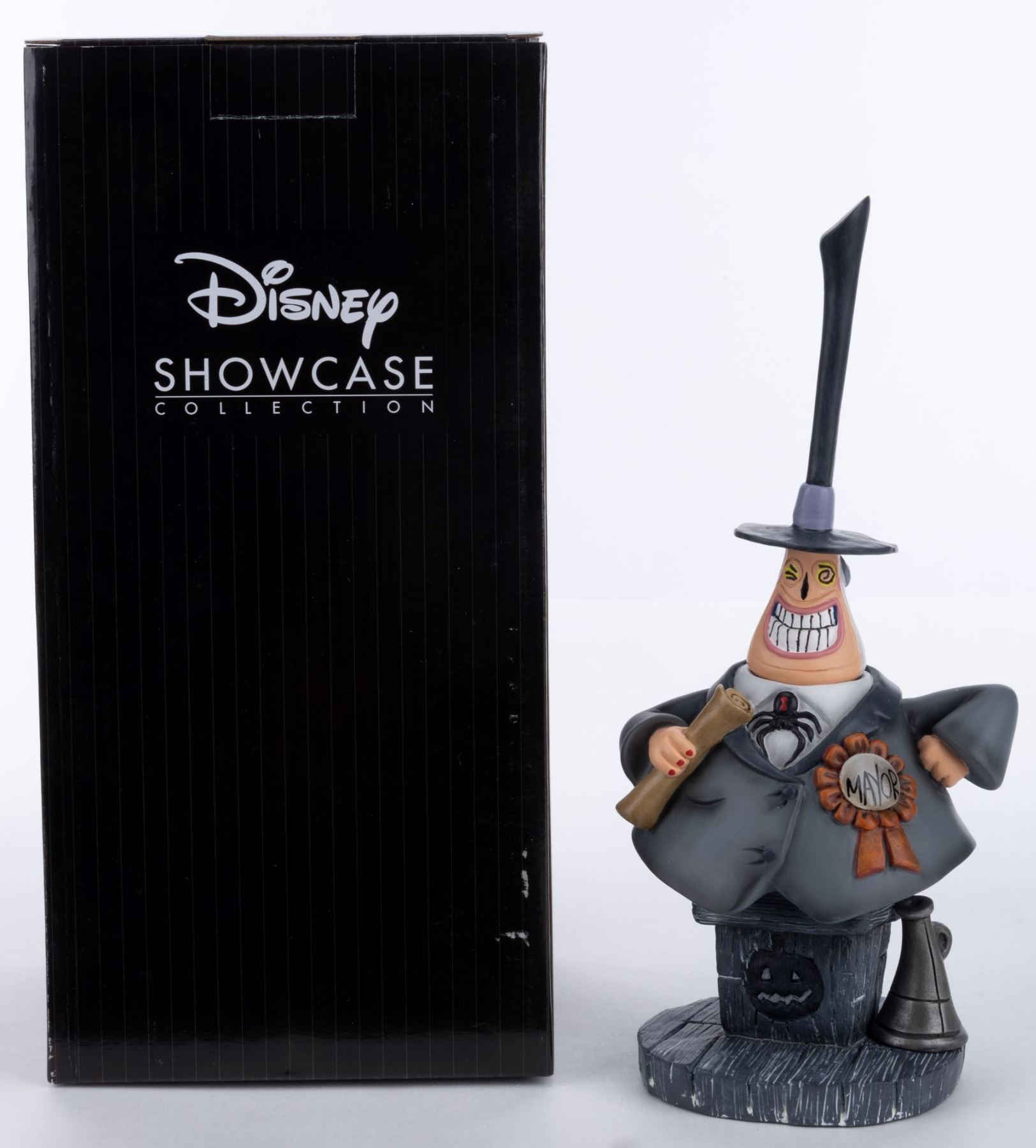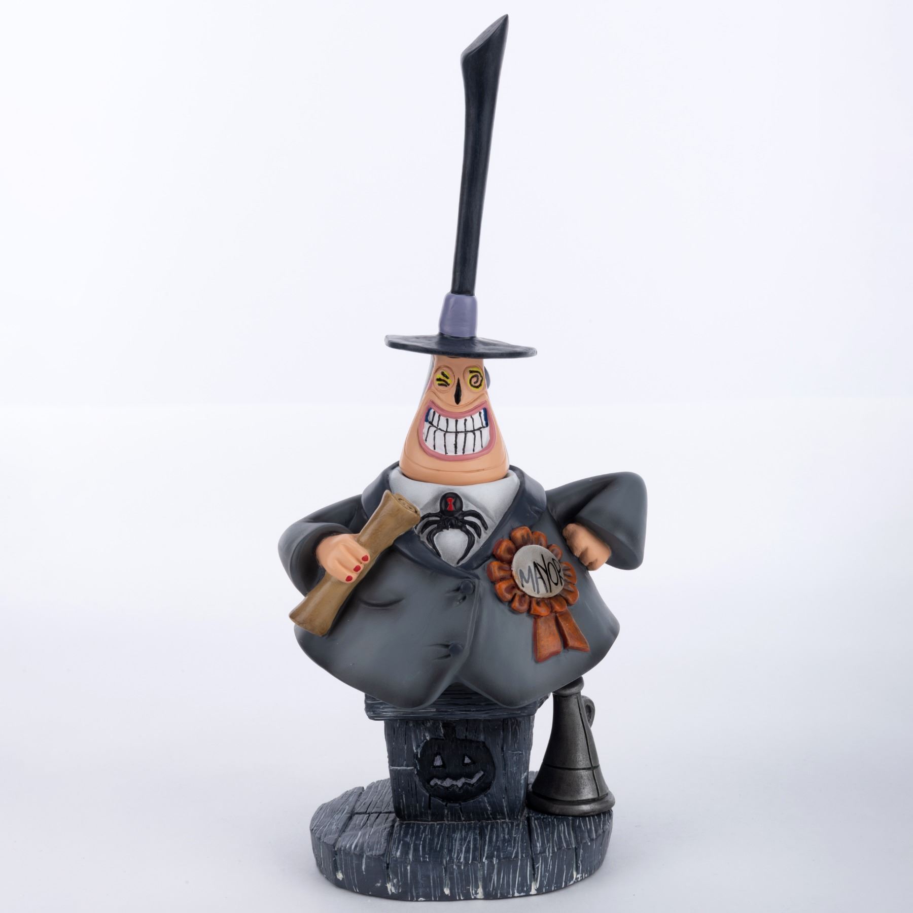 (Enesco, 2016) A Grand Jester Studios figurine bust of the Mayor of Halloweentown from "Tim Burton's The Nightmare Before Christmas." Measuring 4.25" x 3.75" and 10.25" tall, the stone resin figurine is in fine condition and comes with the original 5.5" x 5.25" x 11.5" box.