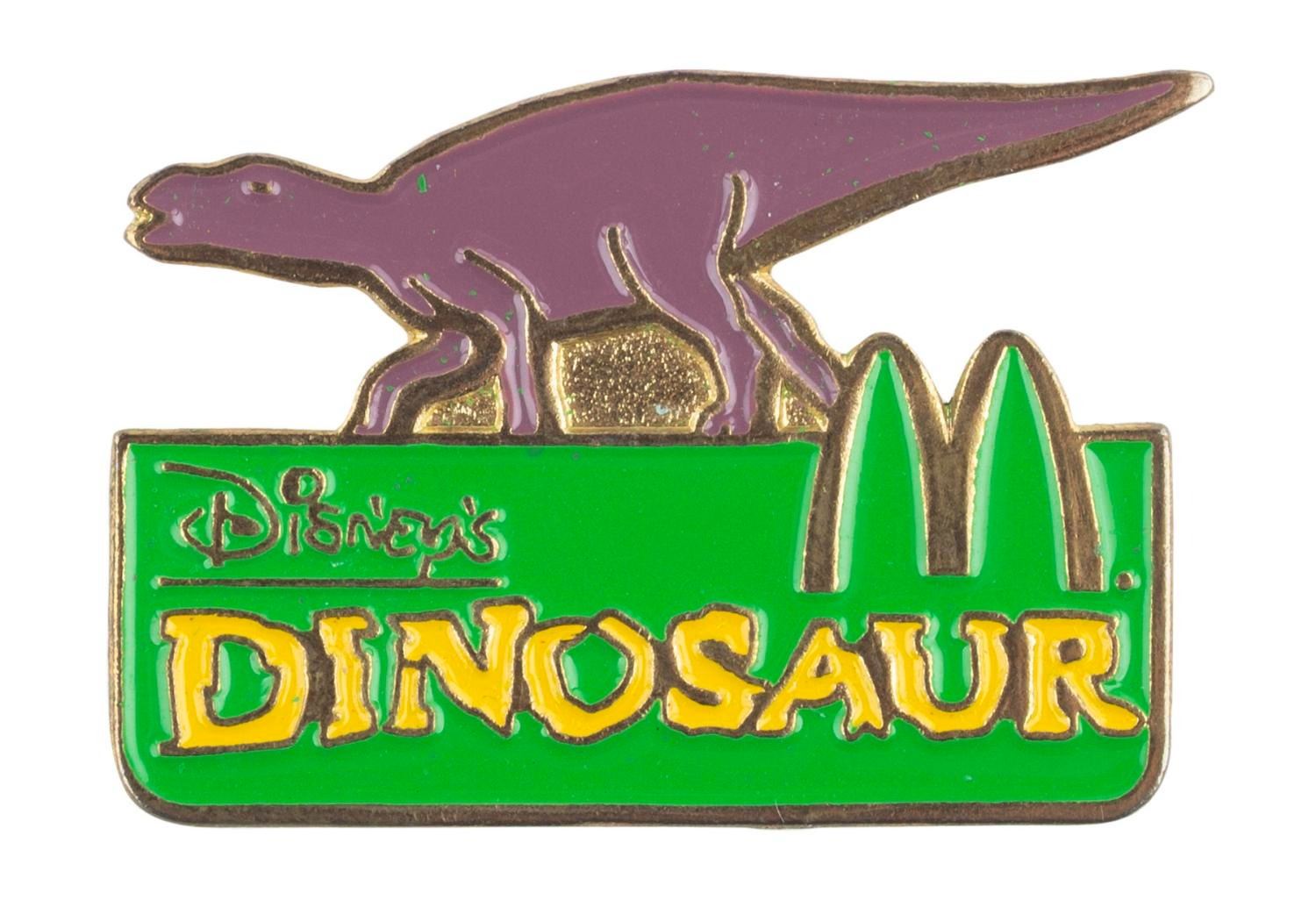(Disney/McDonald's, 2000) A McDonald’s crew member lapel pin worn during the restaurant’s Happy Meal promotion for the release of Disney’s "Dinosaur.” The pin measuring 1.25” x 1” is in very good condition.