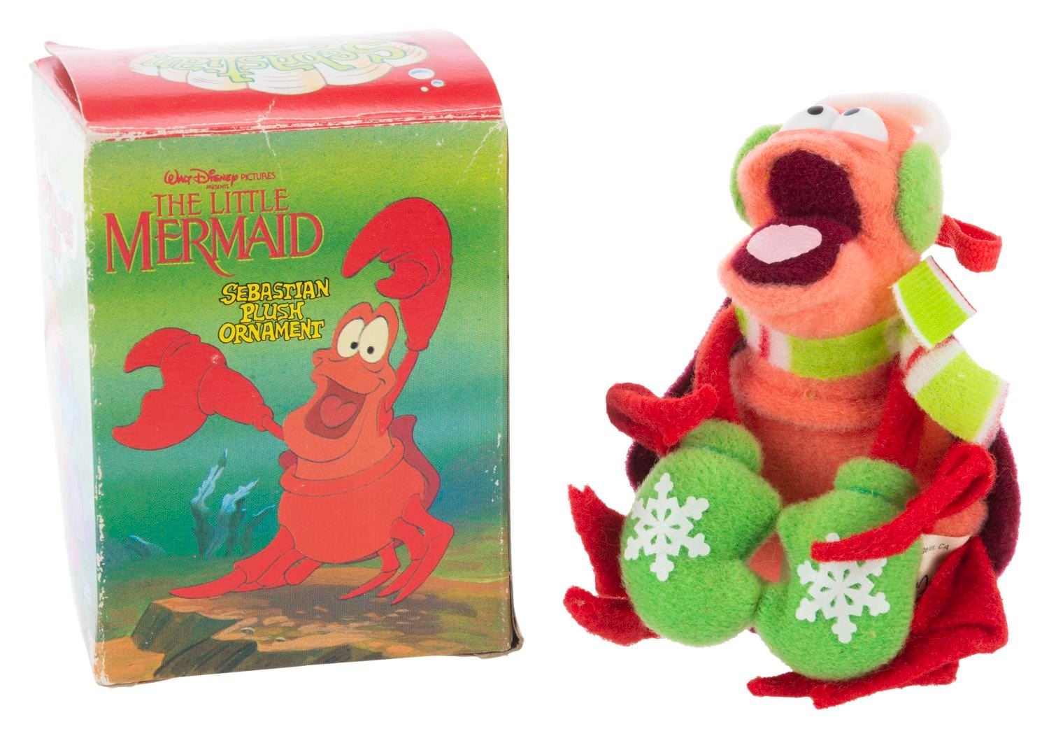 (McDonald’s, 1989) A plush ornament of Sebastian from “The Little Mermaid” released with McDonald’s Happy Meals. Measuring 4” tall, the ornament is in fine condition and comes with the original box in good condition with wear and creasing.