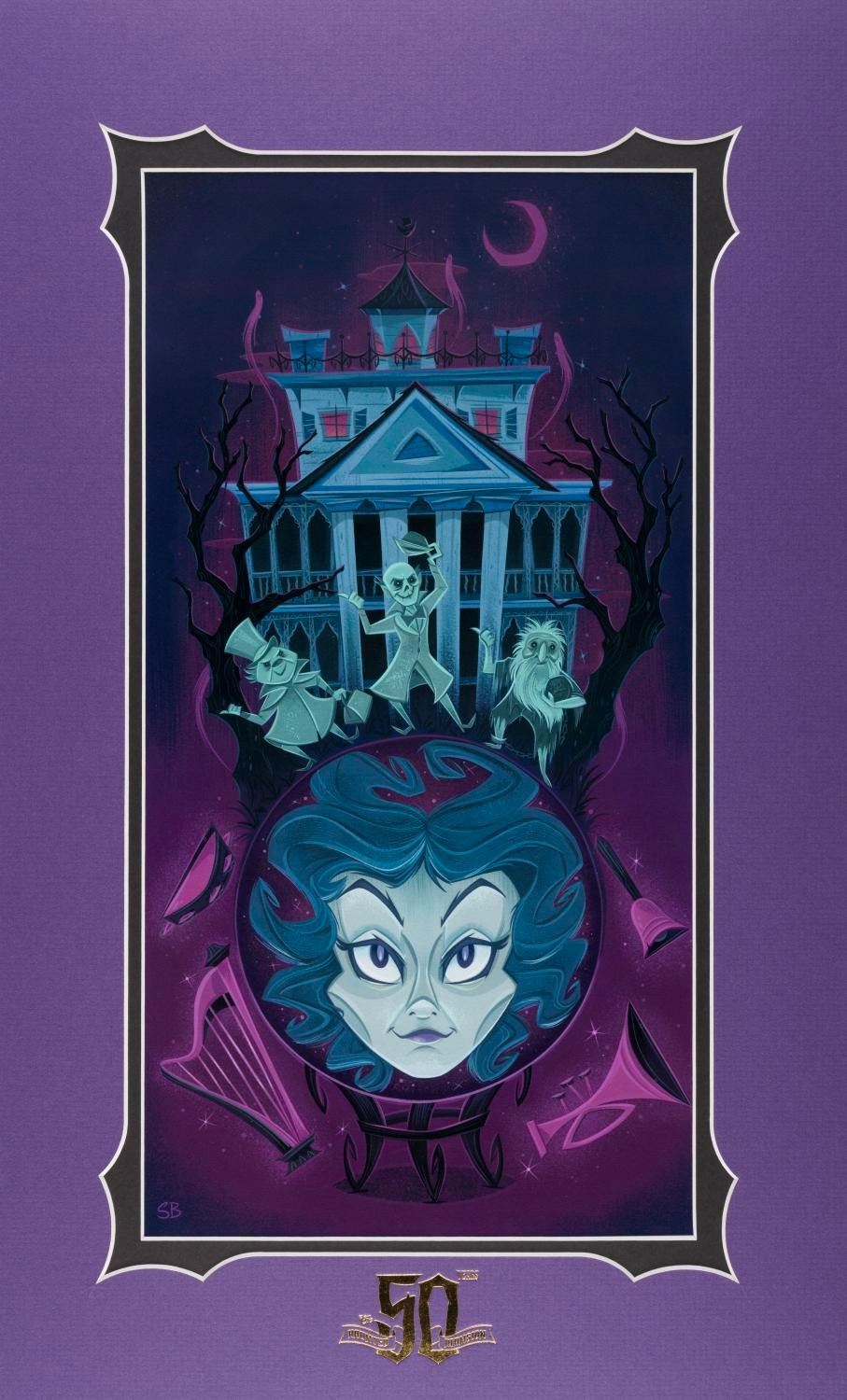 (The Art of Disney Theme Parks, 2019) A "Medium of the Mansion" Print by Stephanie Buscema, released for the 50th anniversary of The Haunted Mansion. The piece comes with its 13" x 21" matte and is in fine condition.