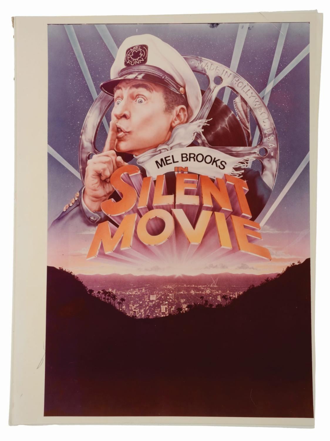 (20th Century Fox, 1976) A print of the key poster art for Mel Brooks' "Silent Movie" without the credits or "billing block" at the bottom. Measuring 10.5" x 14" mounted to artboard, the print is in good condition with fading, discoloration, ink marks, and a scratch across the top right corner.