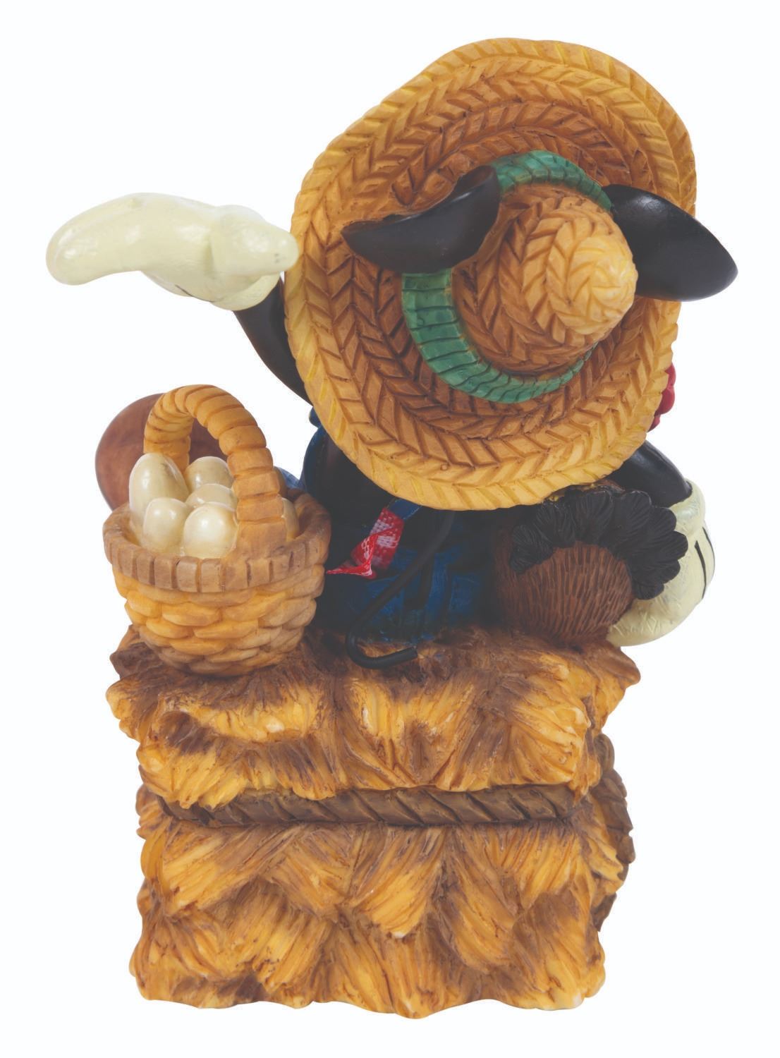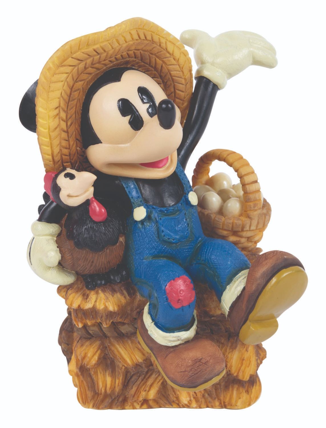 (ENESCO, 1980s-90s) A Farmer Mickey figurine titled "Hay, You're An Egg-stra Special Friend!" Standing 3.75" tall, the colorful resin figure is in fine condition with its original fair condition box.