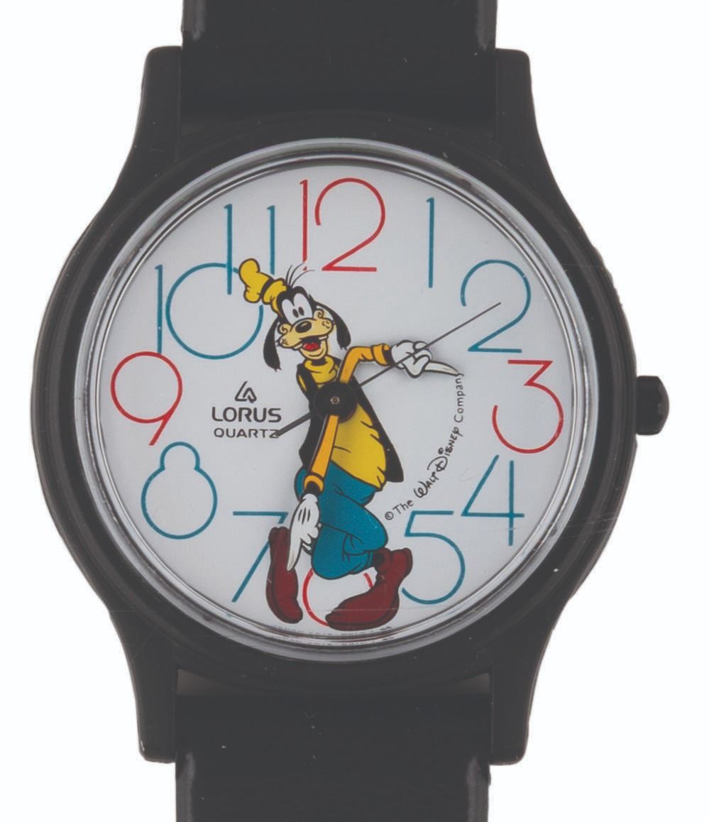 (Lorus, 1990s) A Goofy Quartz wristwatch by Lorus. Measuring 1.5 " in diameter with an 8.5 " band, the watch is in fine, as-new condition with the original box, requiring a battery and possibly service to function.
