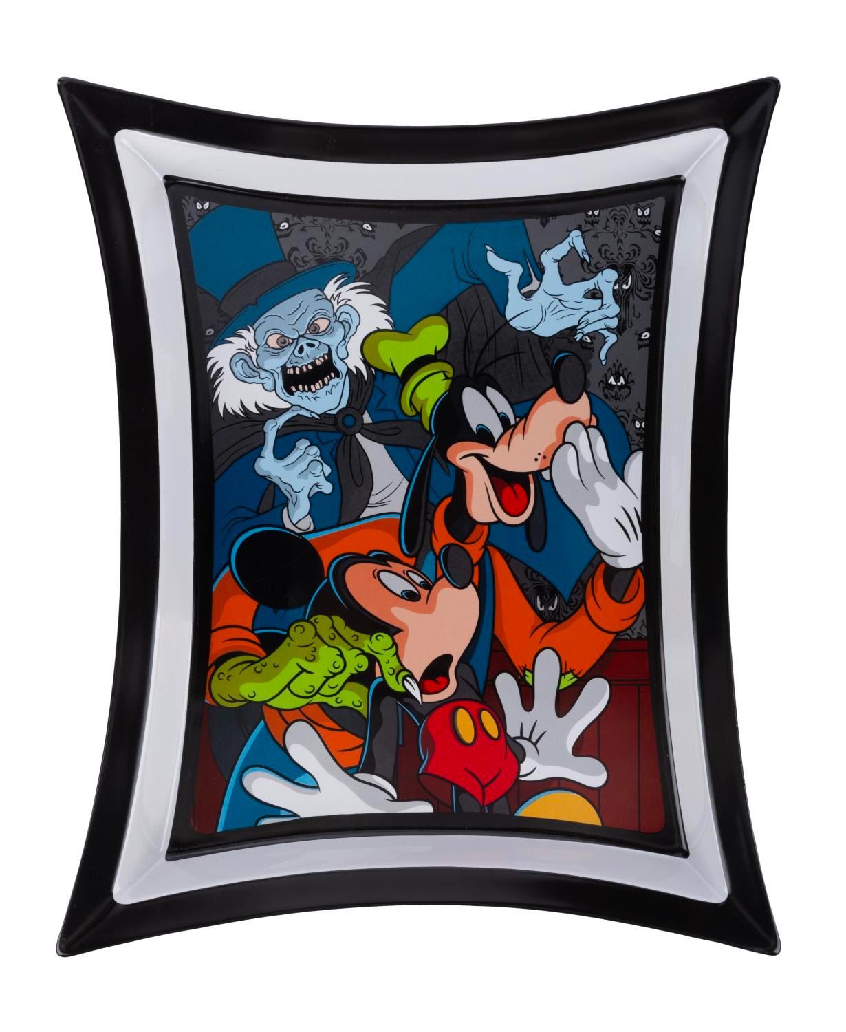 (Walt Disney World, 2000s) A Rare Haunted Mansion Limited Edition Plate by Doug Strayer. Disney Design Group Artist Doug Strayer is renowned for his design contributions toward Disney Parks merchandise like pins, apparel, and Vinylmation. This limited edition plate was issued for a “999 Happy Haunts: A Ghoulish Gathering” event at The Magic Kingdom (between 2002 and 2004), features Mickey and Goofy encountering the Hatbox Ghost, and is numbered 38/50. Measuring 14”x17” and 2” deep, the piece is in fine condition.