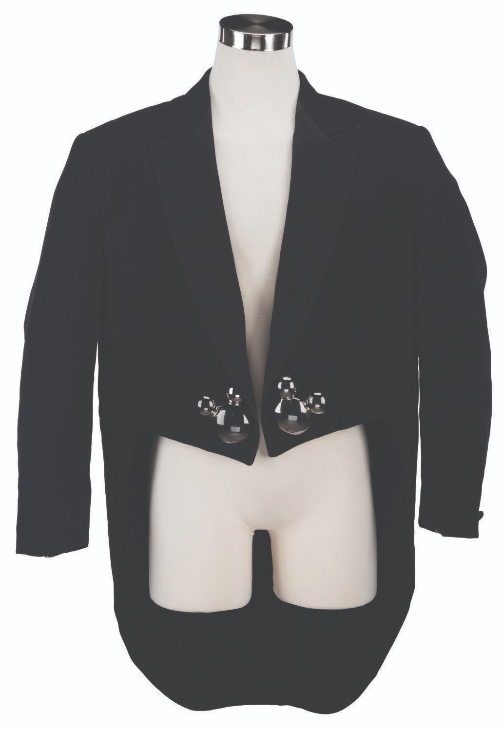 (Walt Disney World, 1994-96) A Mickey Mouse-style costume blazer with coattails and large Mickey head buttons worn by performers in the Mickey Mania Parade, which ran at the Magic Kingdom from 1994 to 1996. The costume is labeled"C. McCloud" and appears to be a size large. It displays in very good condition with wear from Park use including scratches on the buttons and one button loose from its stitching.