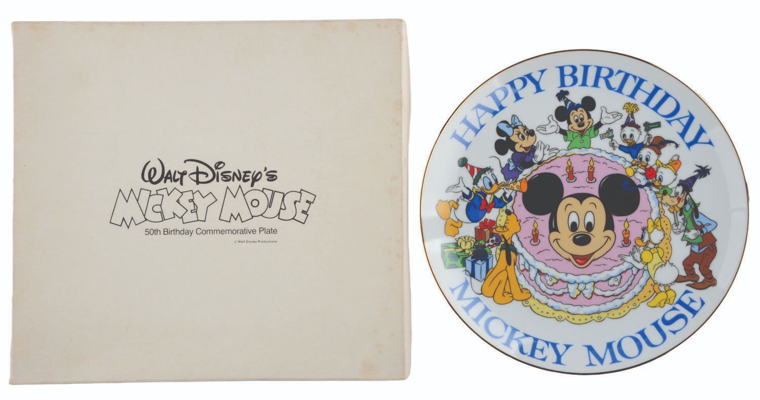 (Disney, 1978) A decorative plate from 1978 commemorating the 50th birthday of Mickey Mouse. Measuring 9.25" in diameter, the plate is in fine condition.