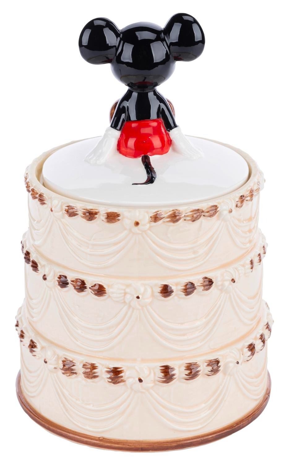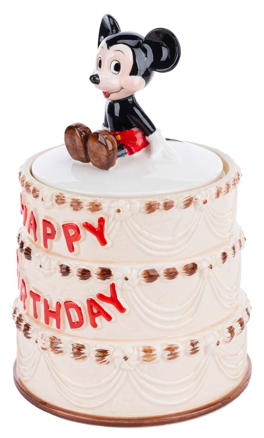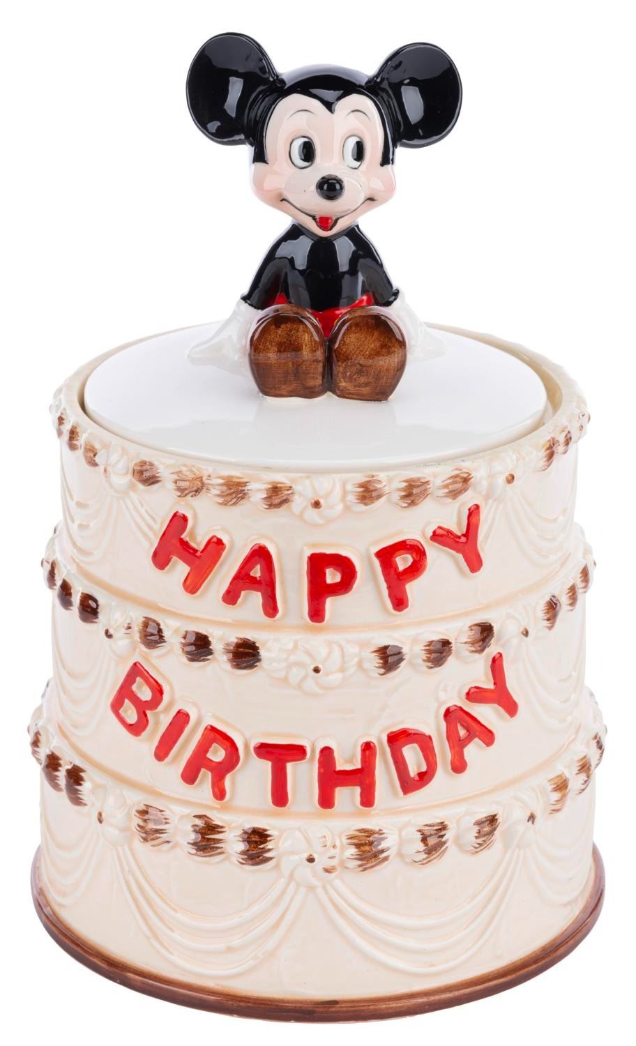 (Disney, 1978) A Mickey Mouse 50th Birthday cookie jar. Measuring 7" in diameter x 11" high, the ceramic cookie jar is in very good condition, with a few tiny dark spots on the jar's rim.