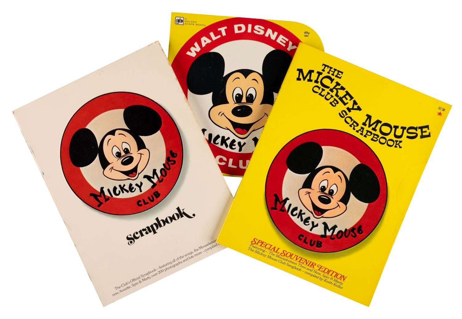 (Western Publishing/Grosset & Dunlap, 1975-77) A collection of Mickey Mouse Club books including the Golden Shape book from 1977, the Scrapbook from 1975, and the Special Souvenir Edition Scrapbook from 1976. Measuring 8" x 8" to 8" x 10.75", the books are in good to very good condition, with scuffing and edge wear to the cover of the scrapbook, and slight water damage and wear to the Special Souvenir Edition's cover and last few pages.