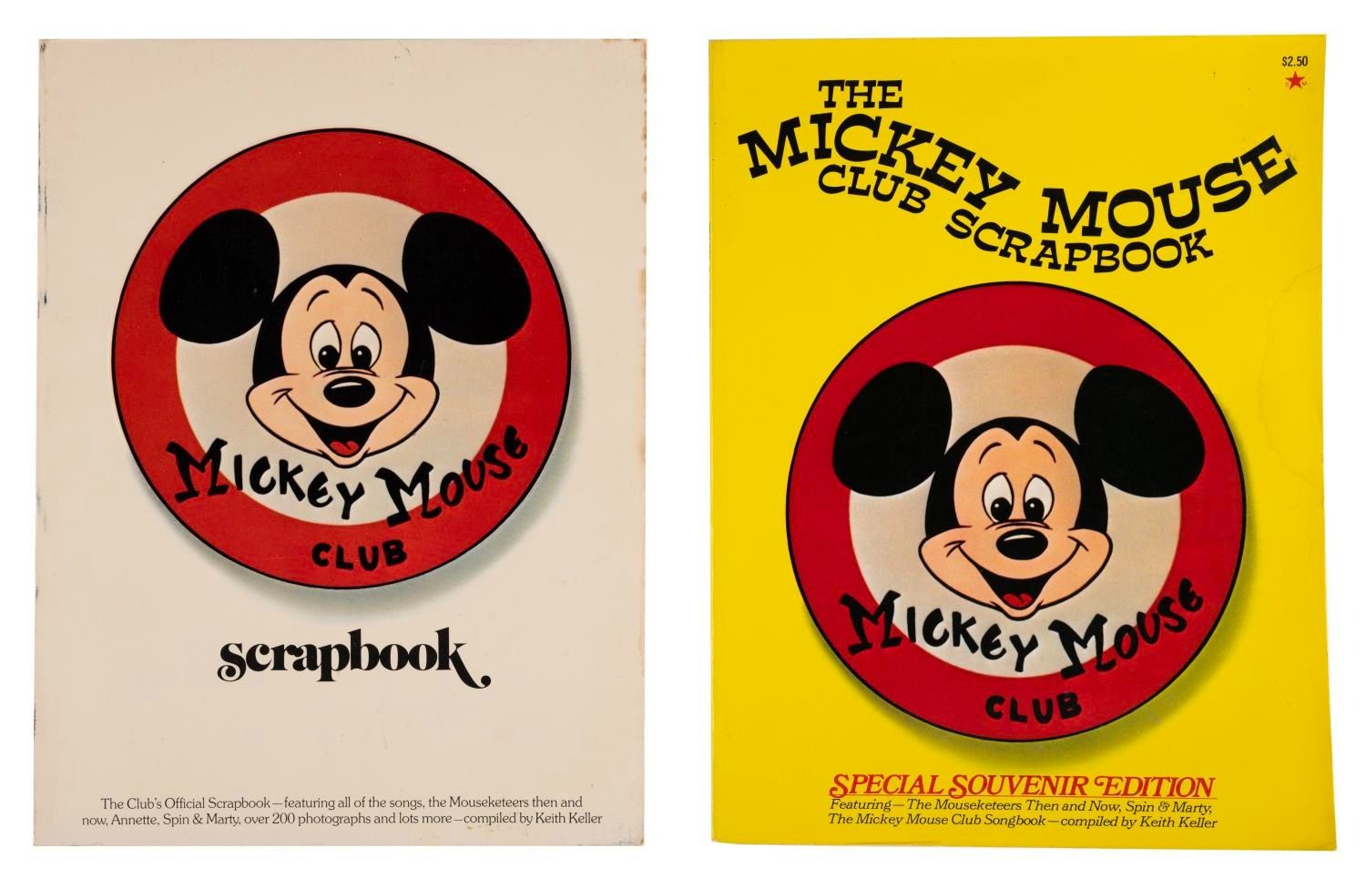 (Western Publishing/Grosset & Dunlap, 1975-77) A collection of Mickey Mouse Club books including the Golden Shape book from 1977, the Scrapbook from 1975, and the Special Souvenir Edition Scrapbook from 1976. Measuring 8" x 8" to 8" x 10.75", the books are in good to very good condition, with scuffing and edge wear to the cover of the scrapbook, and slight water damage and wear to the Special Souvenir Edition's cover and last few pages.