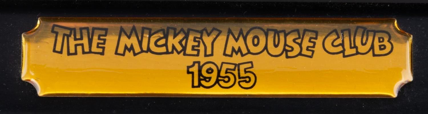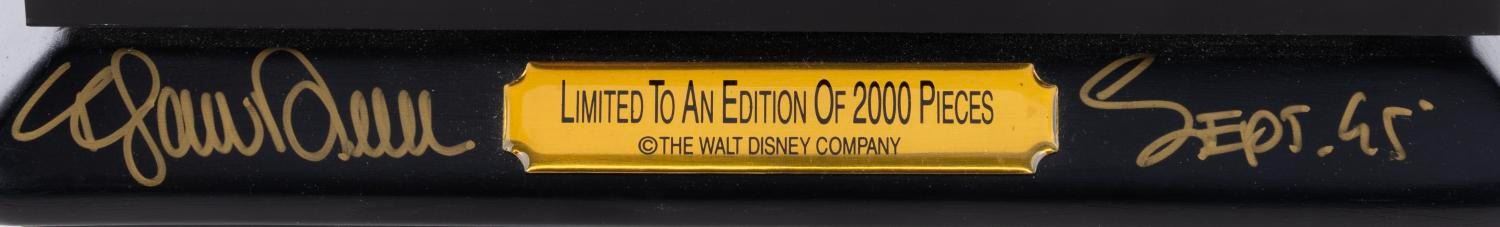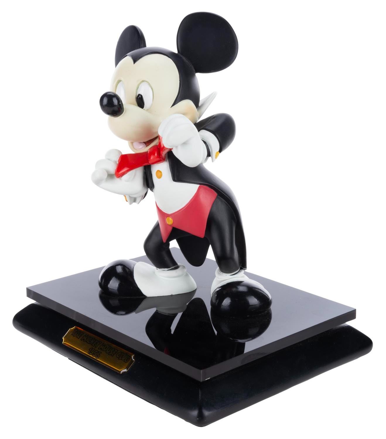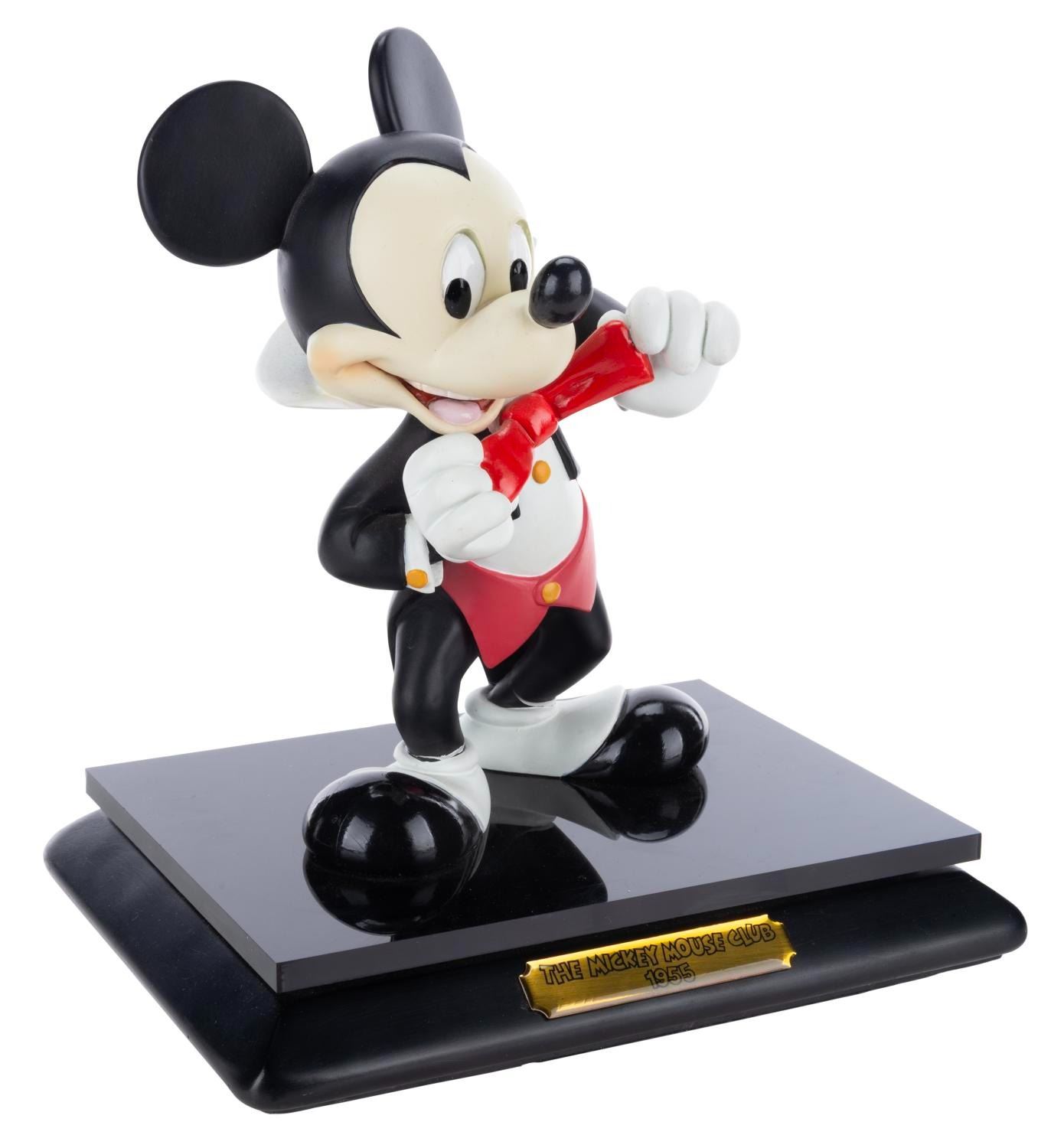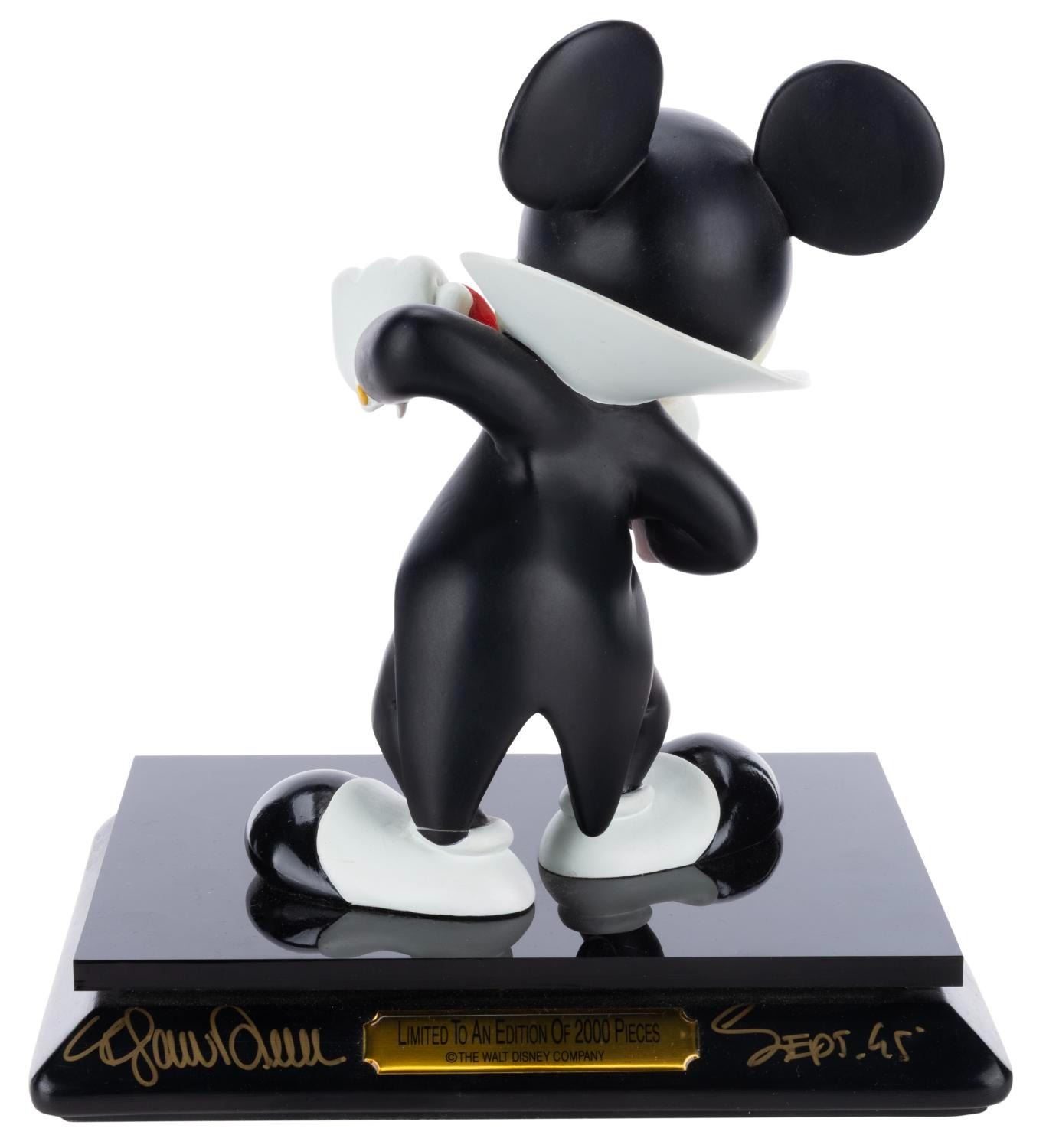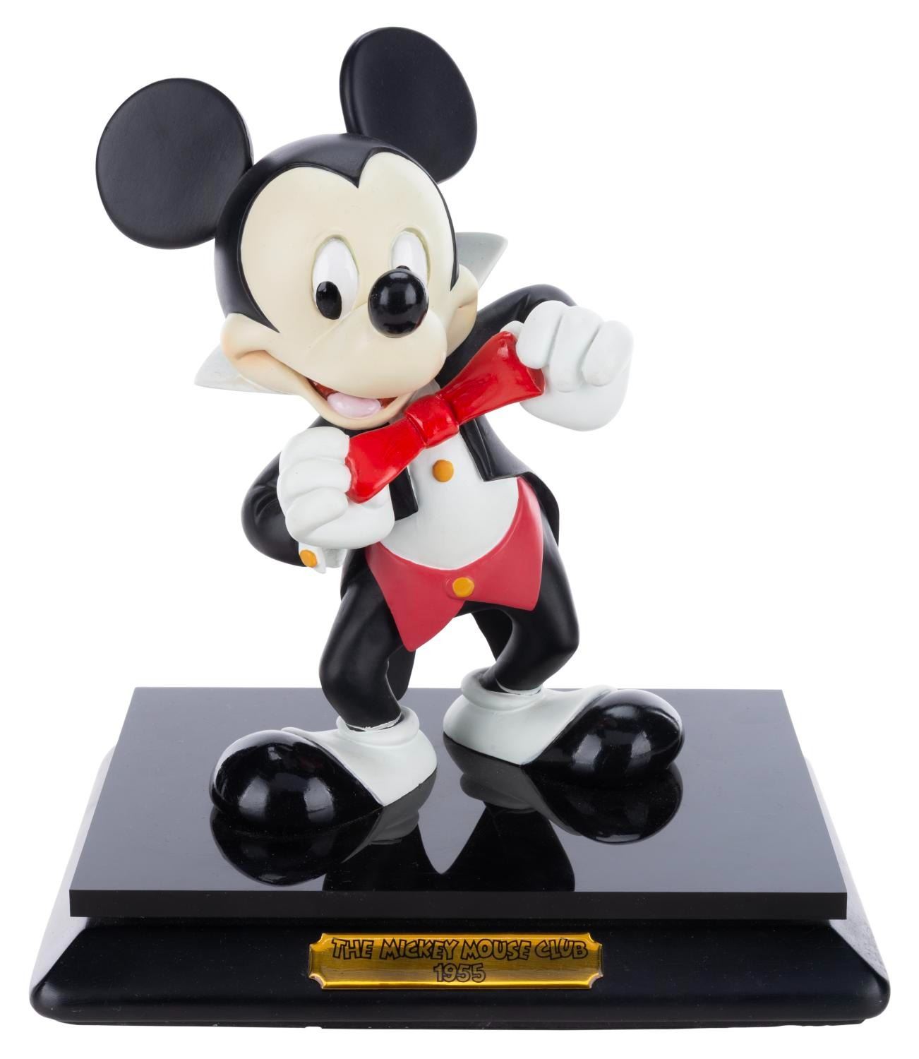 (Disneyana, 1995) A statue of Mickey Mouse titled "Neat and Tidy" inspired by "The Mickey Mouse Club." This resin statue was released at the 1995 Disneyana Convention in an edition of 2000 and hand-signed by designer Marc Delle. Measuring 9" x 7.25" x 9.25" high, the statue is in fair condition with cracks around the ankles where it was broken and then repaired.
