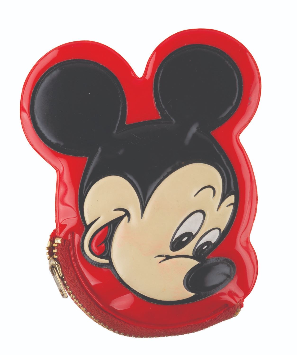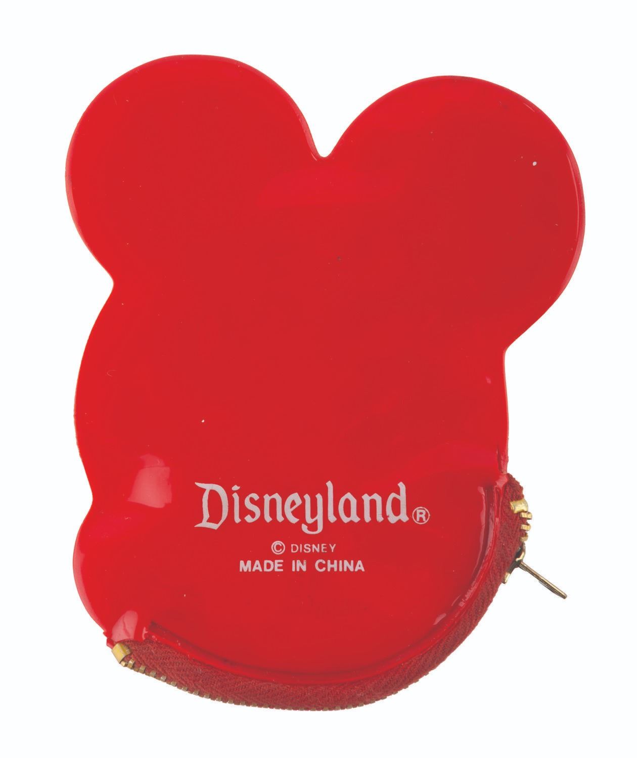 (Disneyland, 1970s-80s) A Mickey Mouse coin purse sold at Disneyland. The purse had a squeaker feature, which no longer functions. Measuring 4" x 5" the purse displays in very good condition with slight discoloration from age.