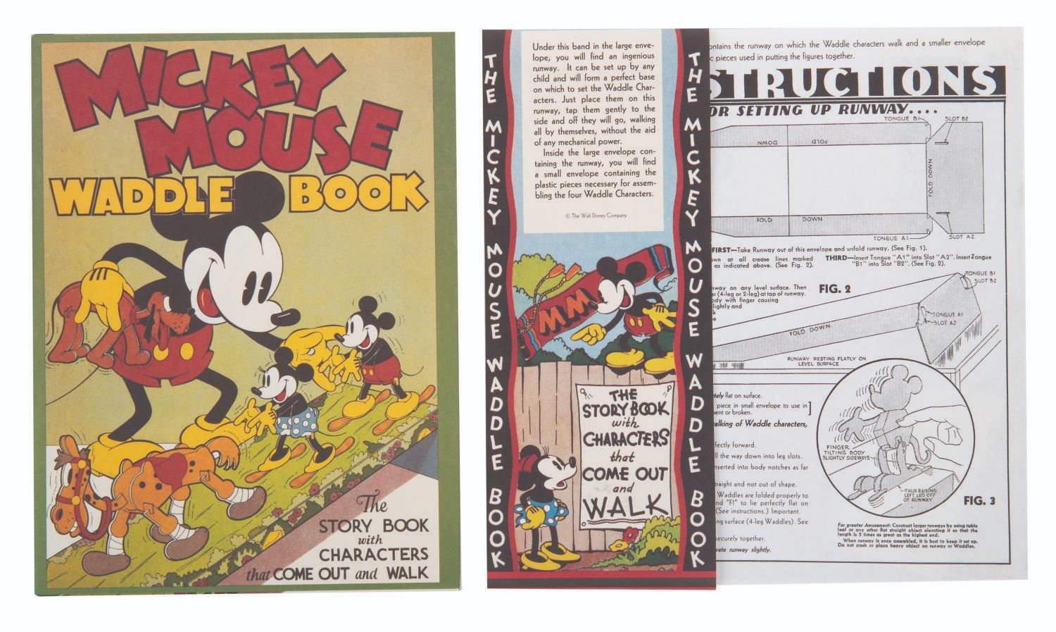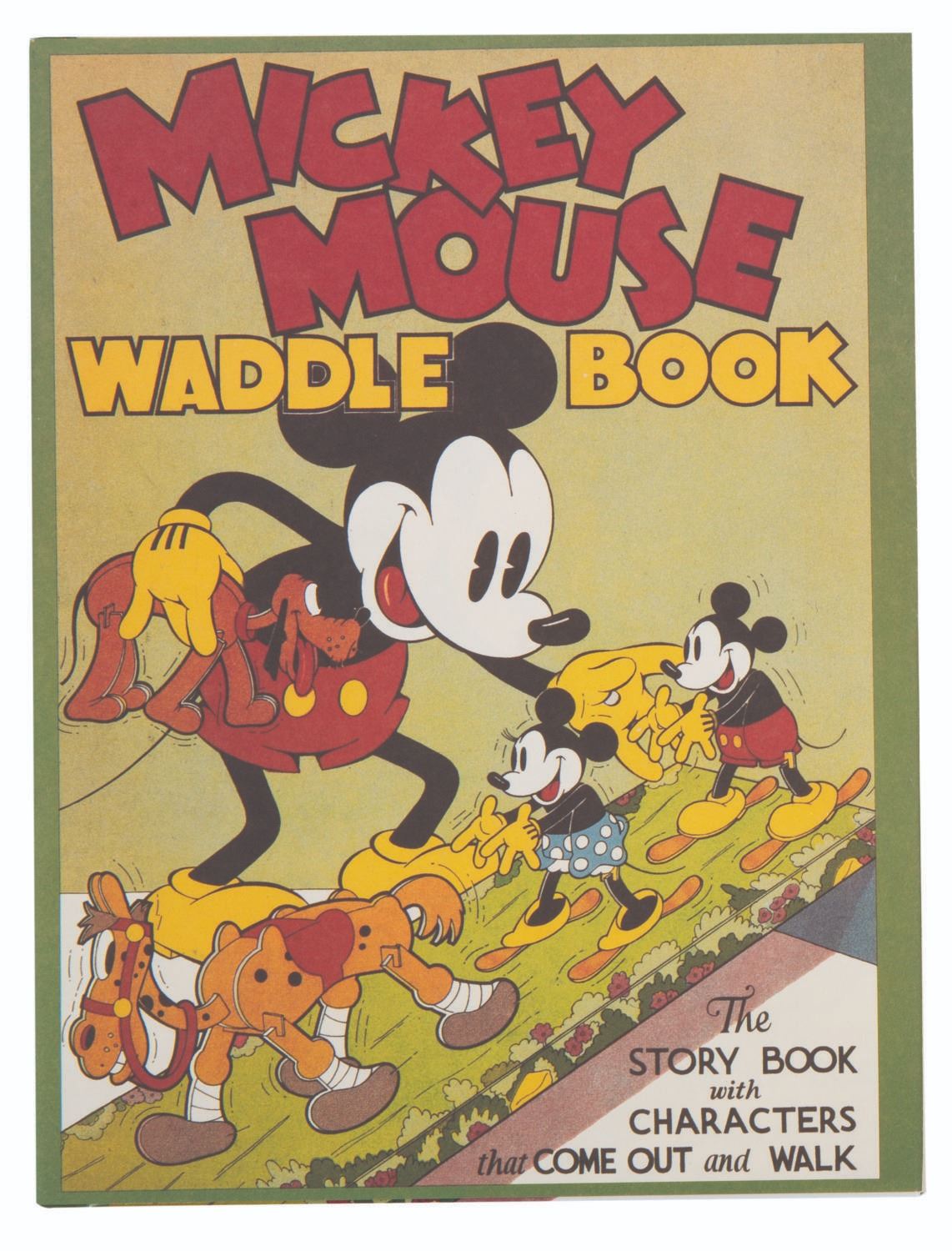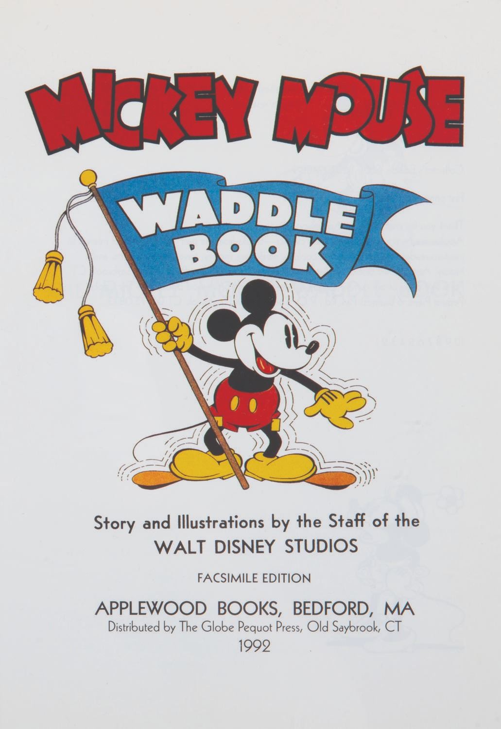 (Applewood Books, 1992) A Mickey Mouse Waddle Book, reprinting the extremely rare version published by Blue Ribbon Books in 1934. Measuring 10.5" x 7.75", the book is in fine condition, with unpunched characters and runway.