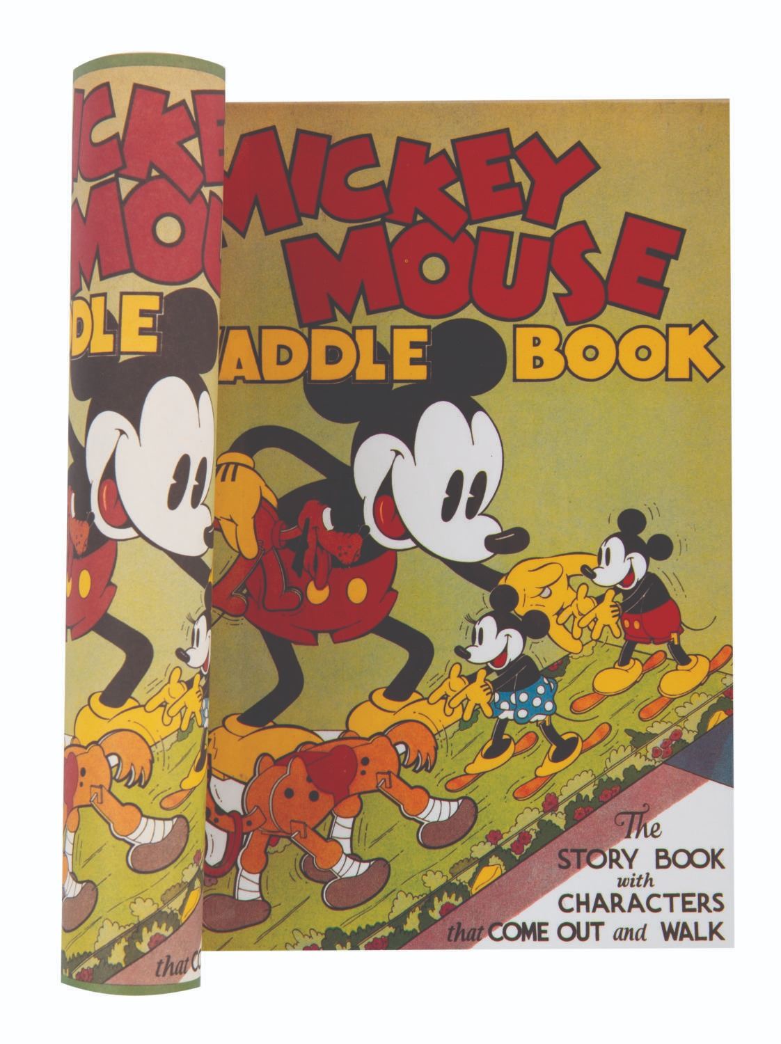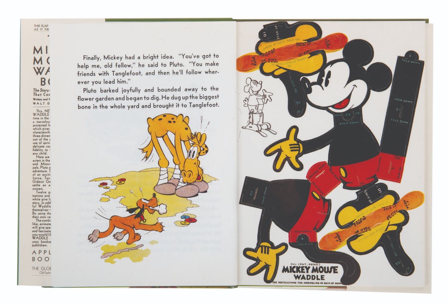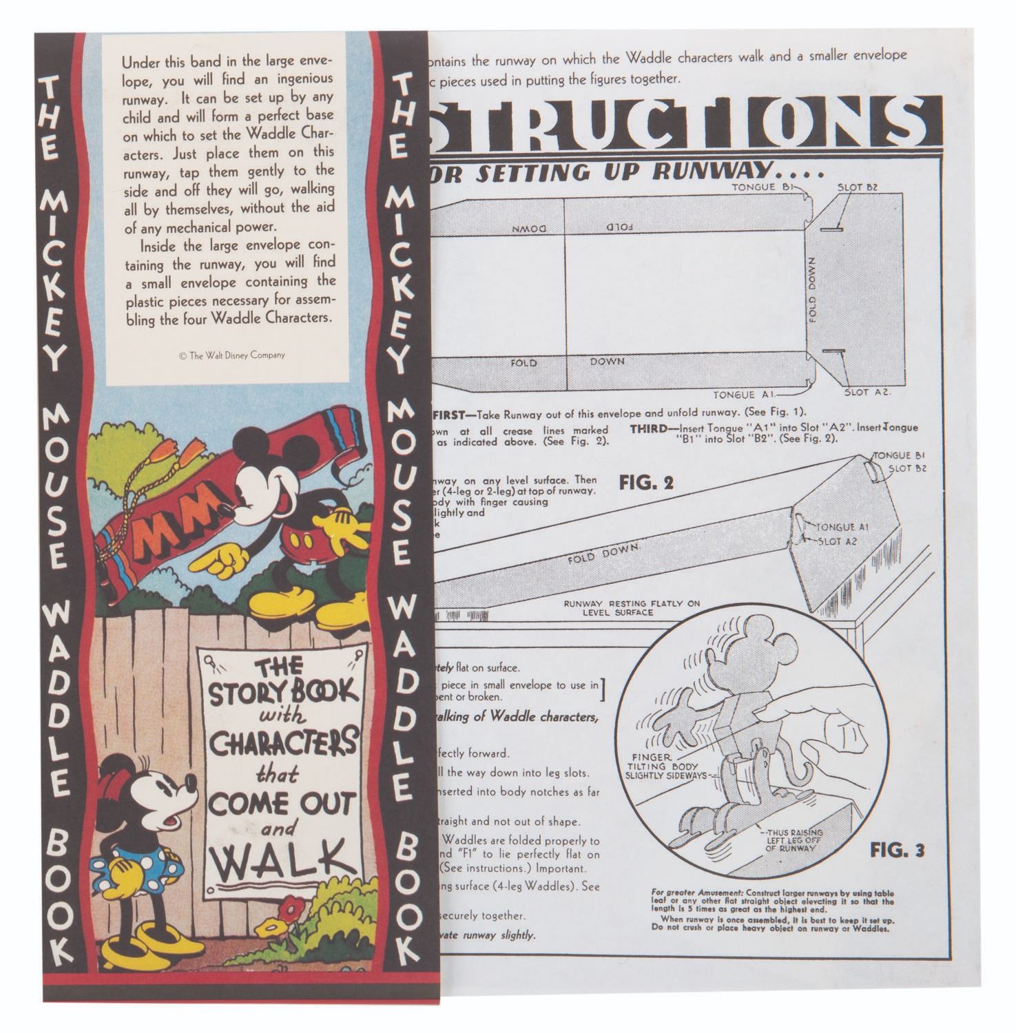 (Applewood Books, 1992) A Mickey Mouse Waddle Book, reprinting the extremely rare version published by Blue Ribbon Books in 1934. Measuring 10.5" x 7.75", the book is in fine condition, with unpunched characters and runway.