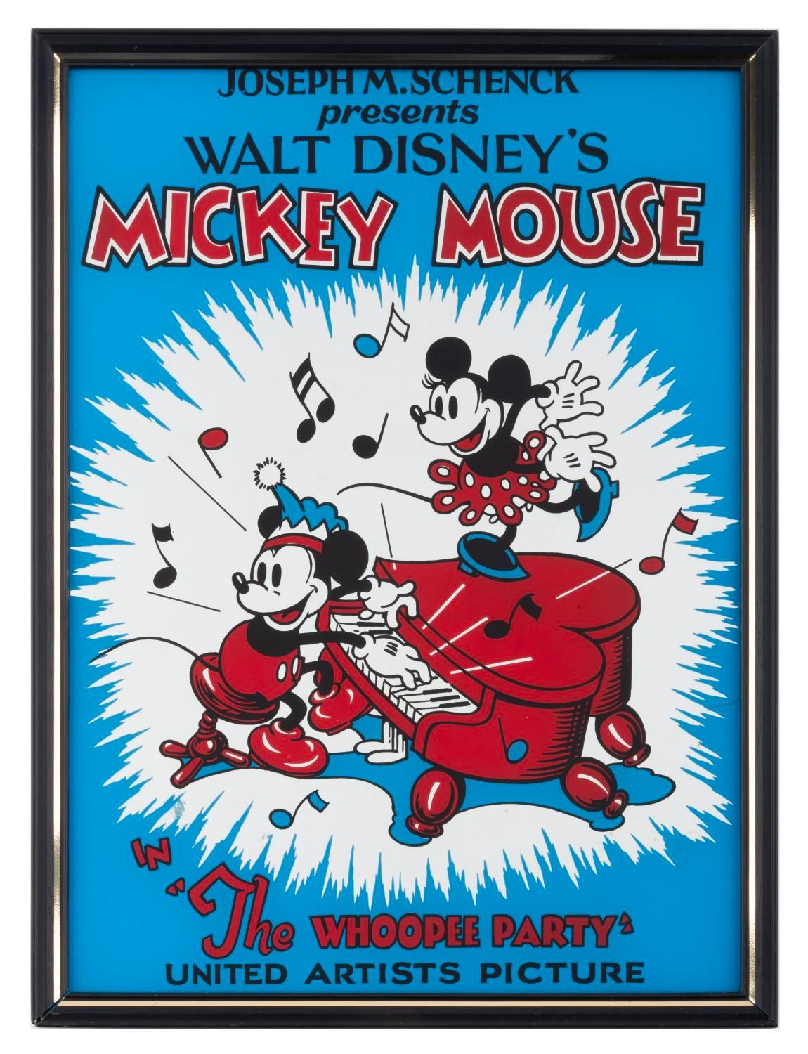 (Disney, 1970s-80s) A mirror of the poster for the 1932 Mickey Mouse cartoon "The Whoopee Party. " Measuring 12.25 " x 16.25 ", the mirror is in very good condition with light wear from display, and a slight paint flaw from original production.