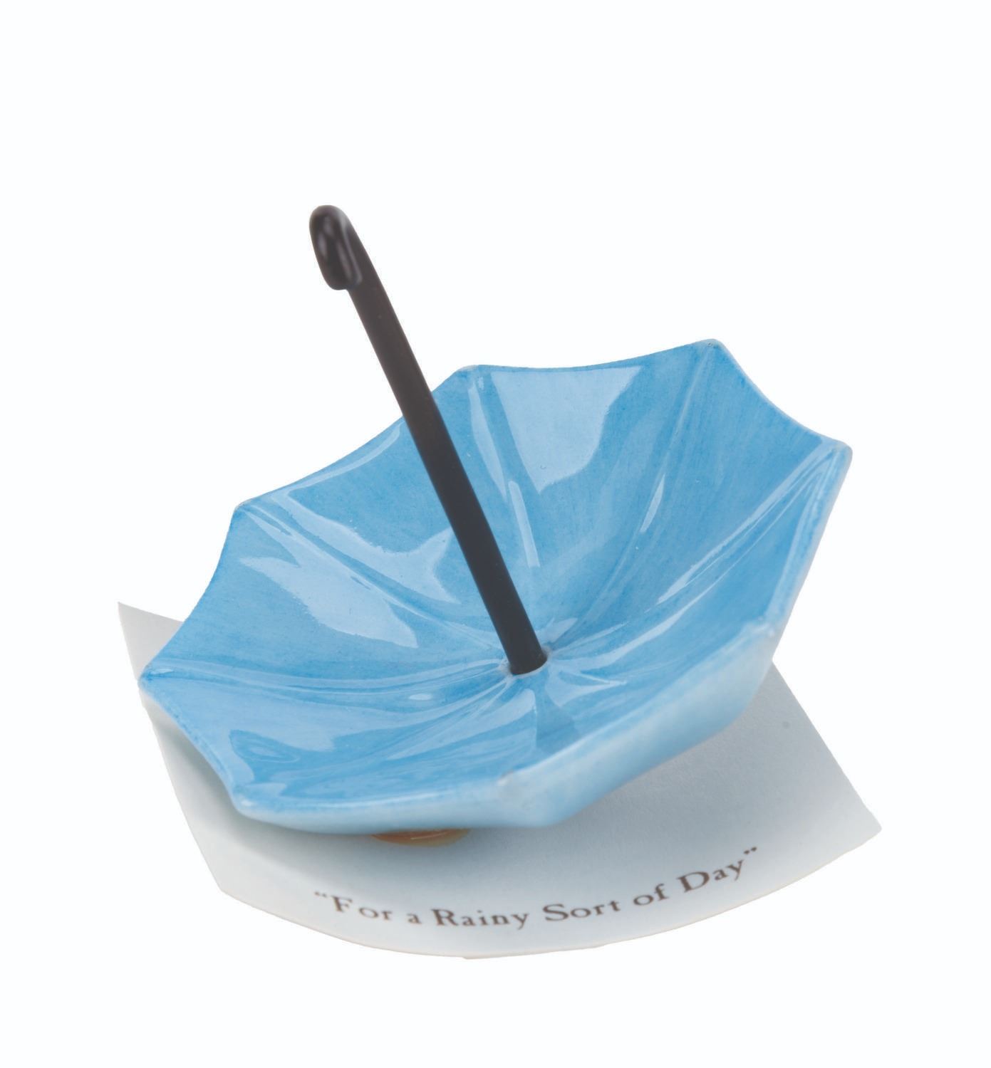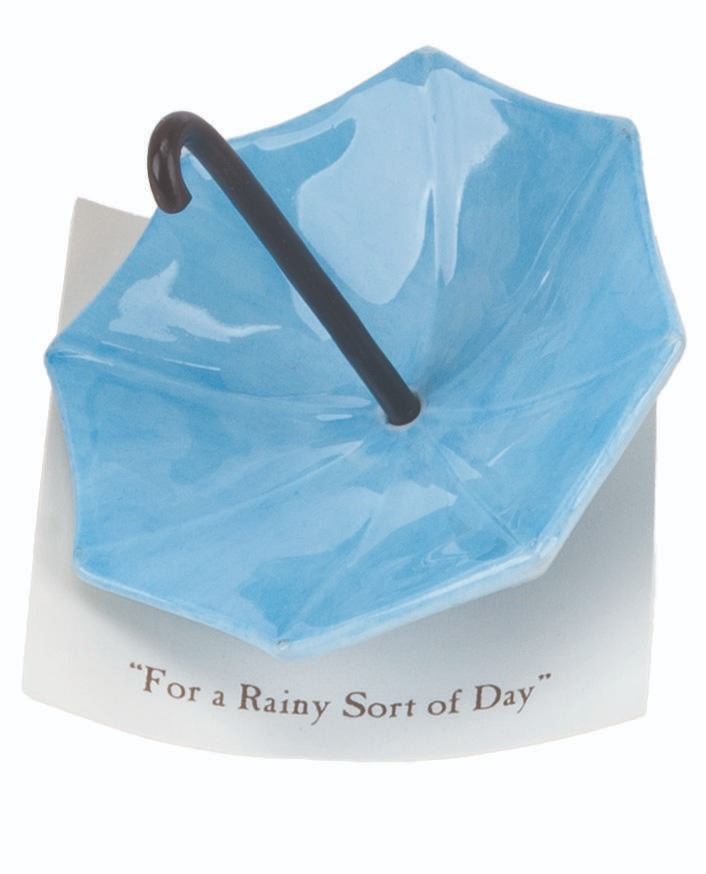 (Michel and Co., 1990s) A mini "Winnie the Pooh" ceramic figurine of an umbrella inspired by the original illustrations for the books by E. H. Shepard. The figurine is attached to a card with a quote that reads, "For a Rainy Sort of Day." Measuring 2" tall and 2.25" in diameter, the mini figurine is in fine condition.