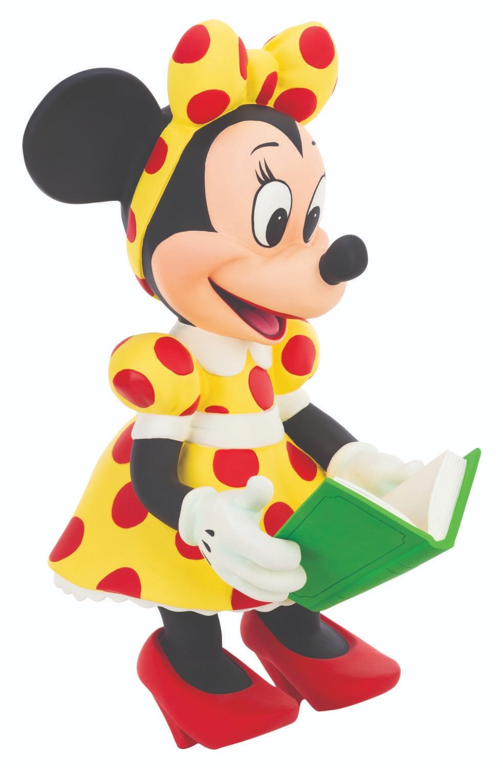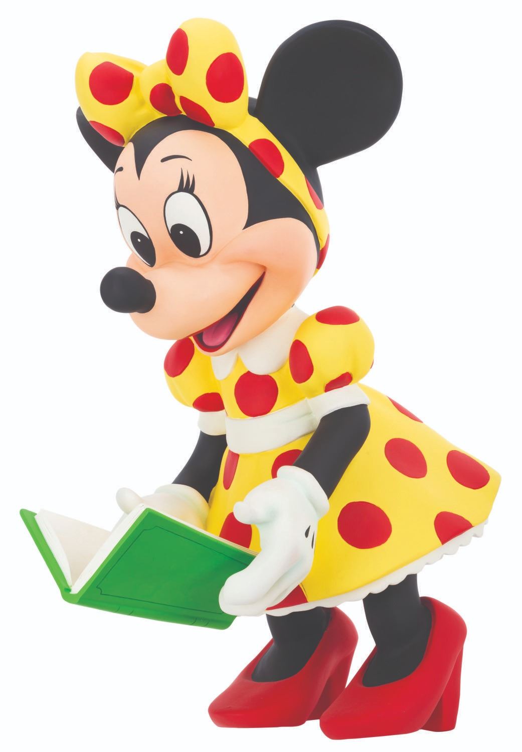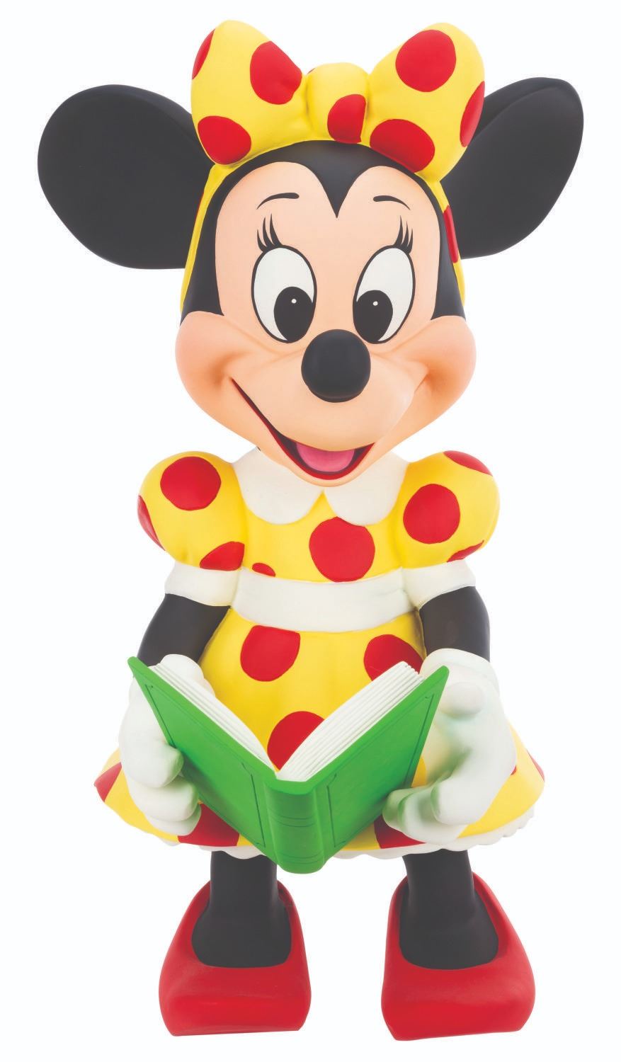 (Disney, 1990s-2000s) A Disney Store display figure of Minnie Mouse reading a book. Measuring 15" x 18" x 27" tall, the fiberglass display is in very good condition with scratches, stray paint marks, and wear.