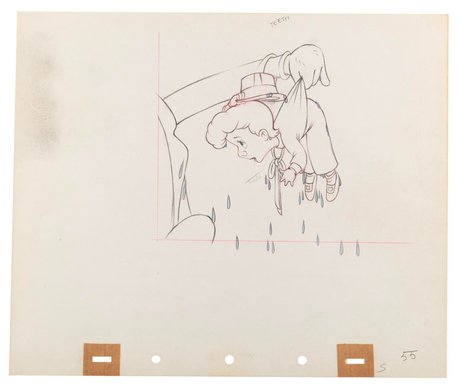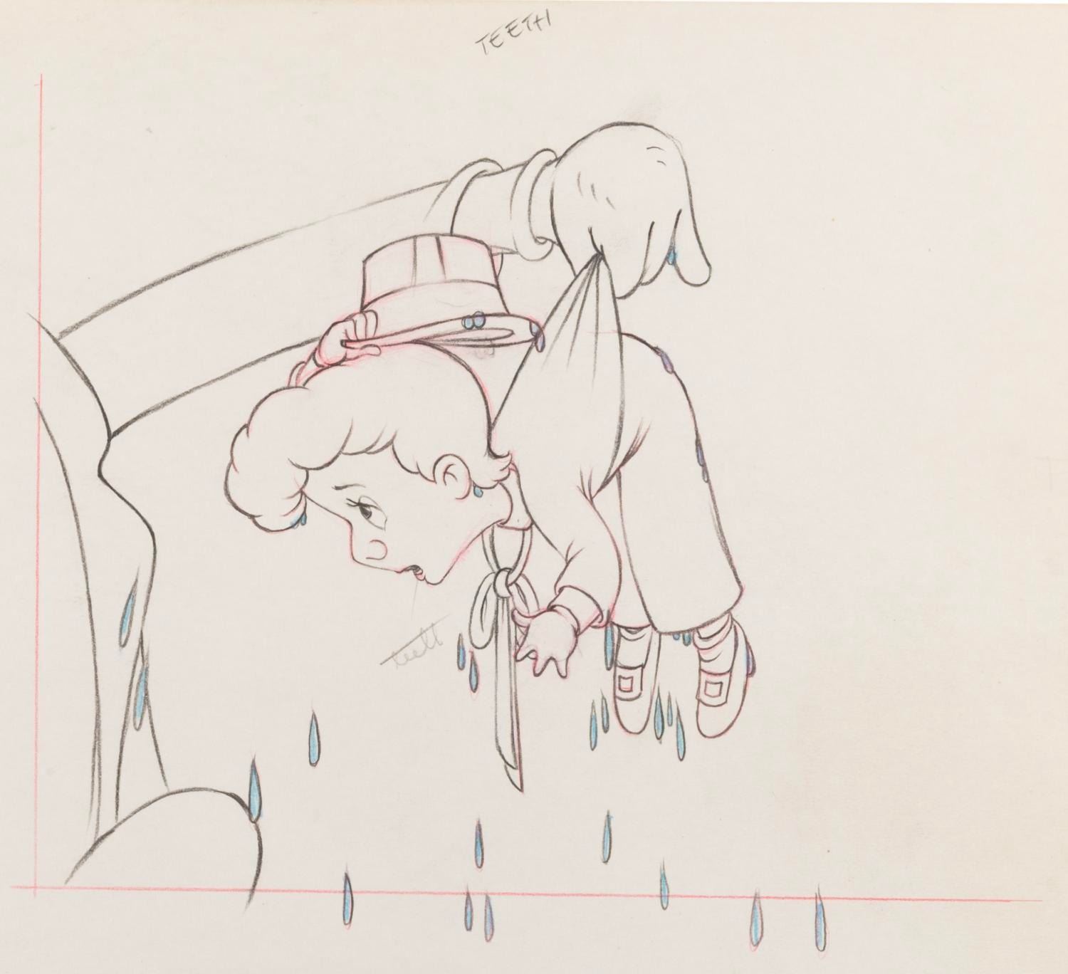 (Disney, 1938) An original production drawing of Freddie Bartholomew from the Silly Symphony short "Mother Goose Goes Hollywood. " Bartholomew has an image size of 6 " x 6 " on 10 " x 12 " animation paper. The graphite and color pencil drawing is in very good condition with light creasing, smudging and discoloration.