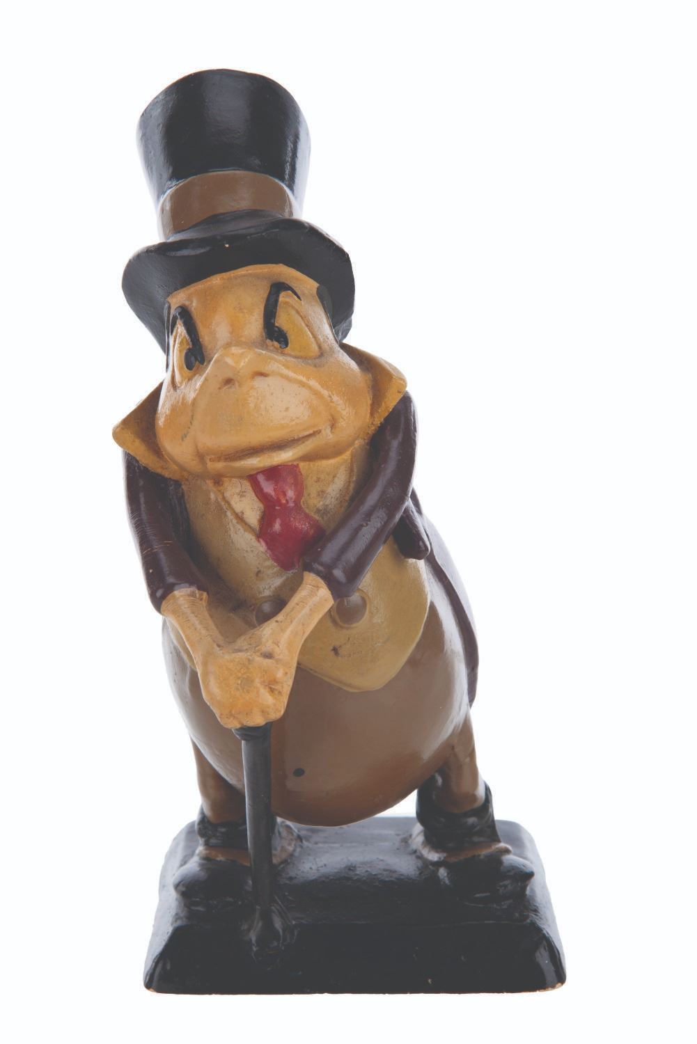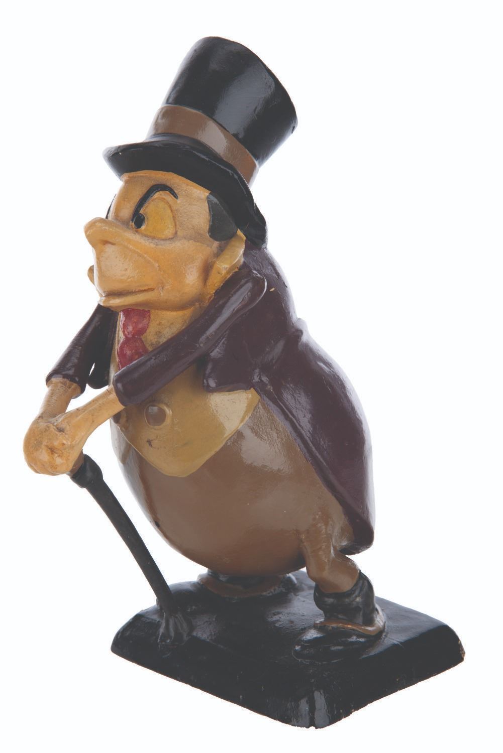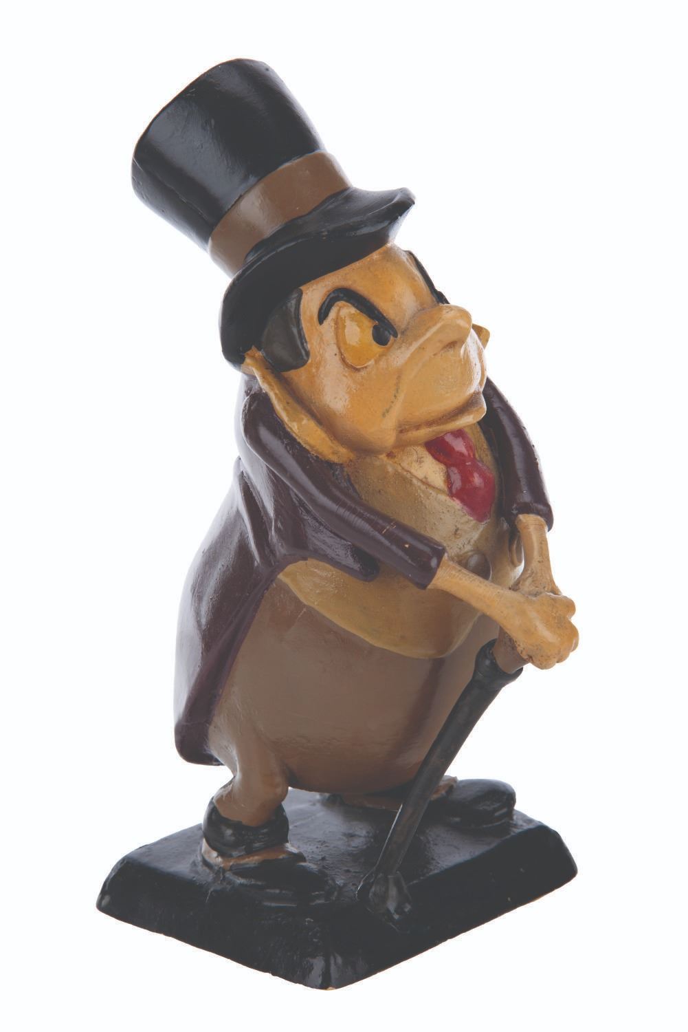 (Fleischer, 1941) An extremely rare animator’s maquette of the villain C. Bagley Beetle from “Mr. Bug Goes to Town.” Maquettes such as this one were used by animators as a three-dimensional reference while animating characters. Hand-painted and constructed of plaster, only a handful were produced and distributed among the animators. Measuring 4.25” x 5.25” x 9” tall, the maquette displays in very good condition with light scuffs, scratches, crazing, and wear from production use.