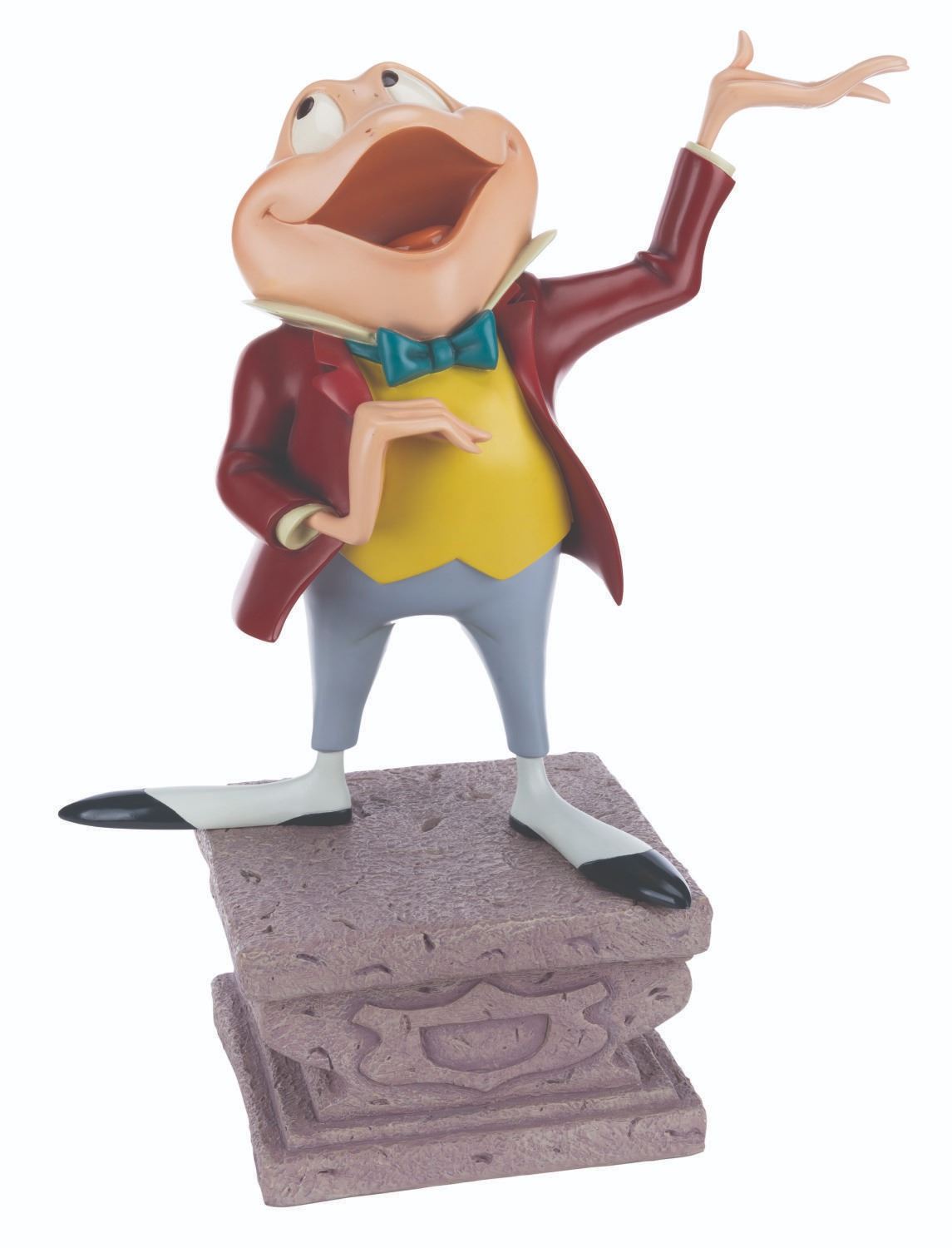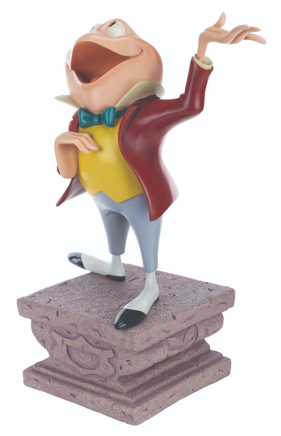 (Disney, 2004) A "Fabulous J. Thaddeus Toad" Big Figure prototype signed by designers Kevin Kidney and Jody Daily. Inspired by the Toad Hall Library statue seen within Mr. Toad’s Wild Ride at Disneyland, this beautiful Big Fig was produced ahead of the 55th anniversary of “The Adventures of Ichabod and Mr. Toad.” This prototype figure comes with production tags for both the figure and base identifying them as prototypes, and the figure is packed in prototype hand-carved Styrofoam. The bottom of the base is signed boldly by both designers, Kevin Kidney and Jody Daily. Measuring 10” x 16” x 22” high, the piece is in very good condition, with a few very small scuffs on the front including a paint mark on the nose, and a .25” scratch to the paint on the back. This item may require special shipping, please inquire before bidding.
