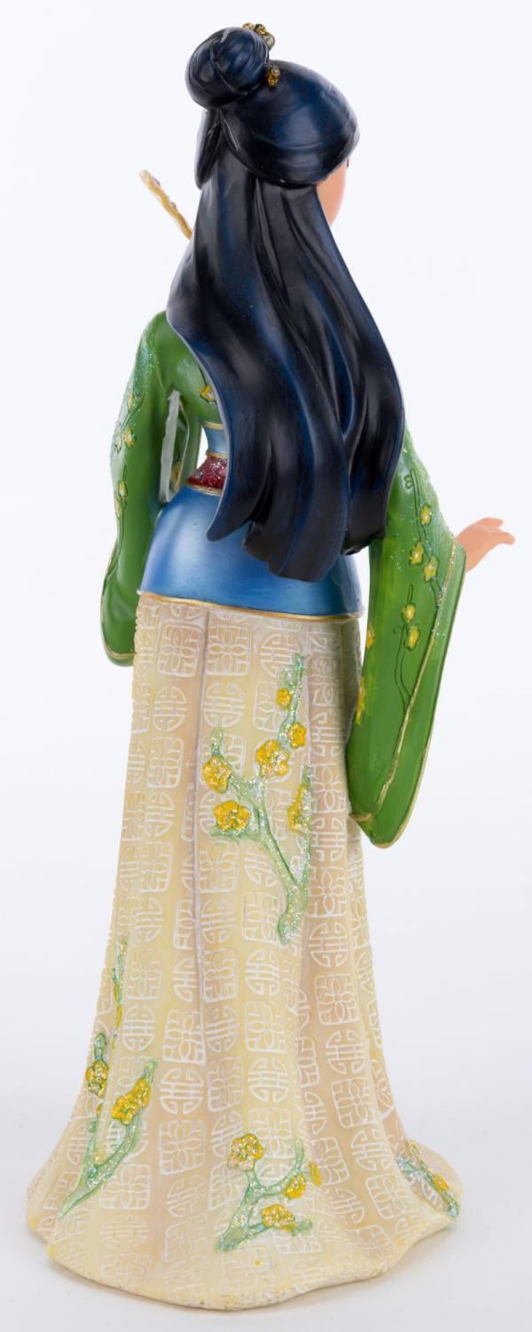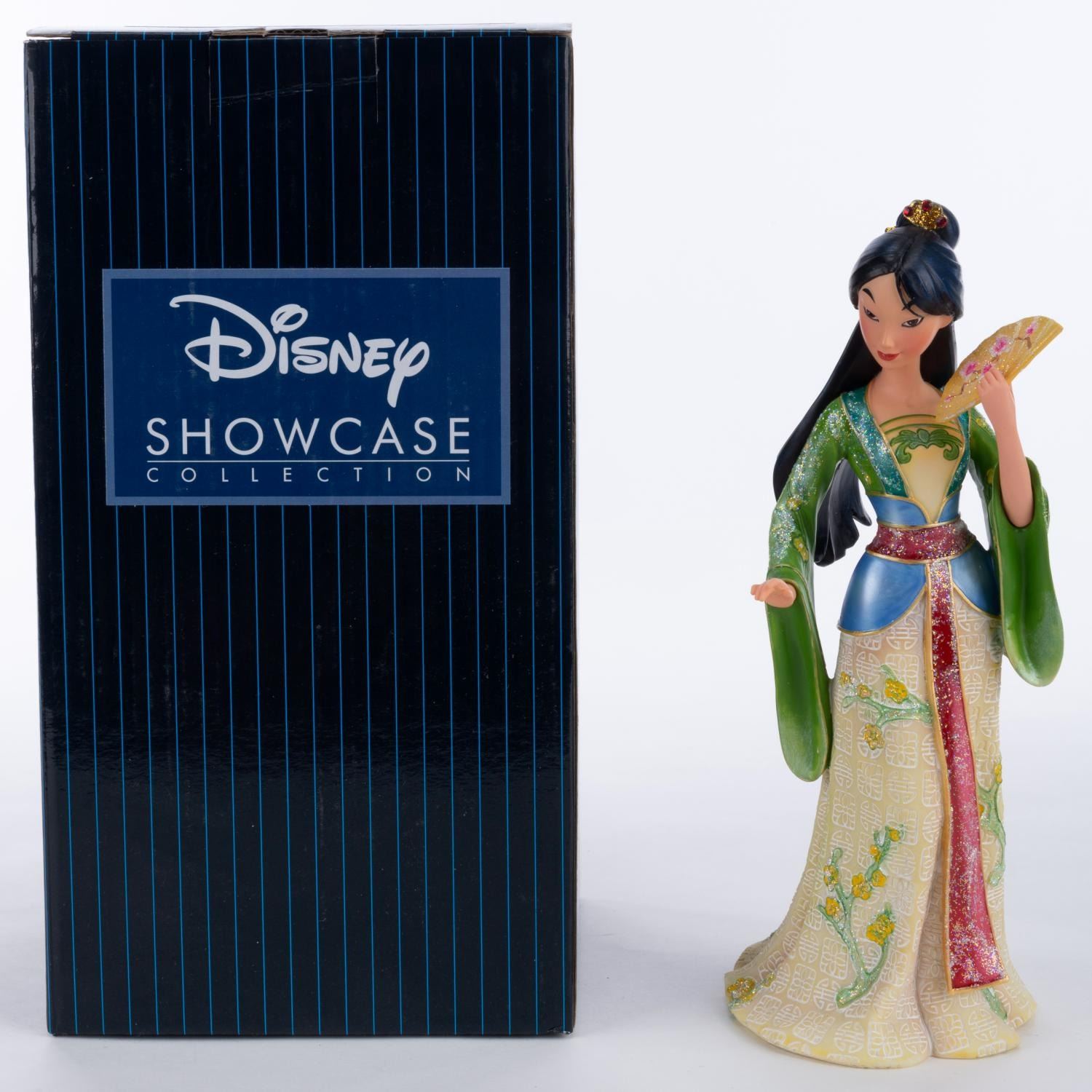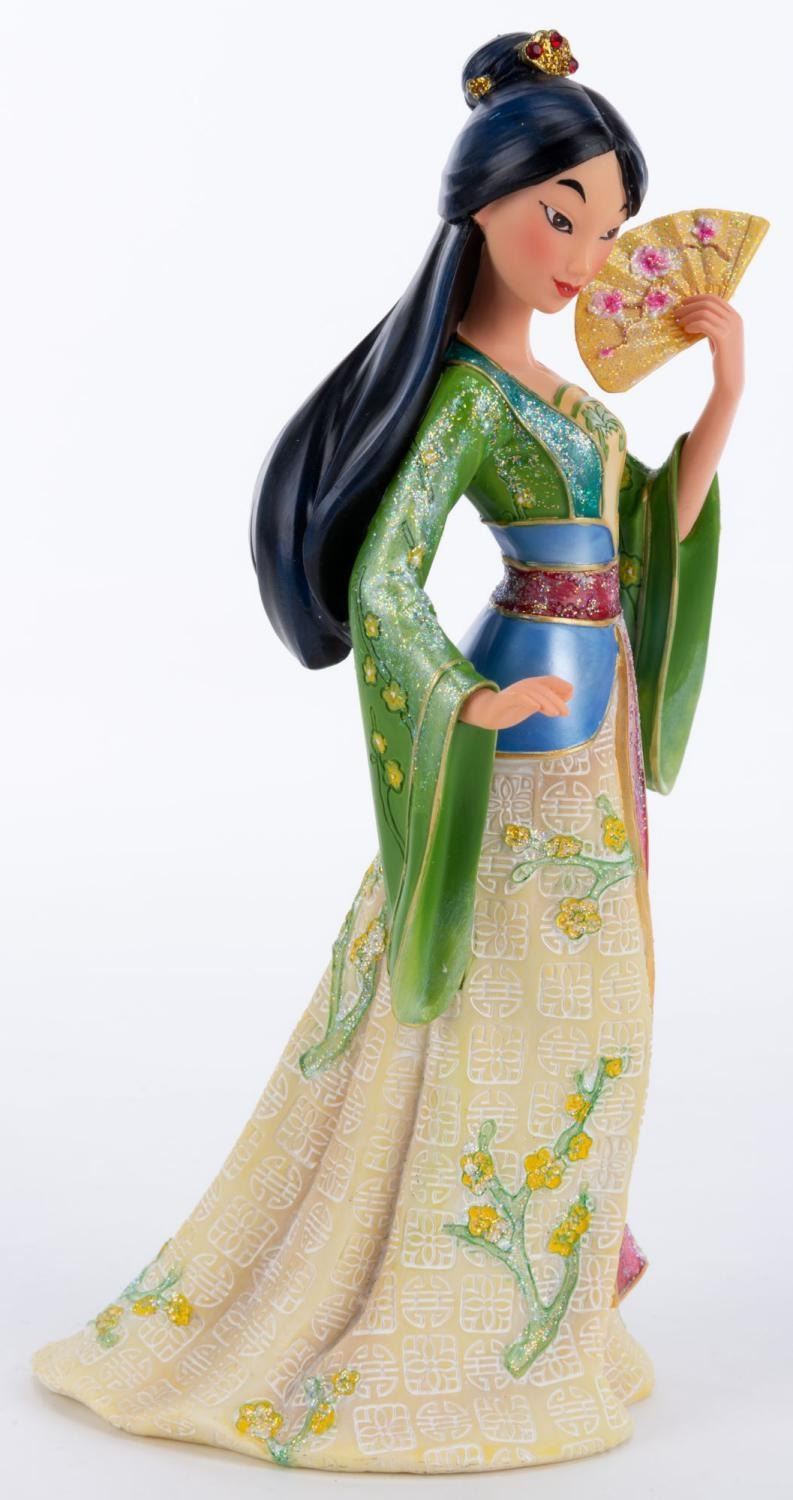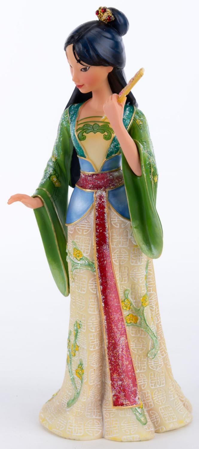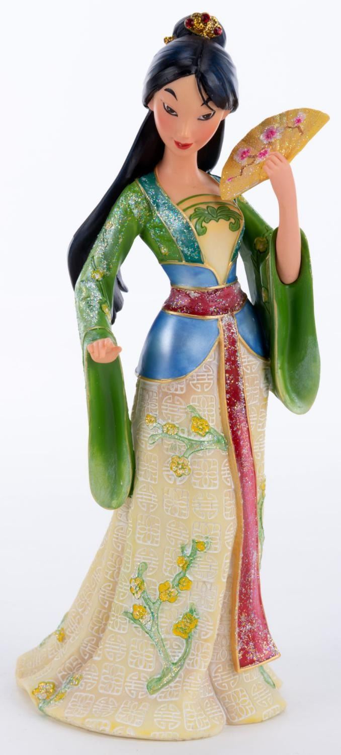 (Enesco, 2015) A Disney Showcase Collection ‘Couture de Force’ series figurine of Mulan from Disney's animated film of the same name. Measuring 3"x4.5" and 8" tall, the resin figurine is in fine condition and comes with the original 5" x 5" x 9.75" box.
