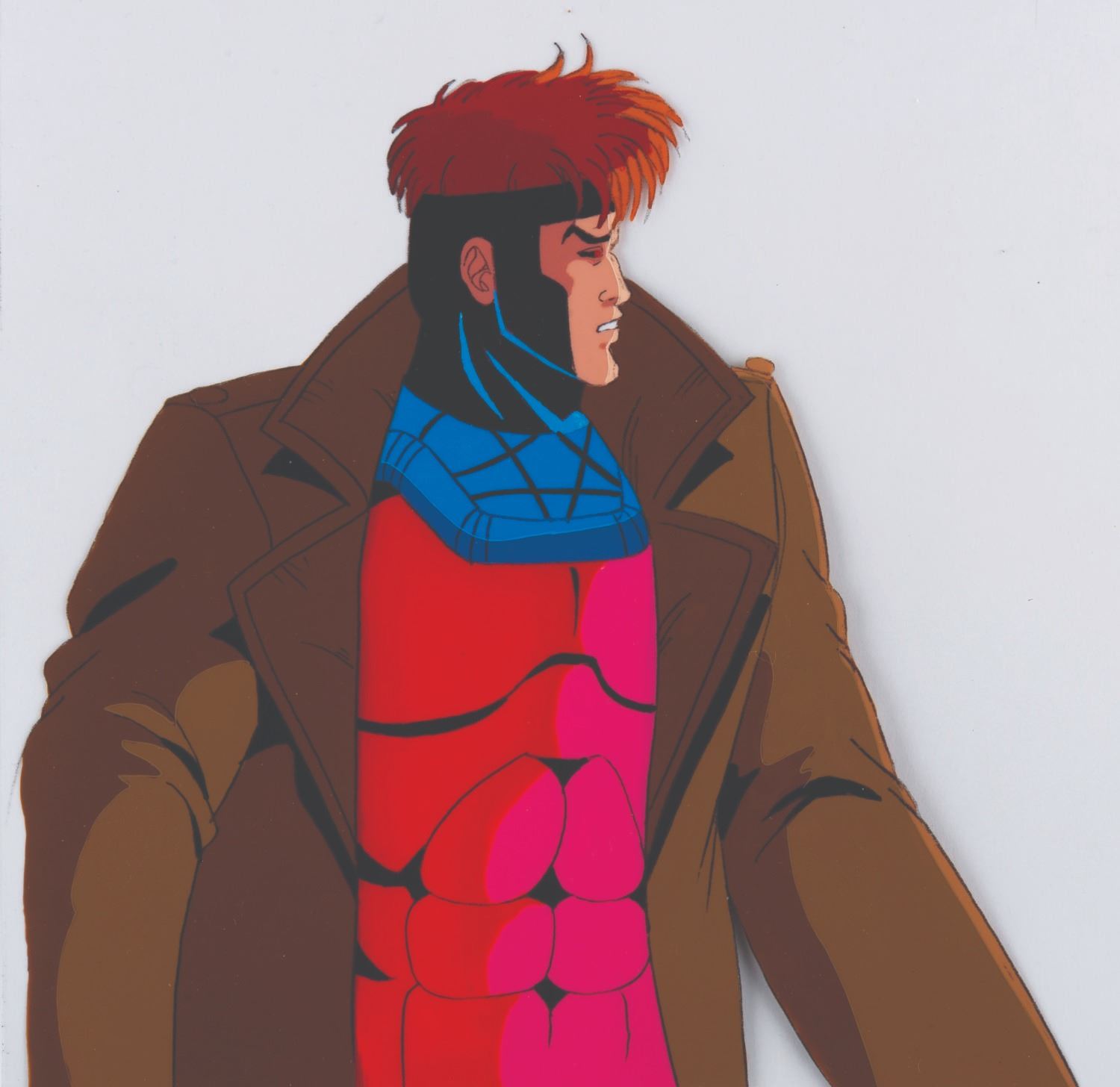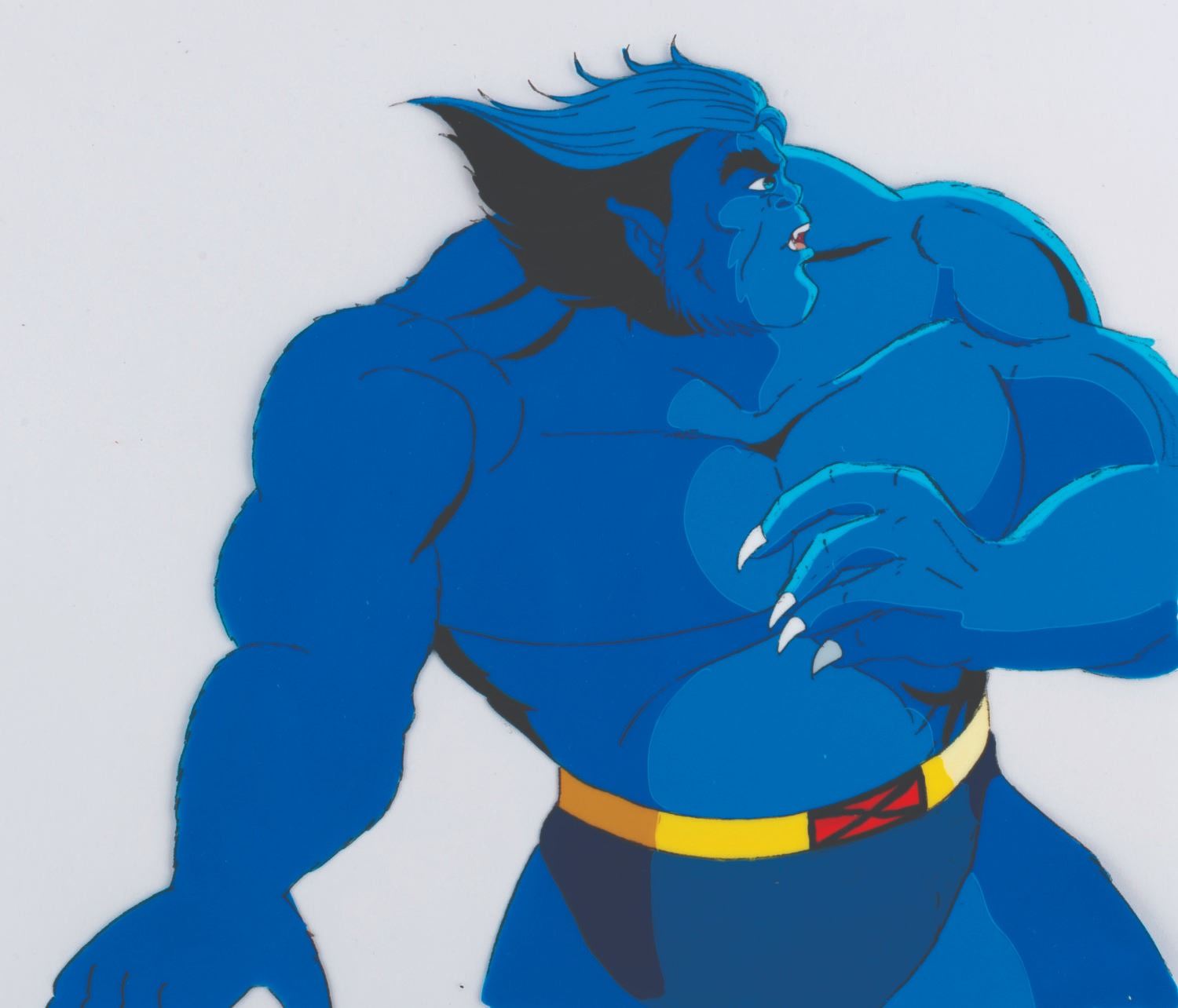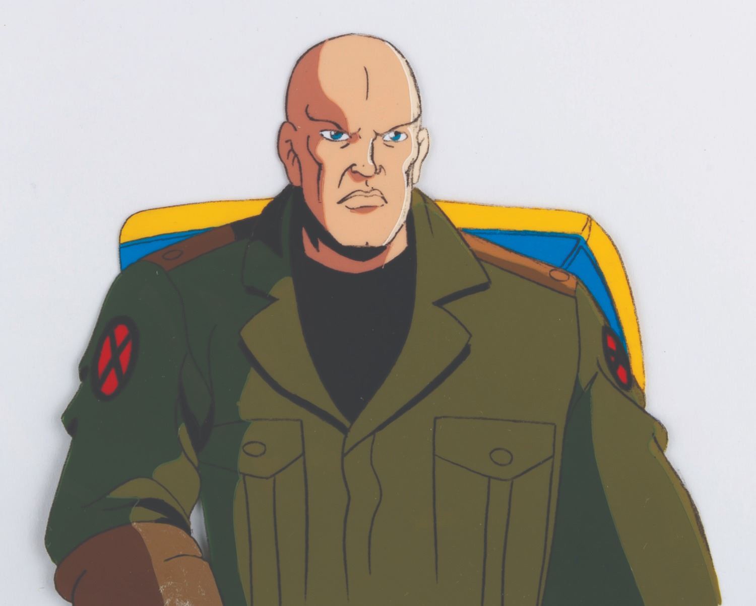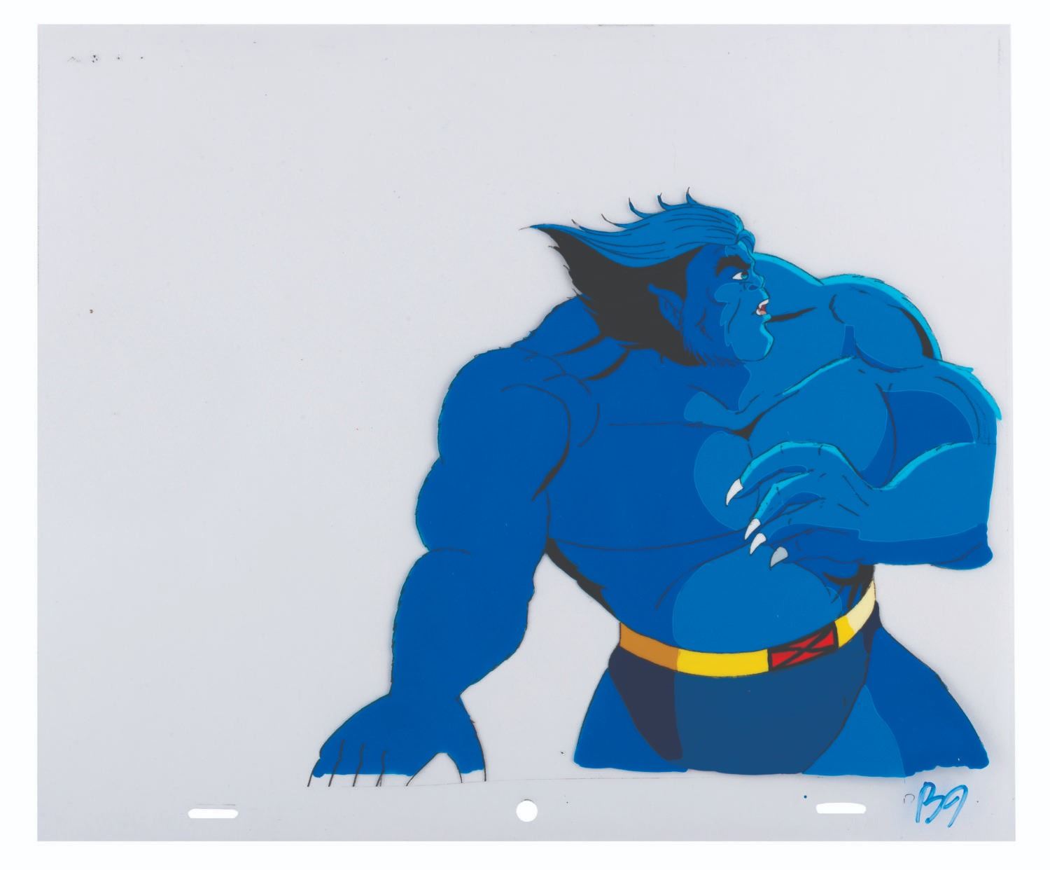 (Fox, 1995) An original multi-layer production cel from “X-Men: The Animated Series” of Beast, Professor X, and Gambit from the season four episode “Sanctuary Part II” with a color copy background. Measuring 10.5” x 12.5” with a character image size of 8.5” x 12.5”, the cel is in fine condition.